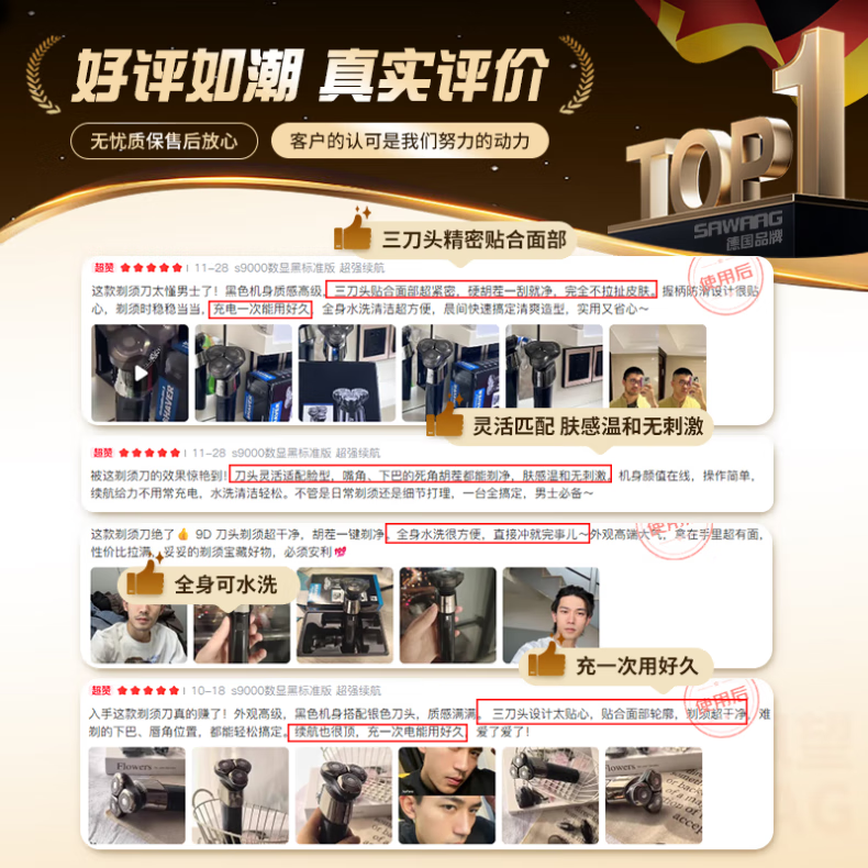 飒望德国数显电动剃须刀大功率男士2025新款胡须刀多功能智能水洗刮胡刀热卖第一送男朋父亲节日礼物 S9000数显黑标准版 全身水洗澎湃动力顺滑剃净