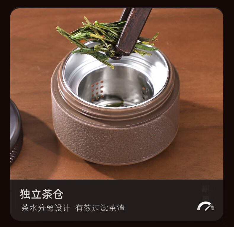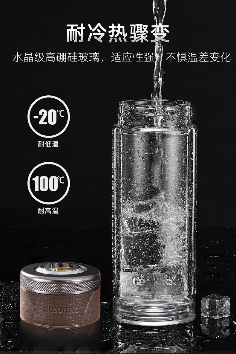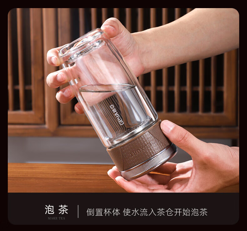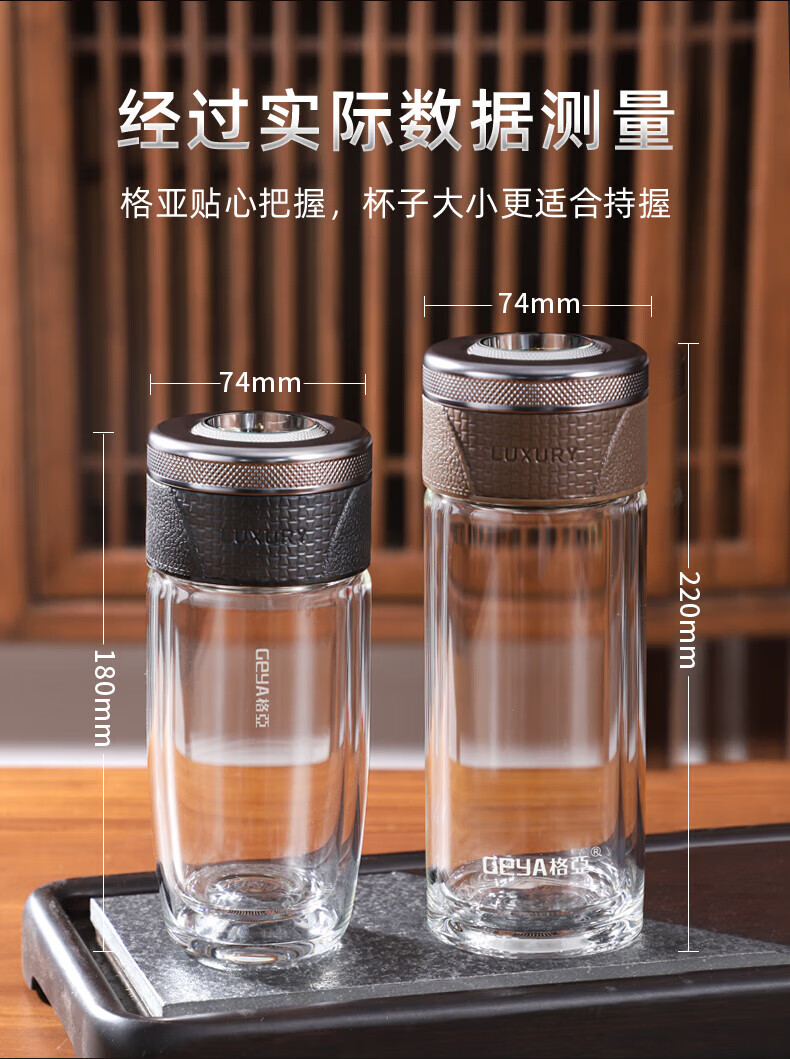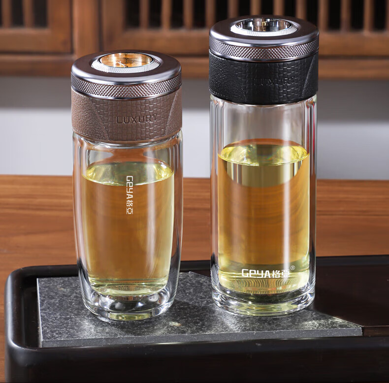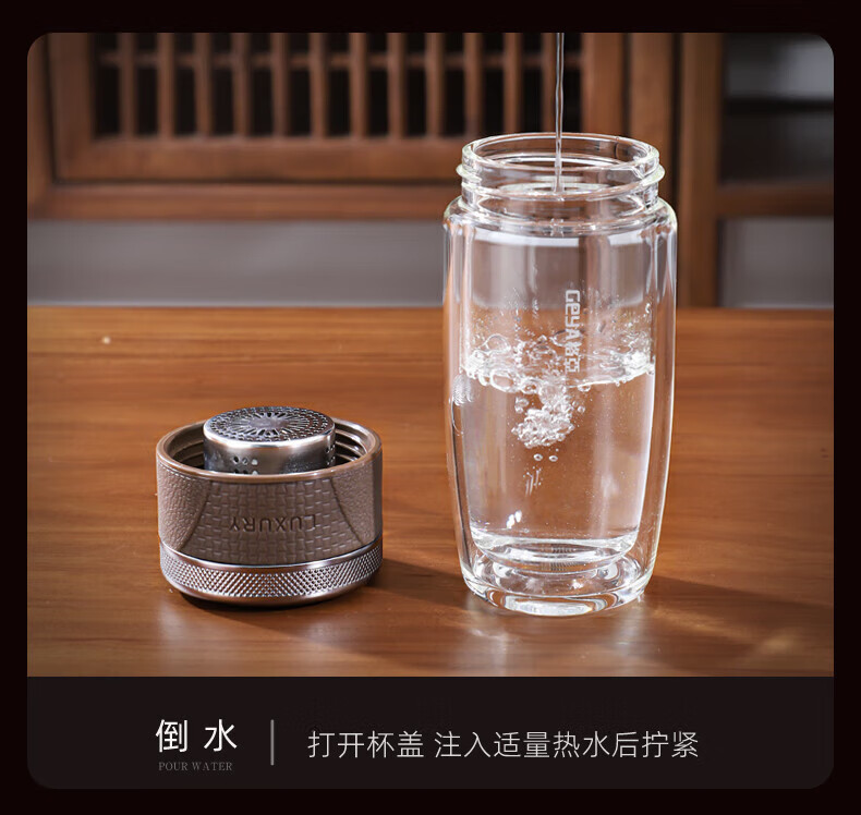 格亚(GEYA)茶水分离杯双层玻璃杯男士茶杯温显高档水杯分离茶水杯子泡茶杯 典雅咖350ml