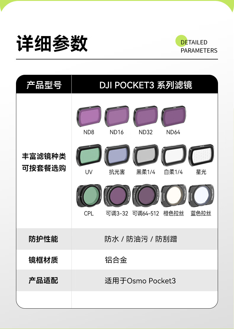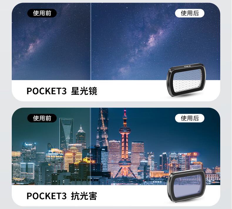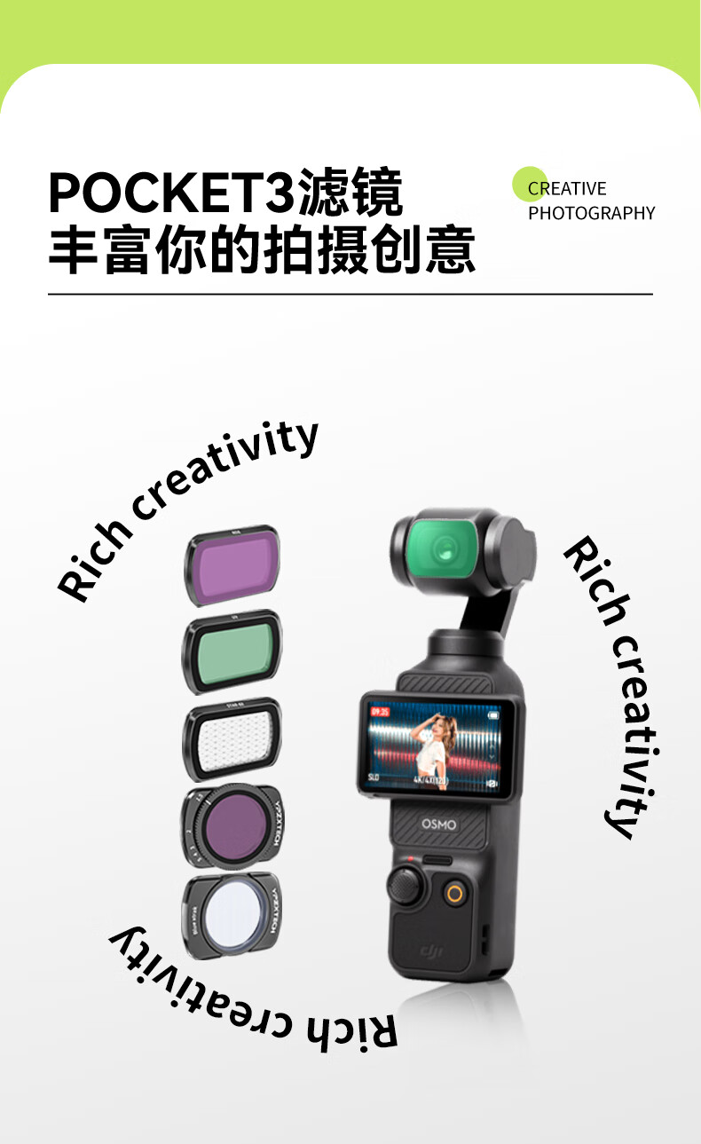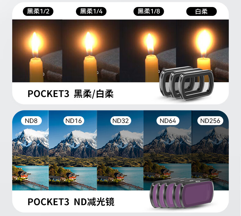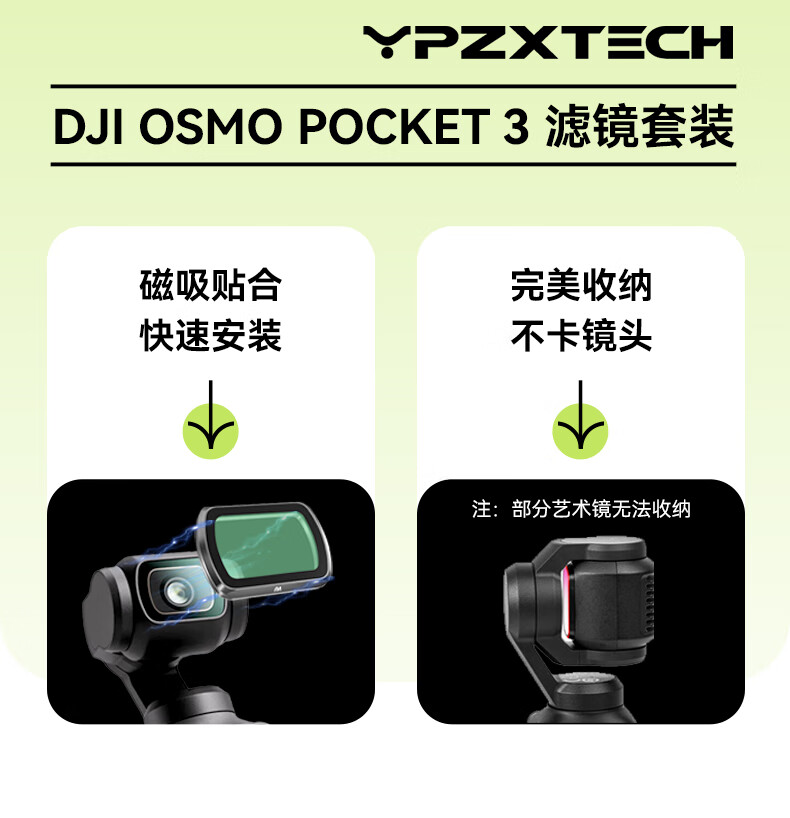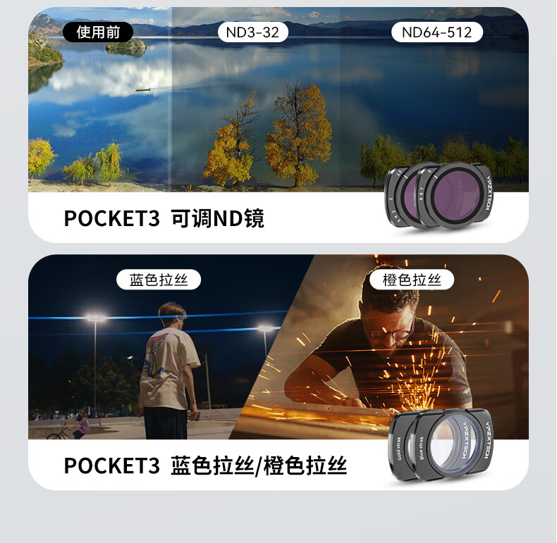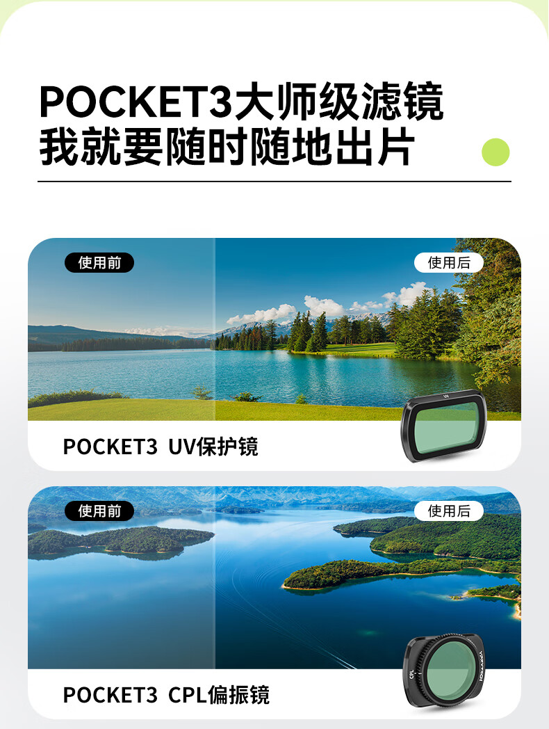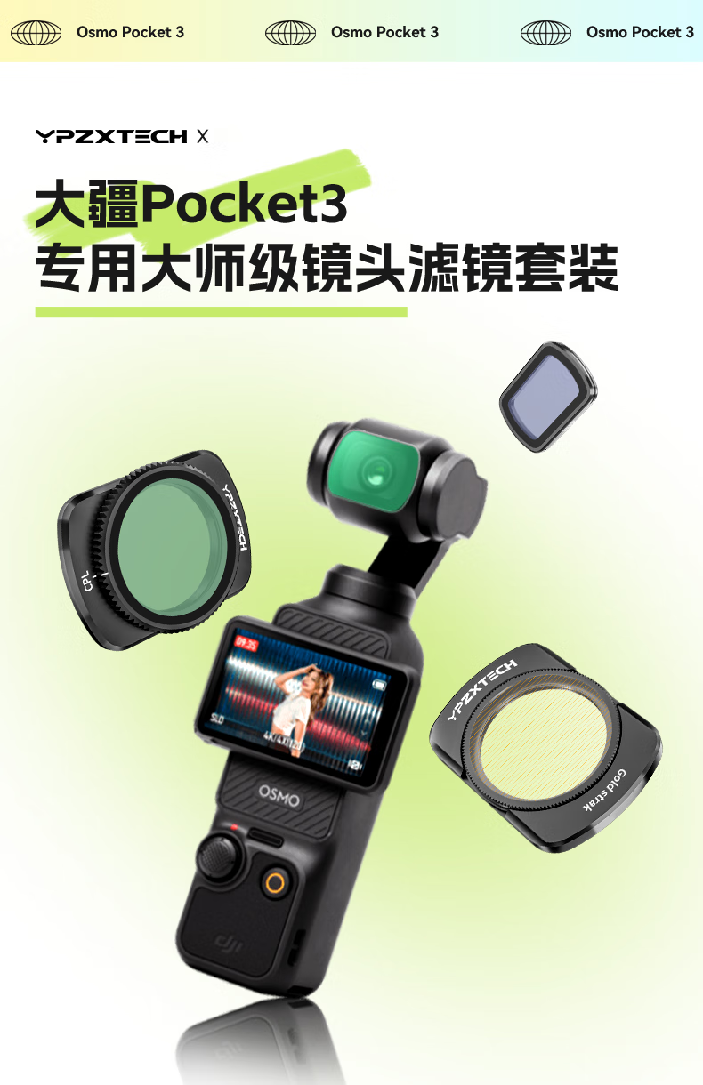 影仕匠大疆pocket3滤镜套装磁吸快拆增广镜可调ND减光镜黑柔1/4柔光镜CPL偏振镜UV保护镜DJI相机镜头配件 【经典三件套】CPL+黑柔+可调ND3-32