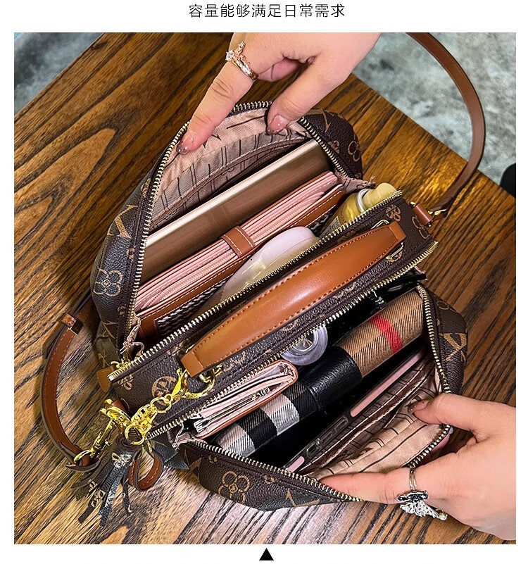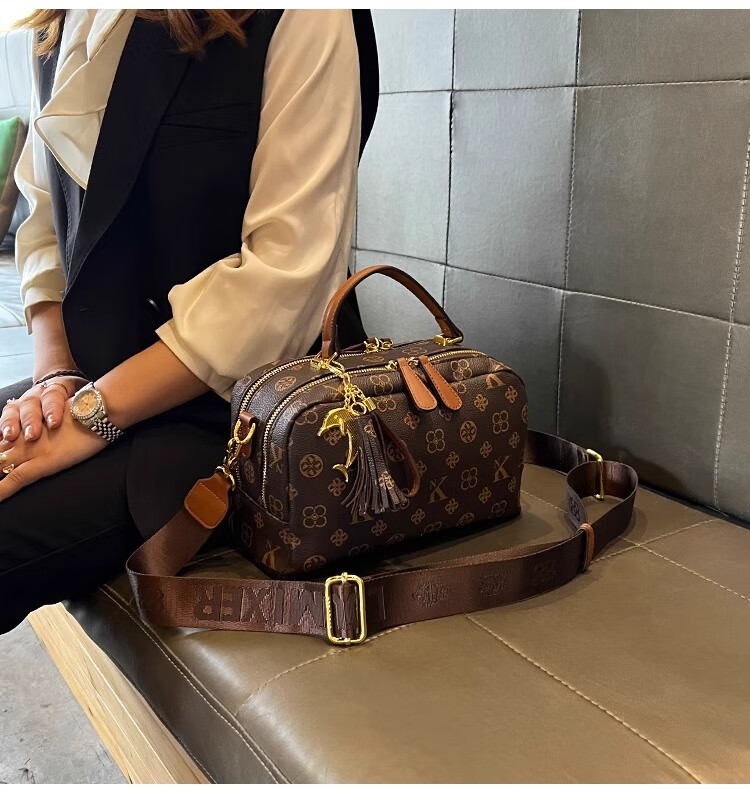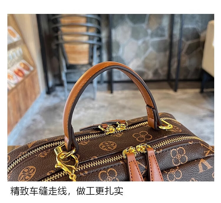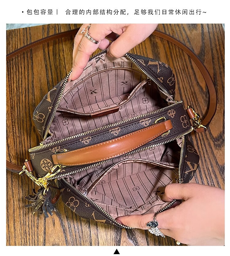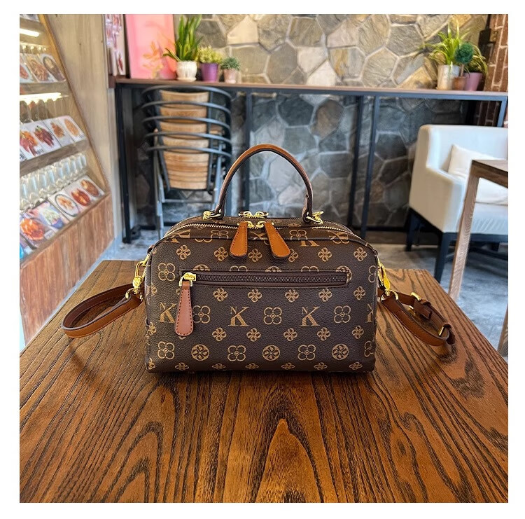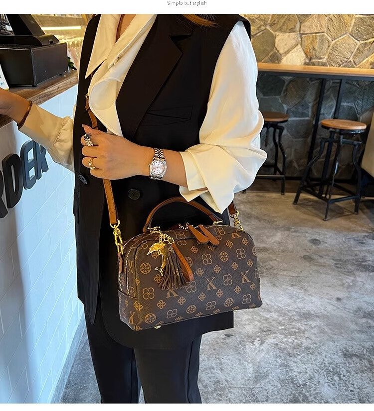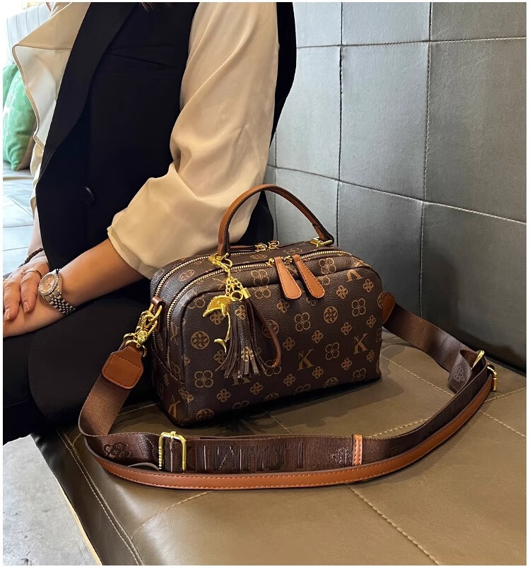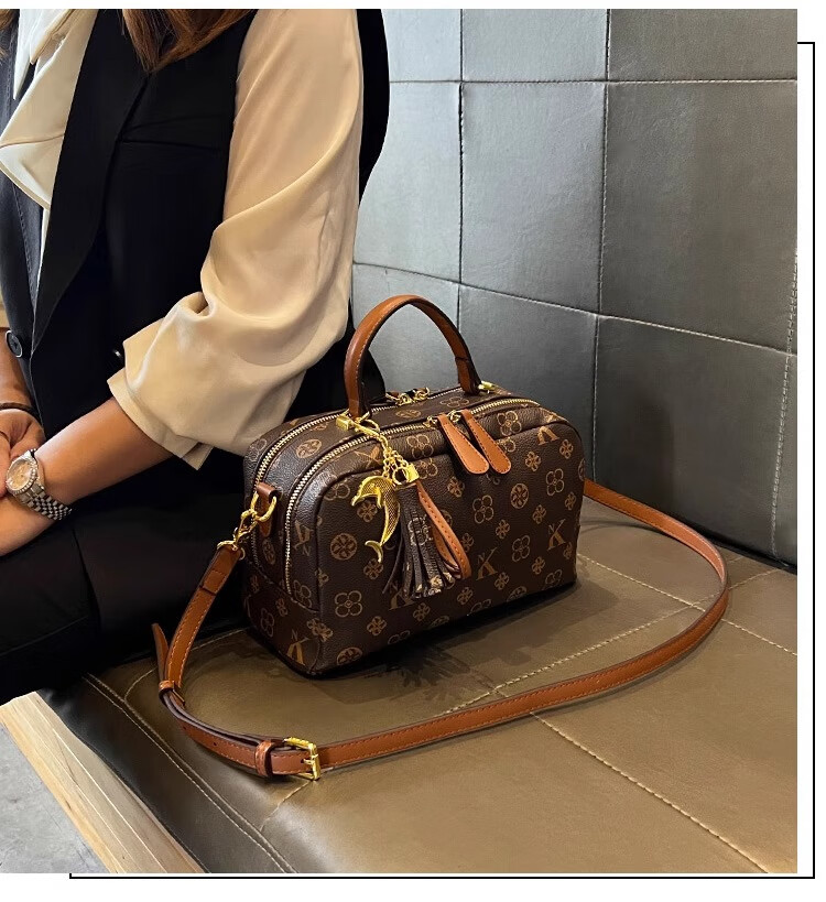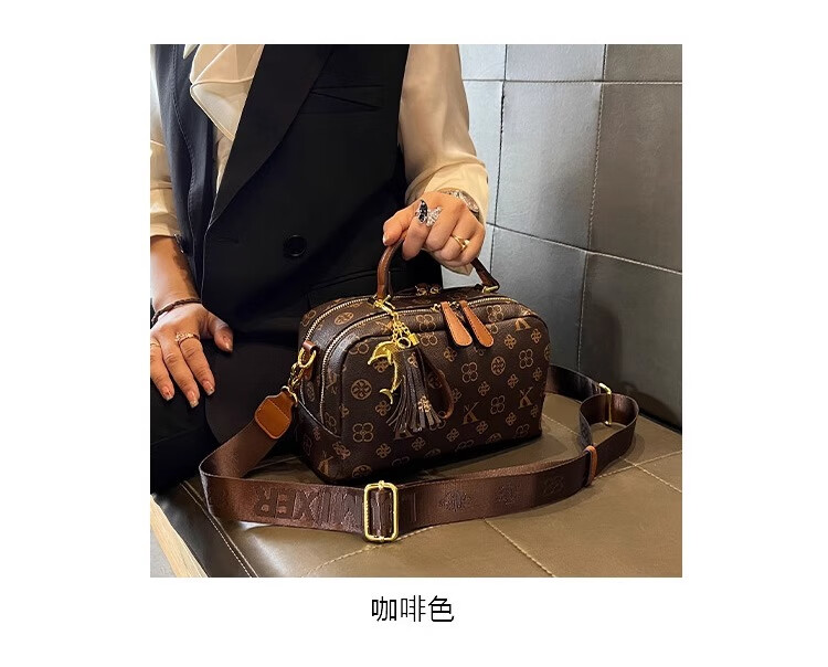 柏欧雅新款品牌包包女2025新款真皮时尚手提包单肩波士顿包斜挎包通勤包 咖啡色【可代写贺卡】