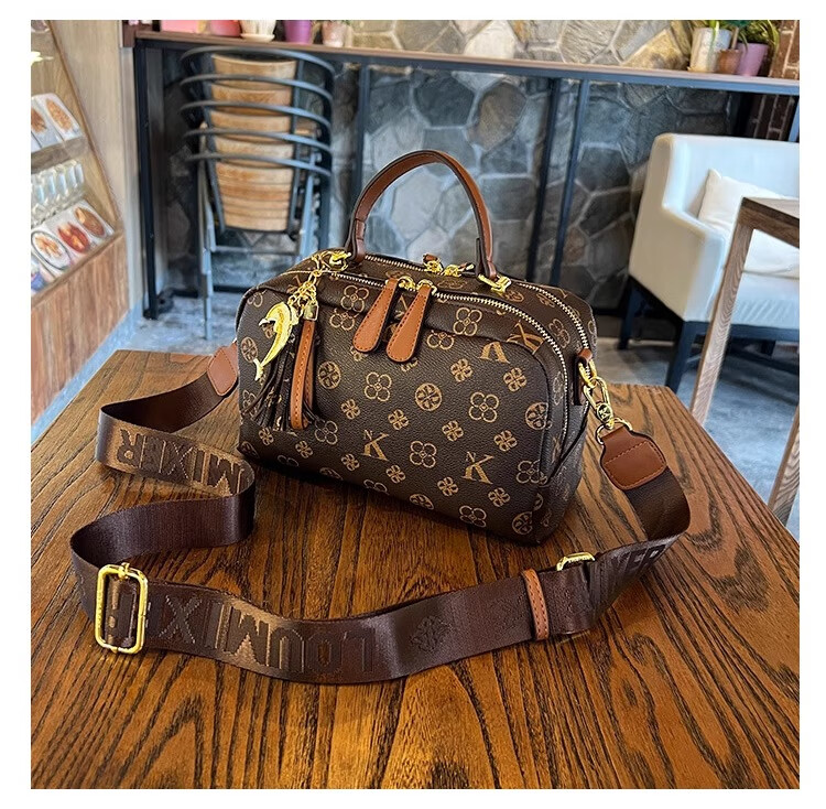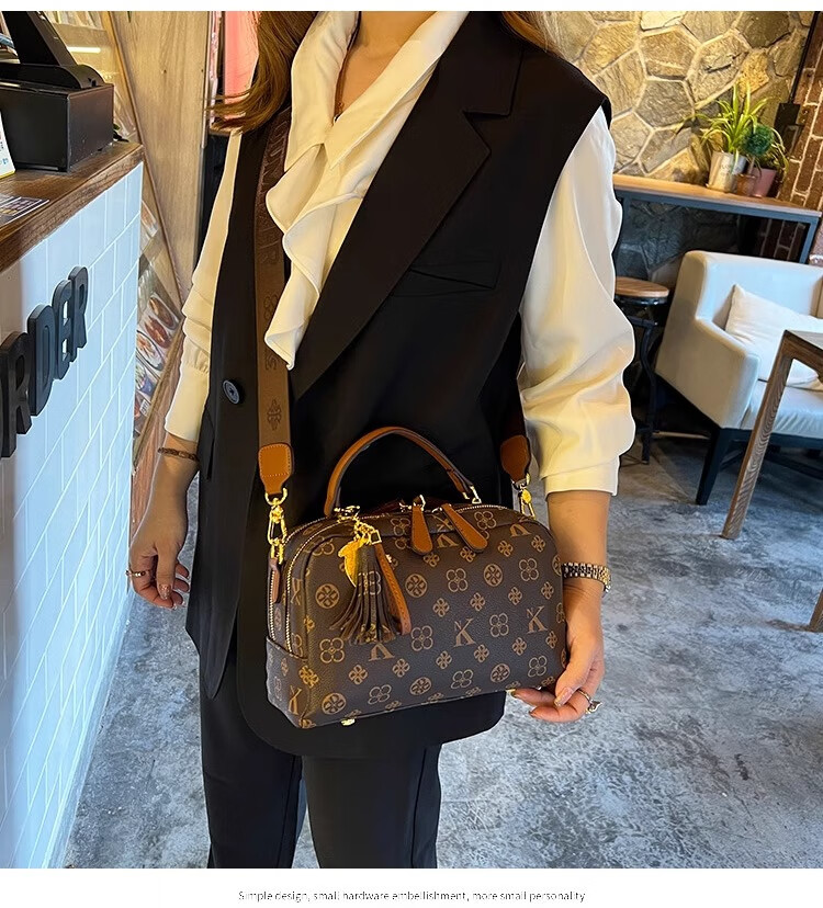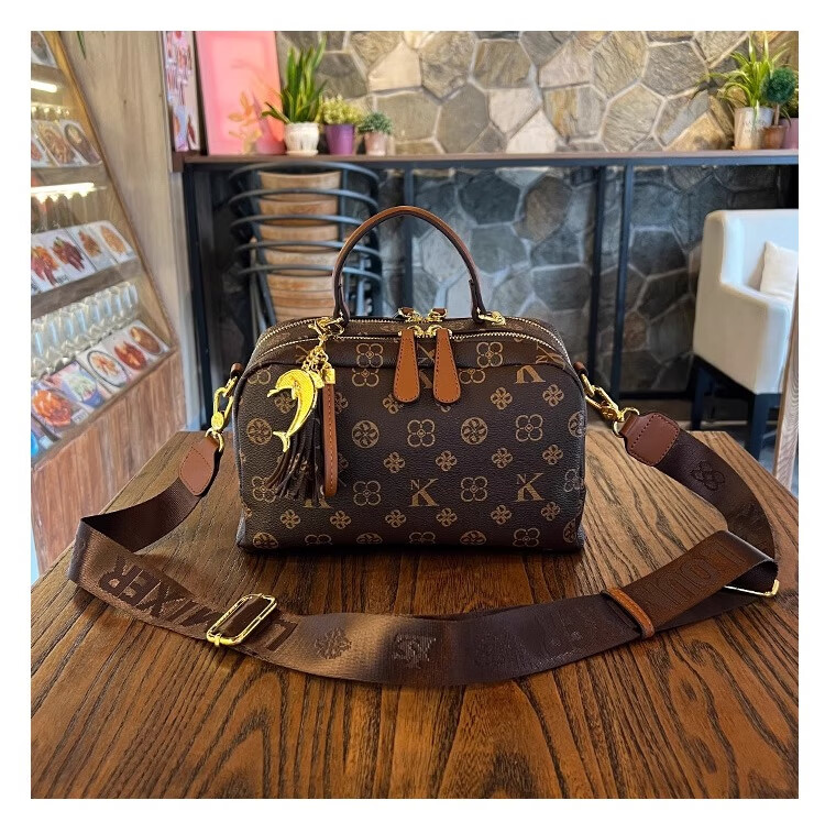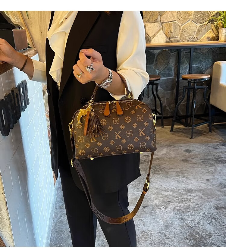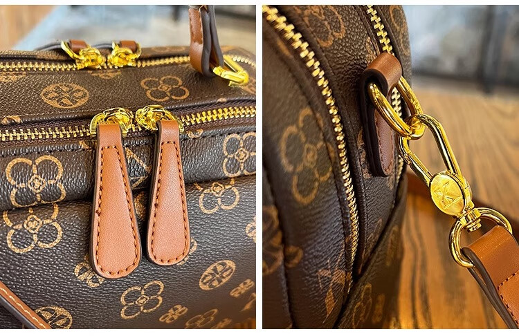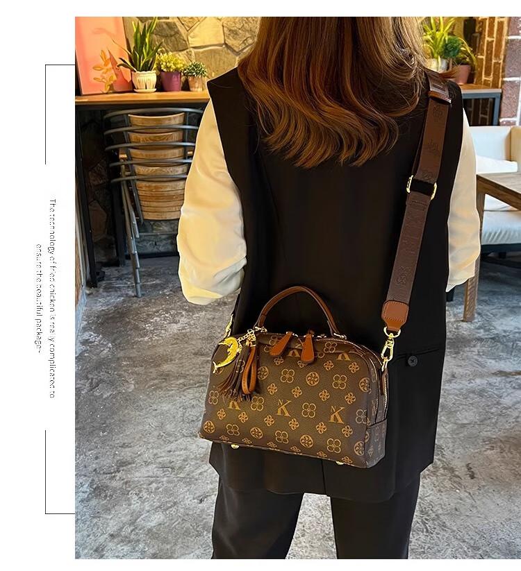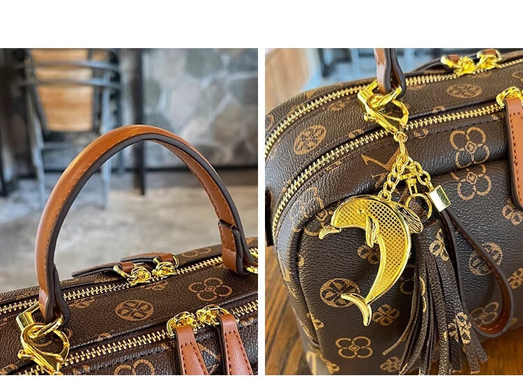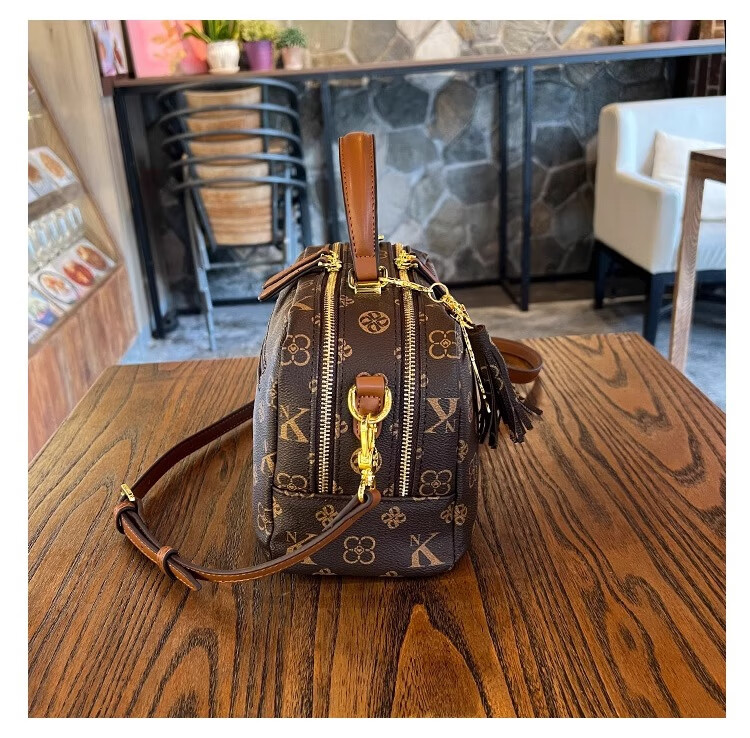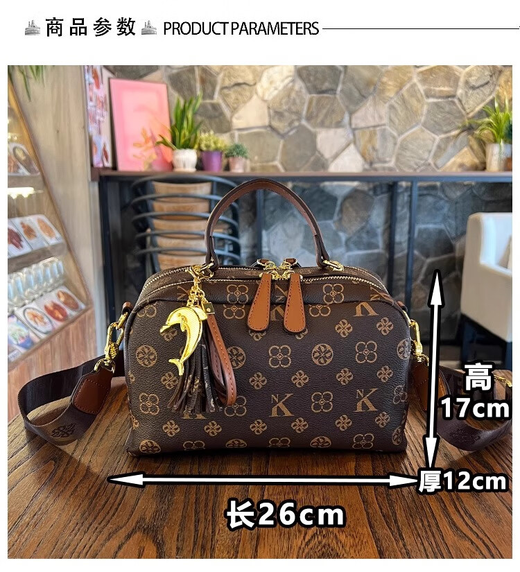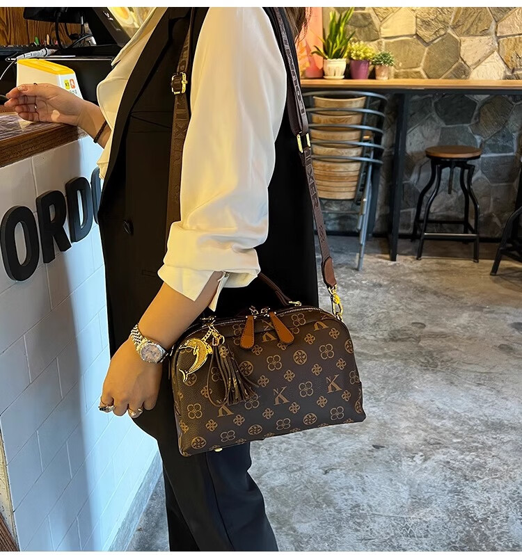 柏欧雅新款品牌包包女2025新款真皮时尚手提包单肩波士顿包斜挎包通勤包 咖啡色【可代写贺卡】