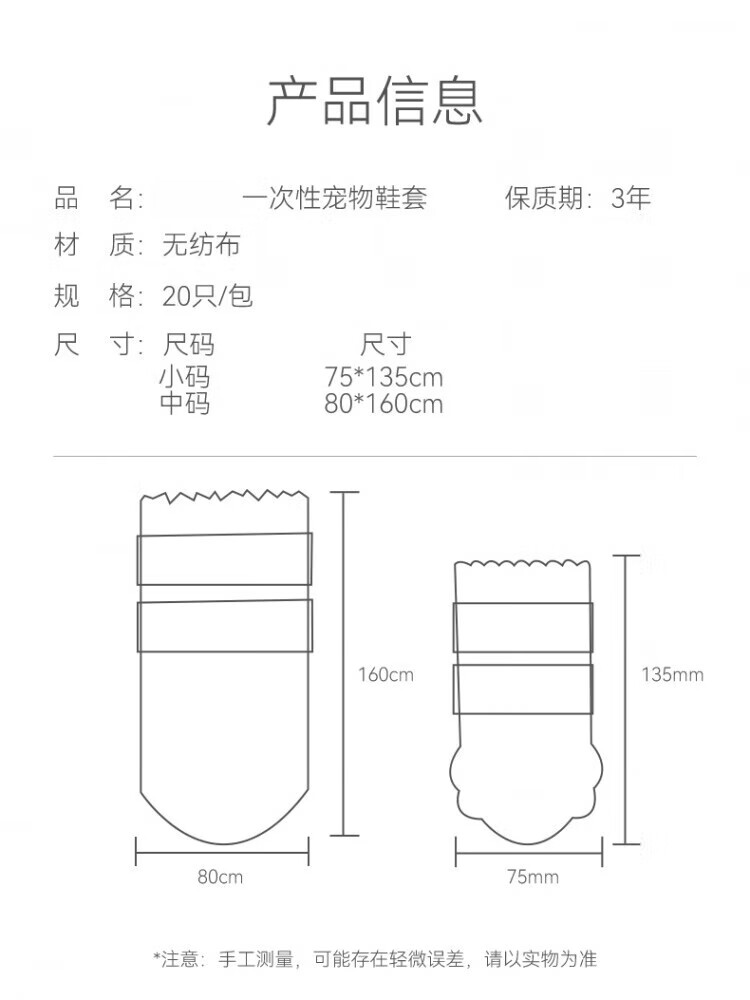 AILUKI日本狗狗鞋套外出遛狗防脏一次性脚套宠物鞋子中小型犬泰迪防水 双层绑带防尘款S建议体重2-15斤 1包20只一包尝鲜装