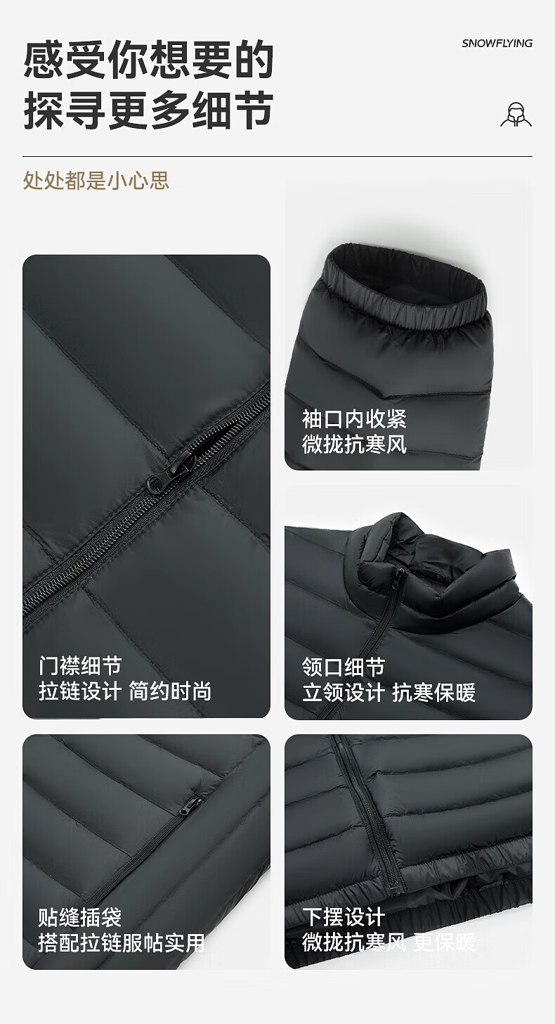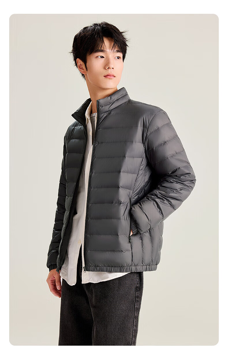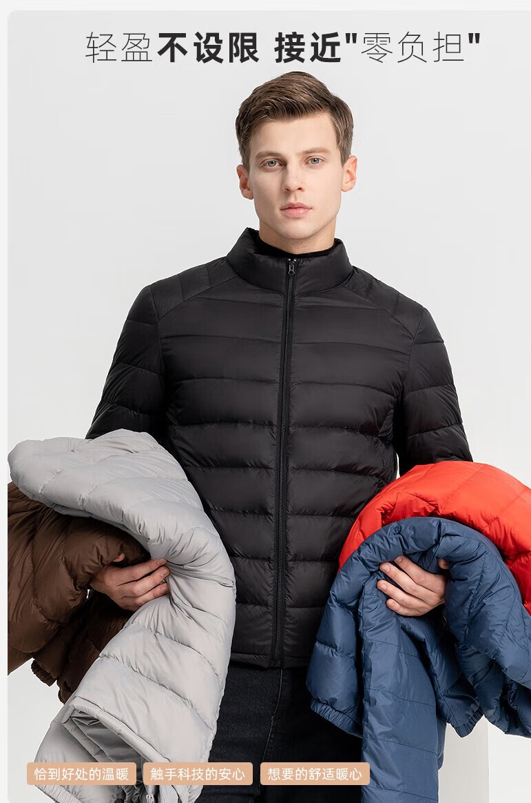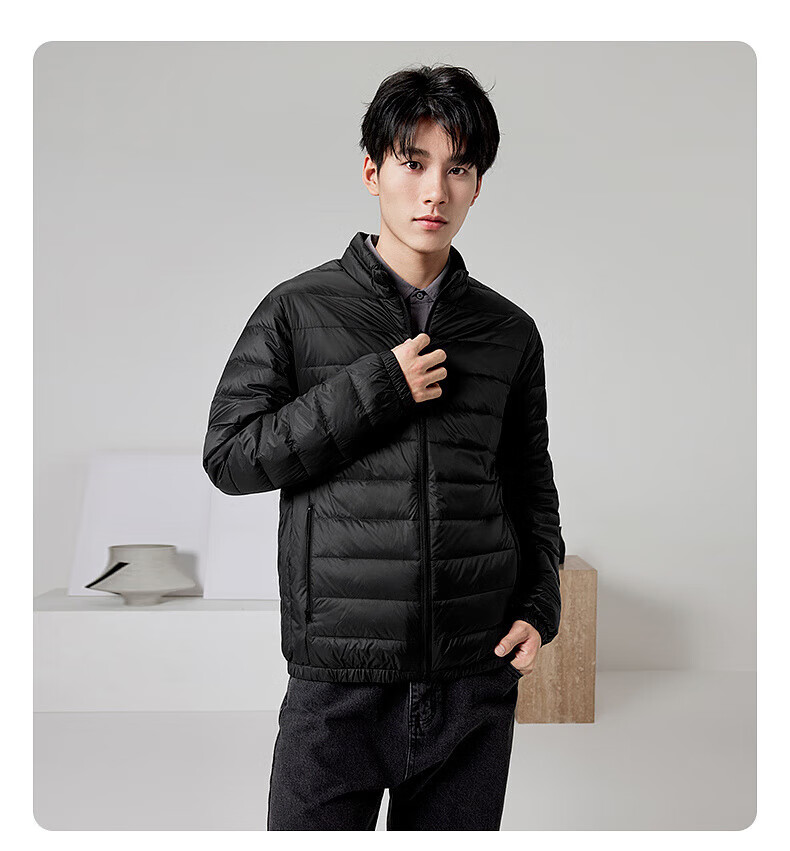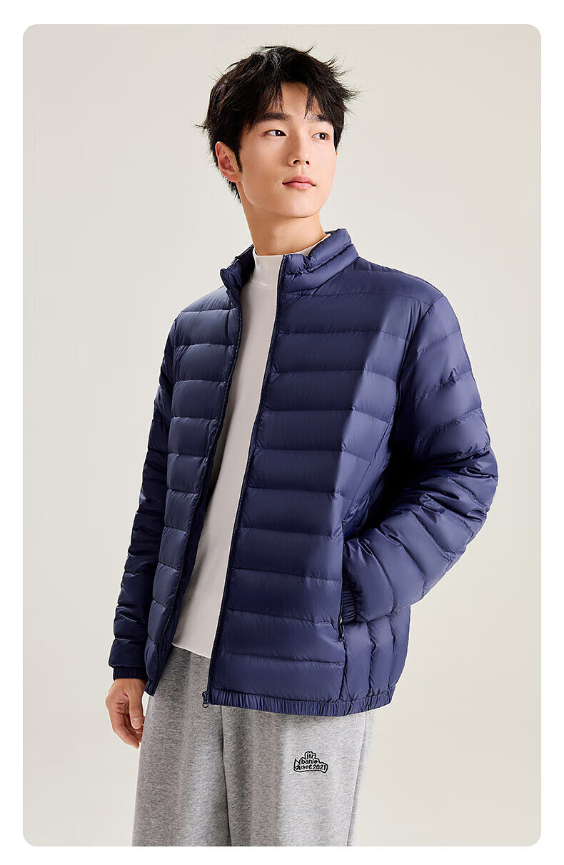 雪中飞男女立领秋羽绒百搭轻薄鸭绒立领修身轻盈隐藏式口袋 宝石黑|8086-男 XL 180/100A