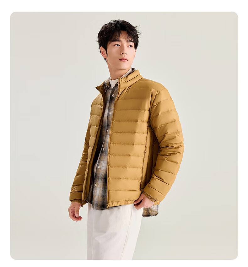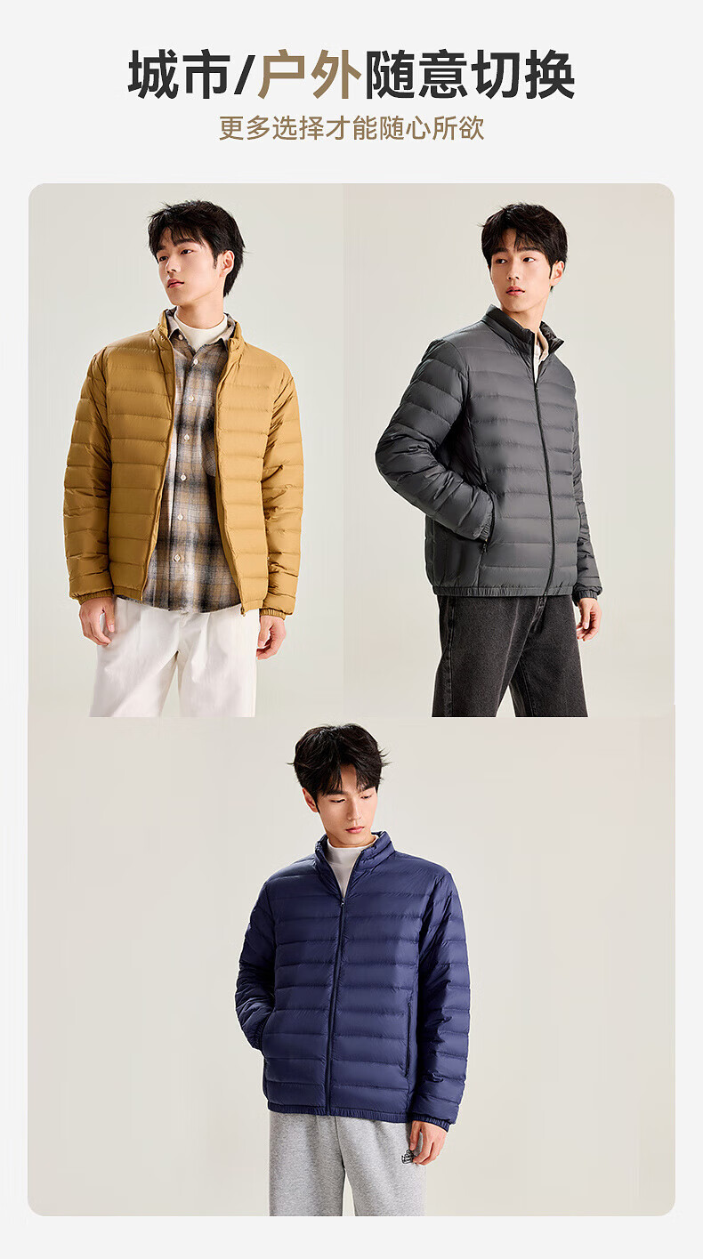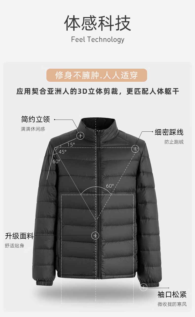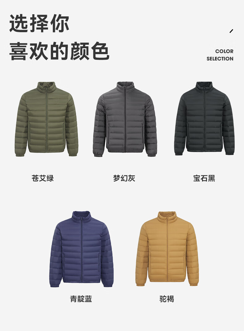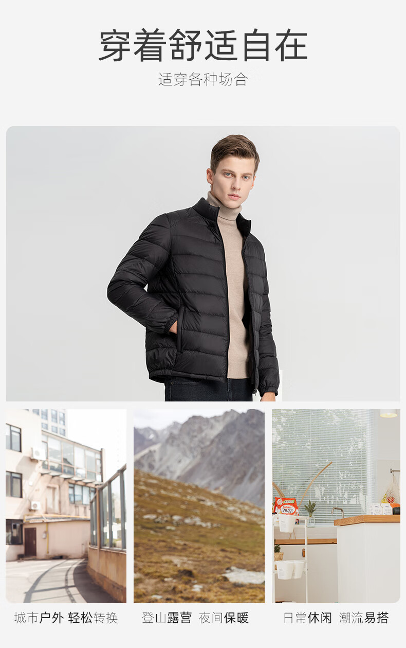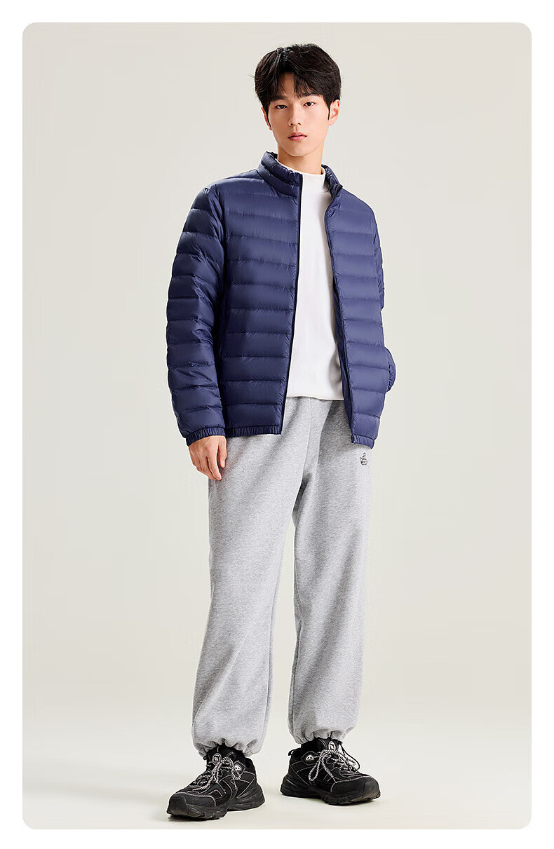 雪中飞男女立领秋羽绒百搭轻薄鸭绒立领修身轻盈隐藏式口袋 宝石黑|8086-男 XL 180/100A