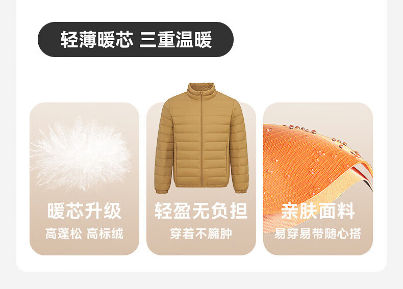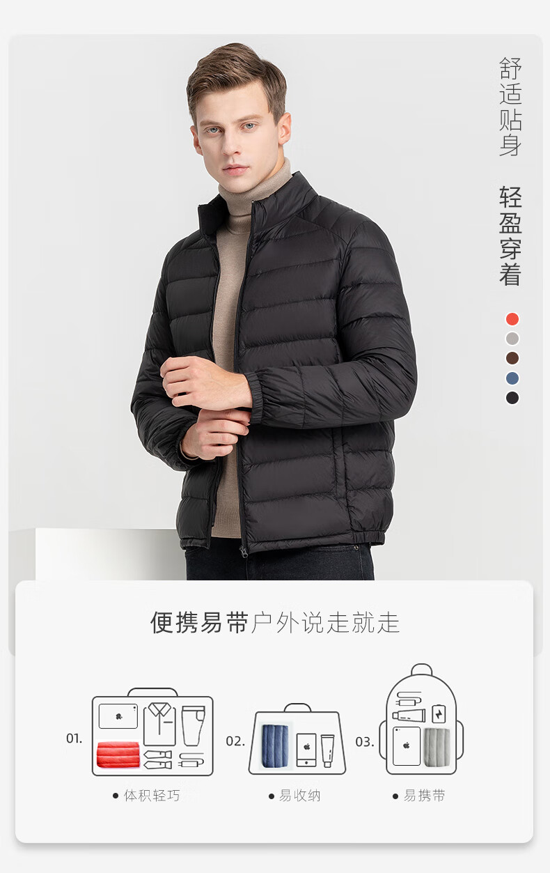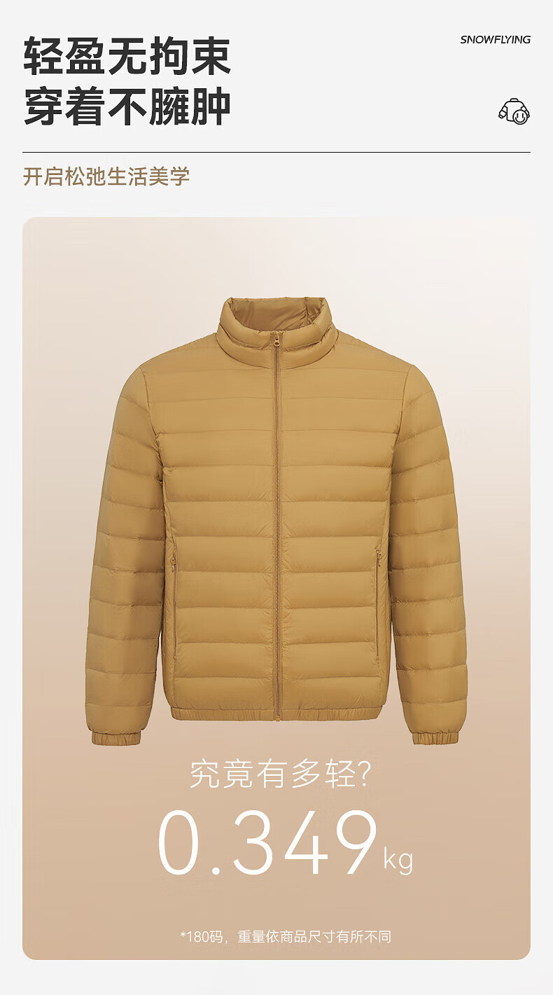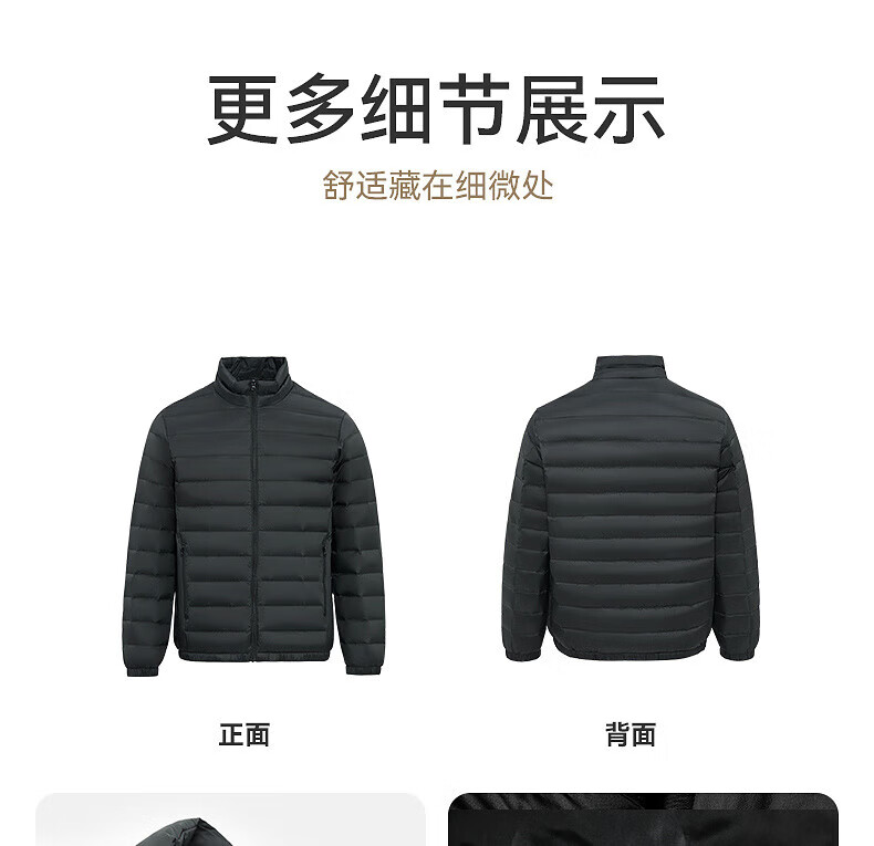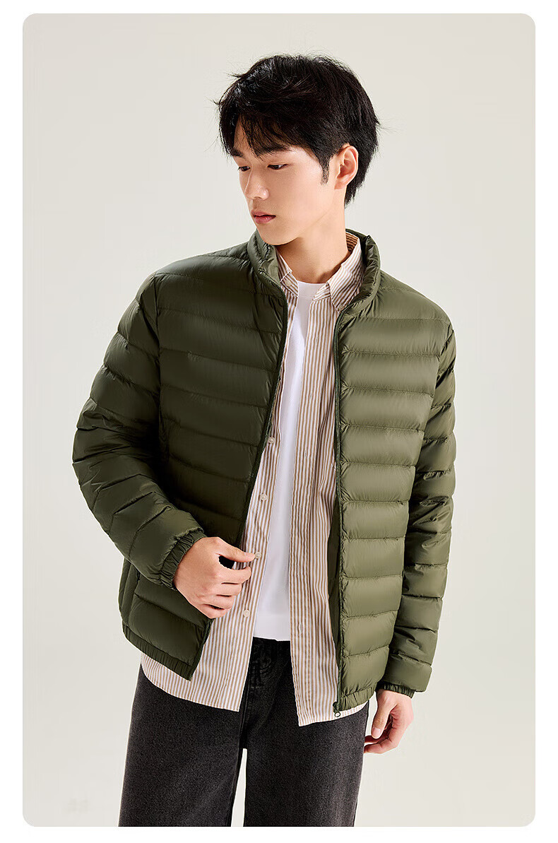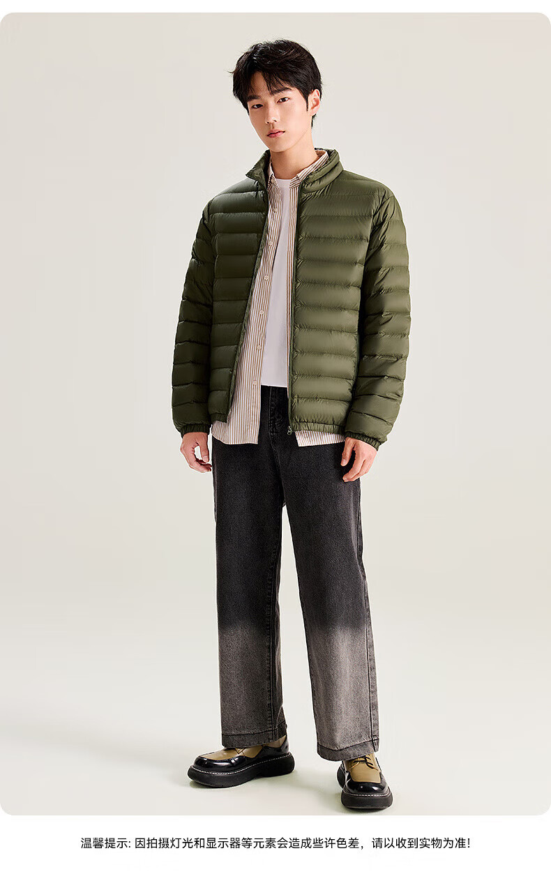 雪中飞男女立领秋羽绒百搭轻薄鸭绒立领修身轻盈隐藏式口袋 宝石黑|8086-男 XL 180/100A