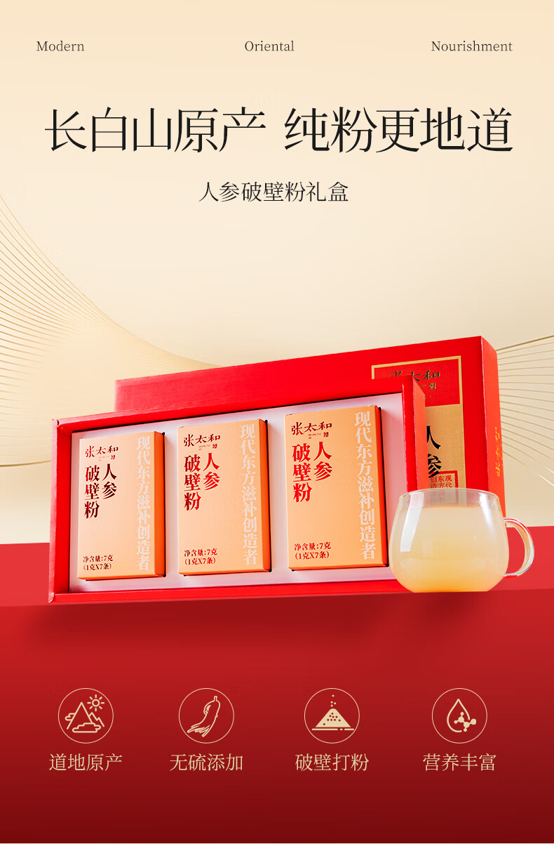 张太和长白山人参破壁粉礼盒装 破壁粉即冲即饮 中秋国庆礼盒礼品 人参破壁粉礼盒21g(7g*3盒)送礼袋