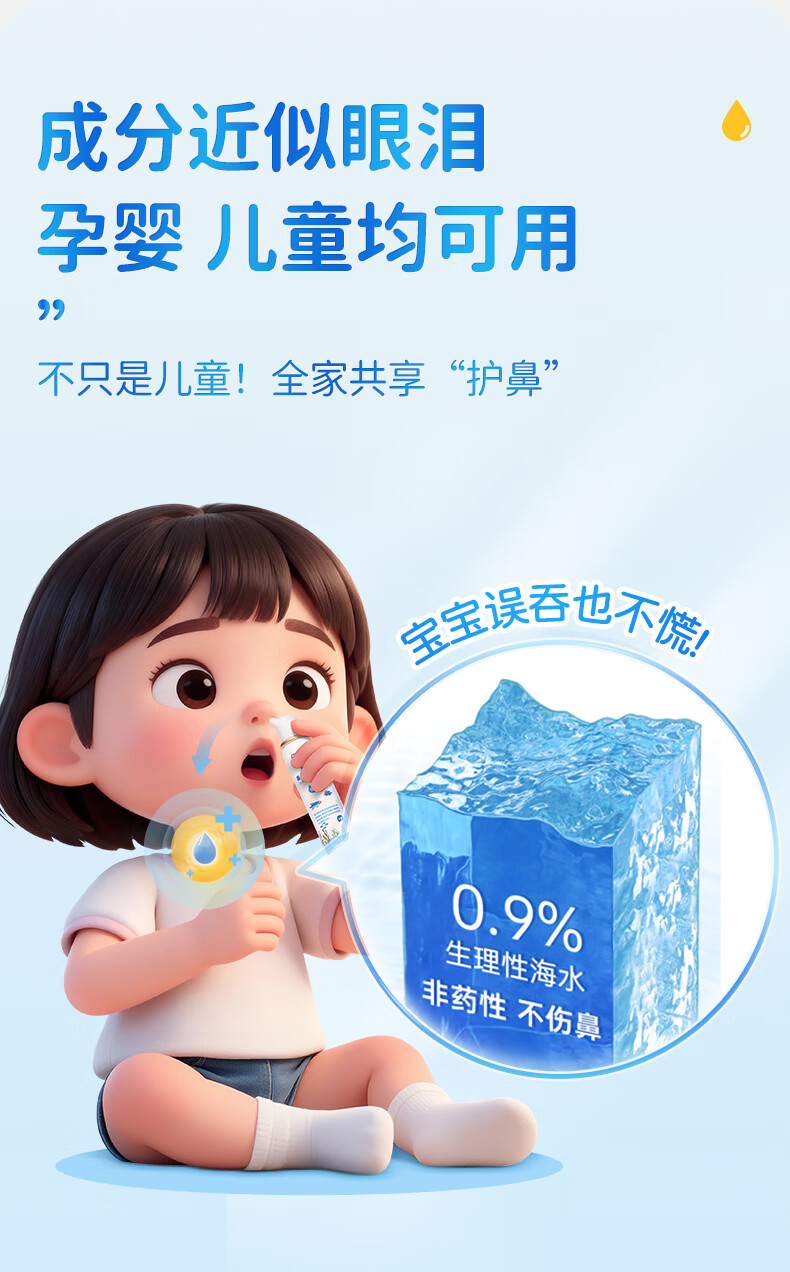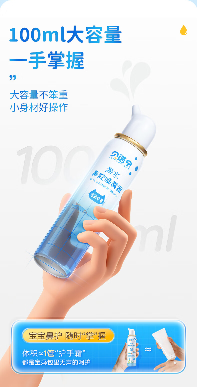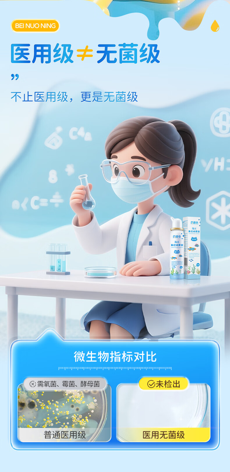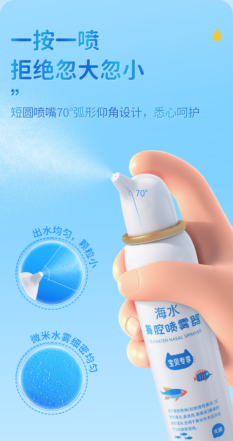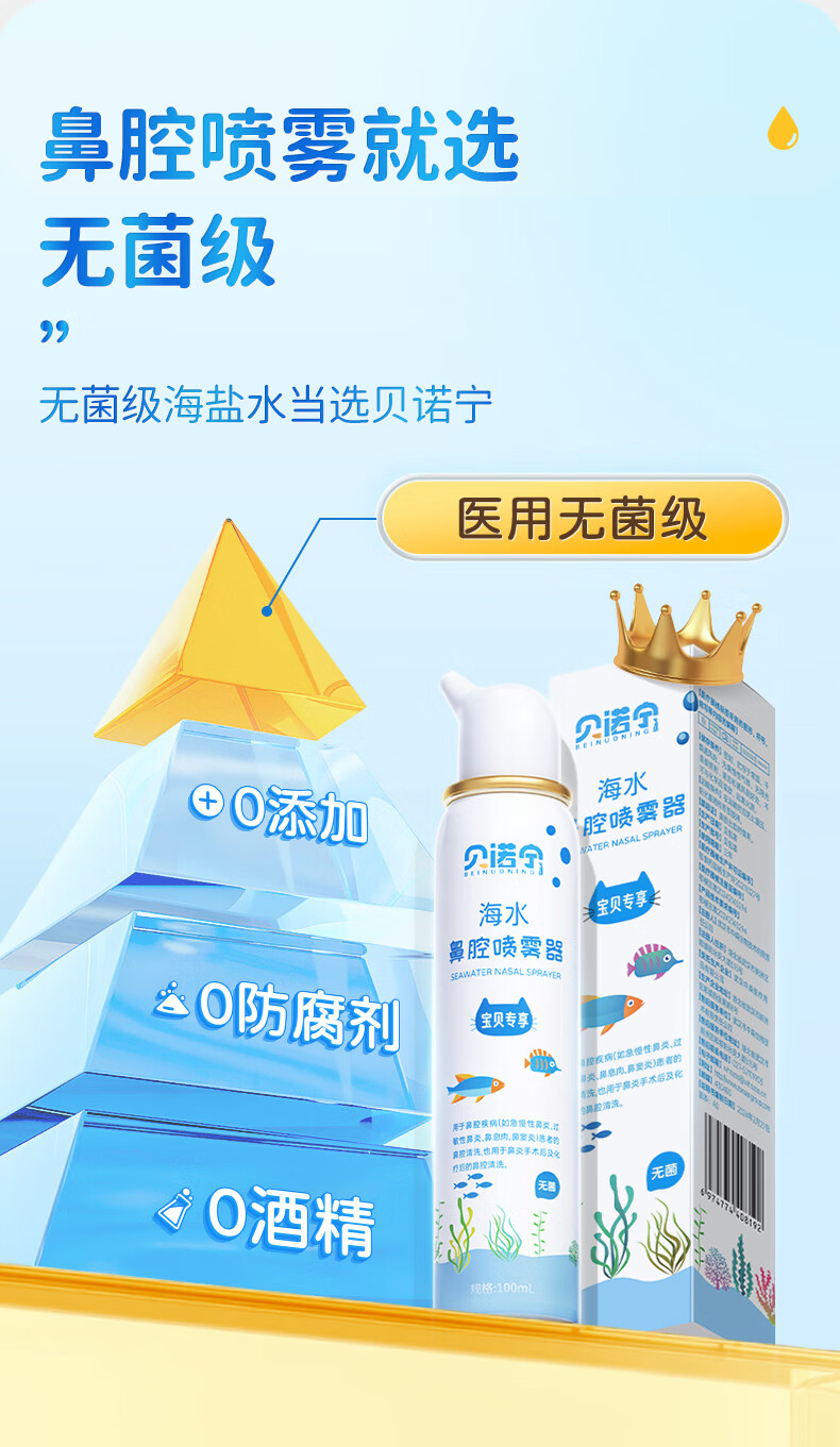 贝诺宁海盐水鼻喷雾生理盐水洗鼻腔喷雾清洗鼻器婴幼儿童鼻炎喷剂100ml