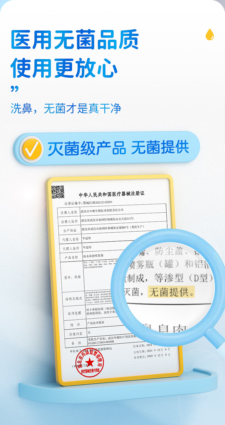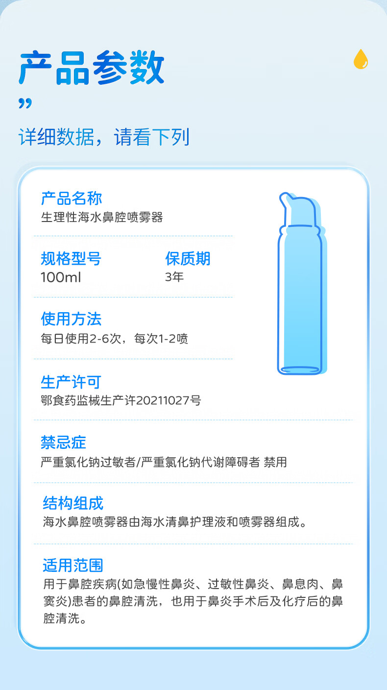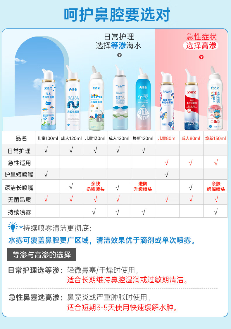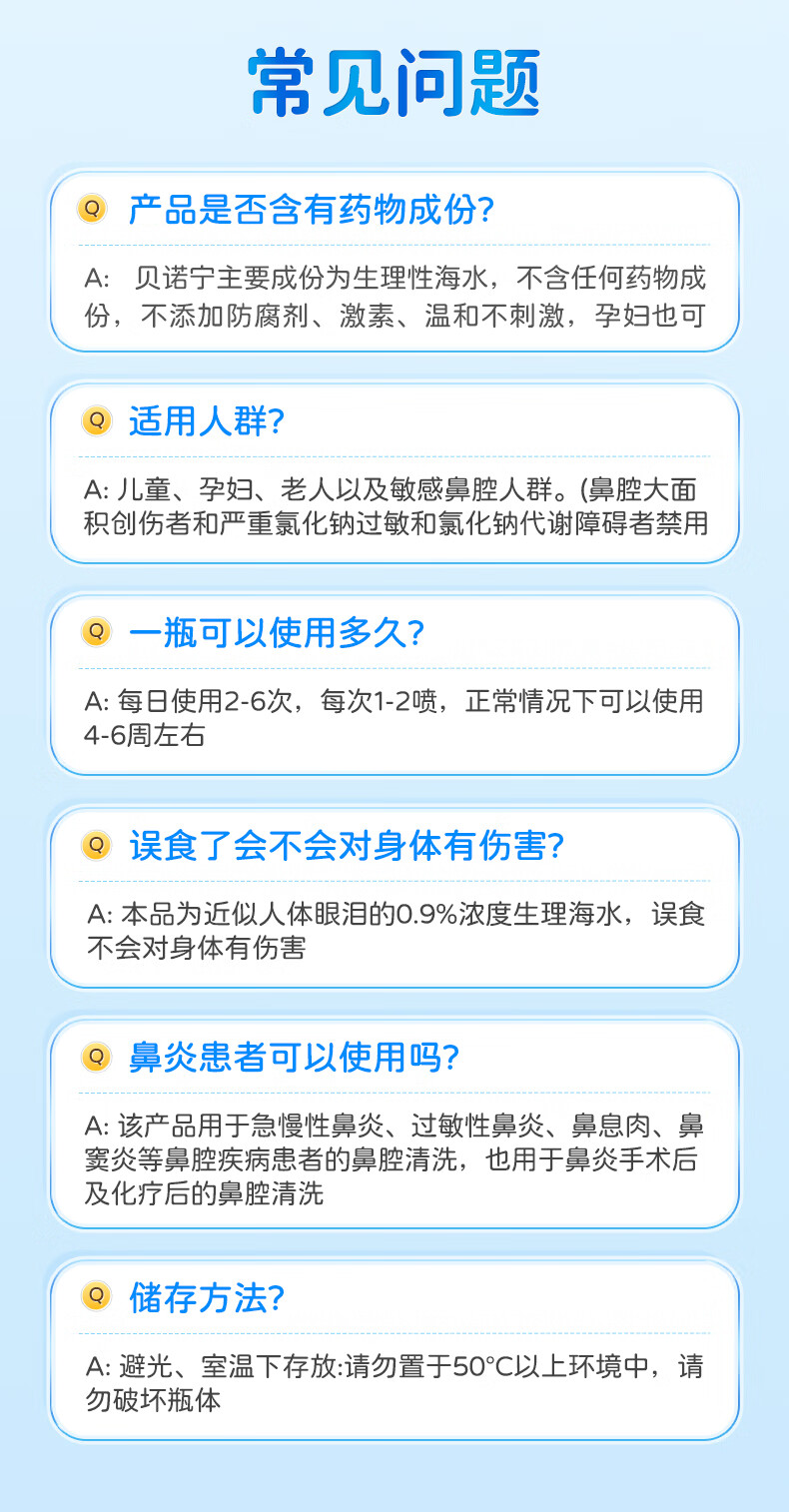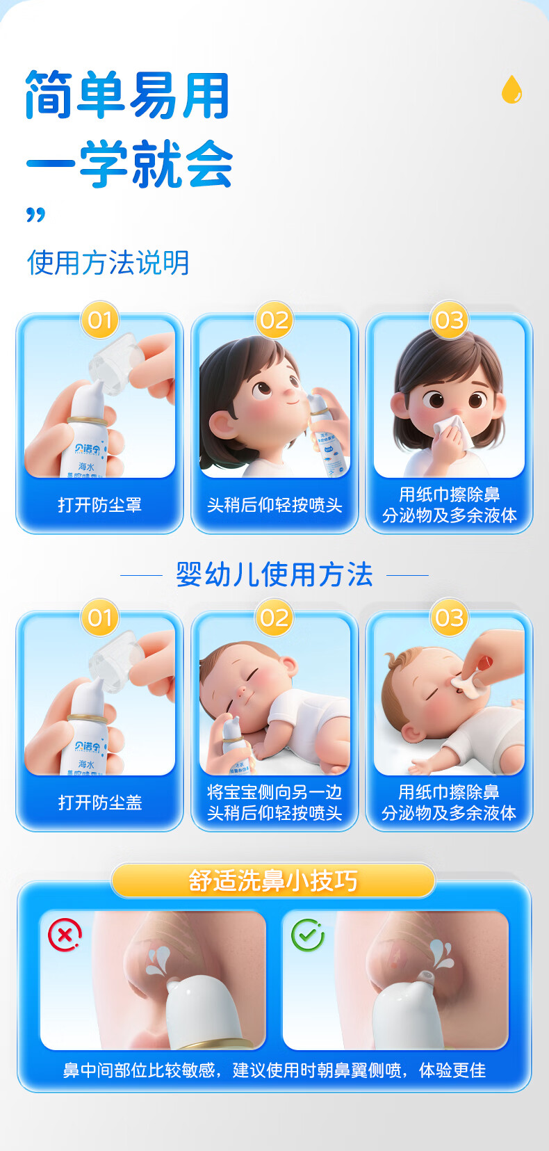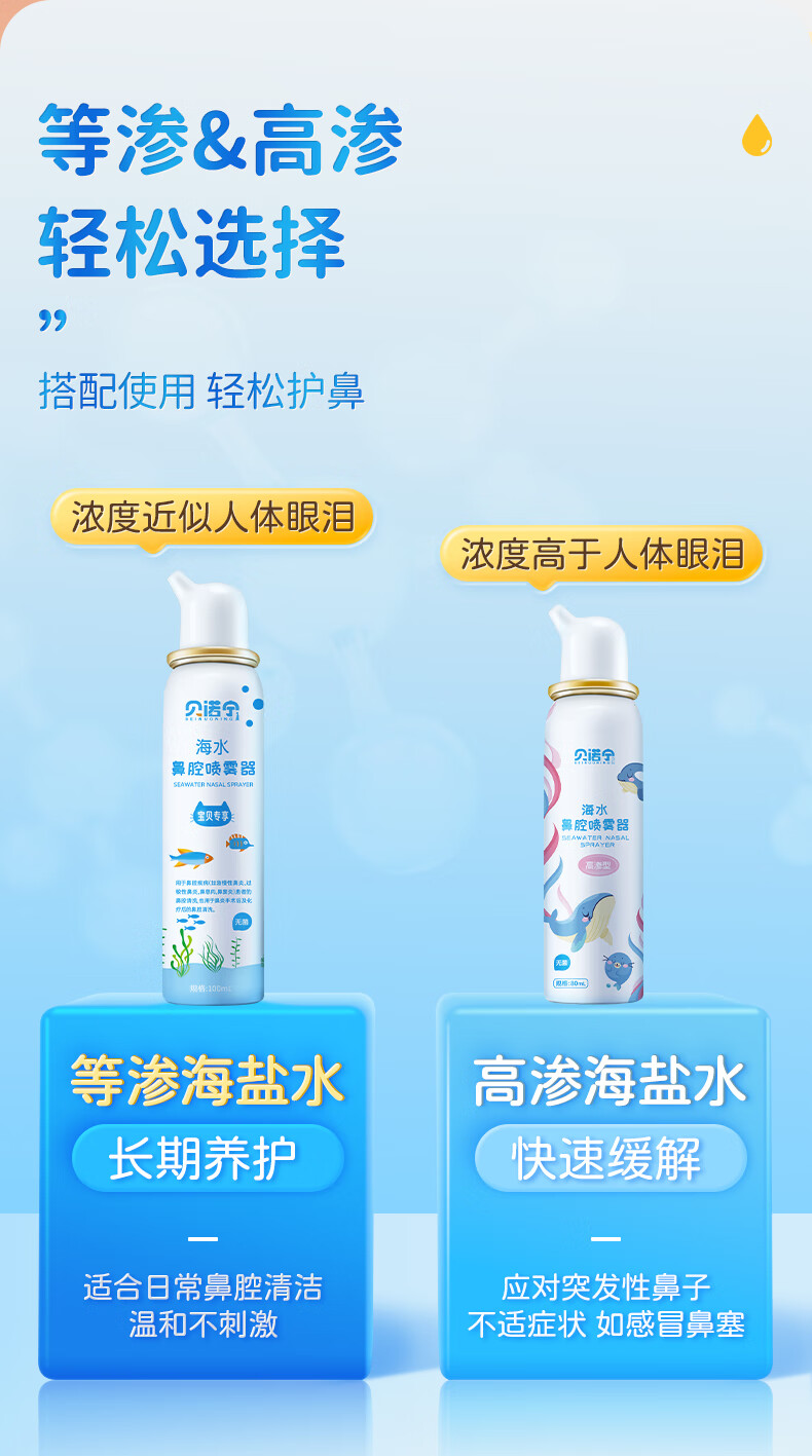 贝诺宁海盐水鼻喷雾生理盐水洗鼻腔喷雾清洗鼻器婴幼儿童鼻炎喷剂100ml