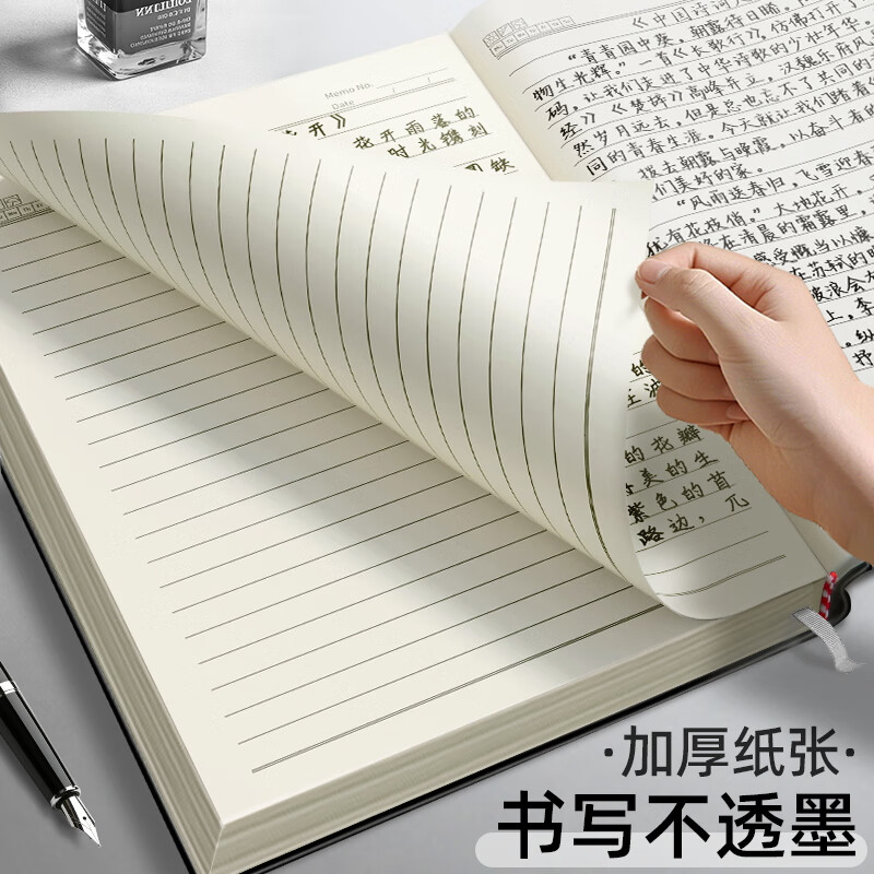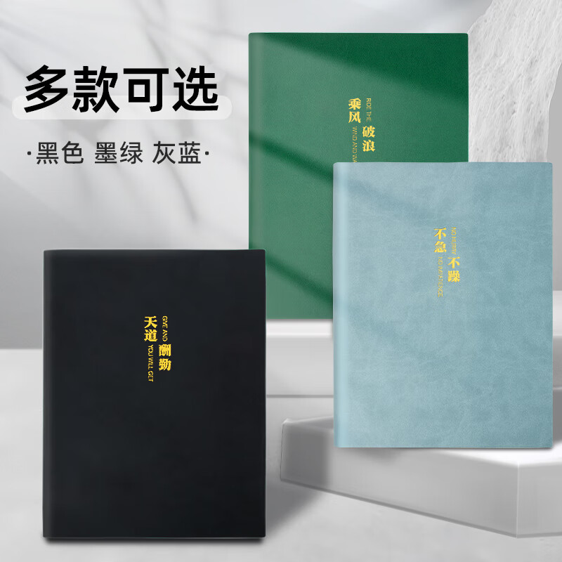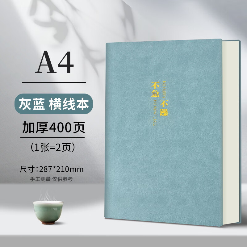 新时达A4笔记本本子大号加厚超厚款学习考研工作会议高中横线记事本日记本皮面本记录本高颜值 灰蓝400页