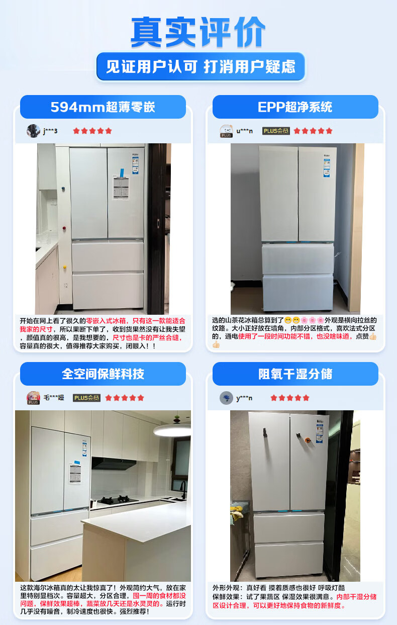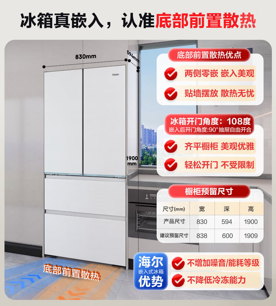 海尔(Haier)山茶花485升超薄零嵌全空间保鲜EPP超净家用电冰箱法式四开门国家补贴20% BCD-485WGHFD1BWLU1