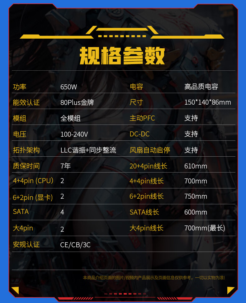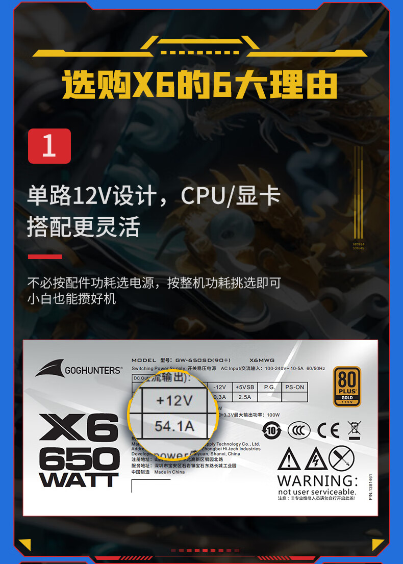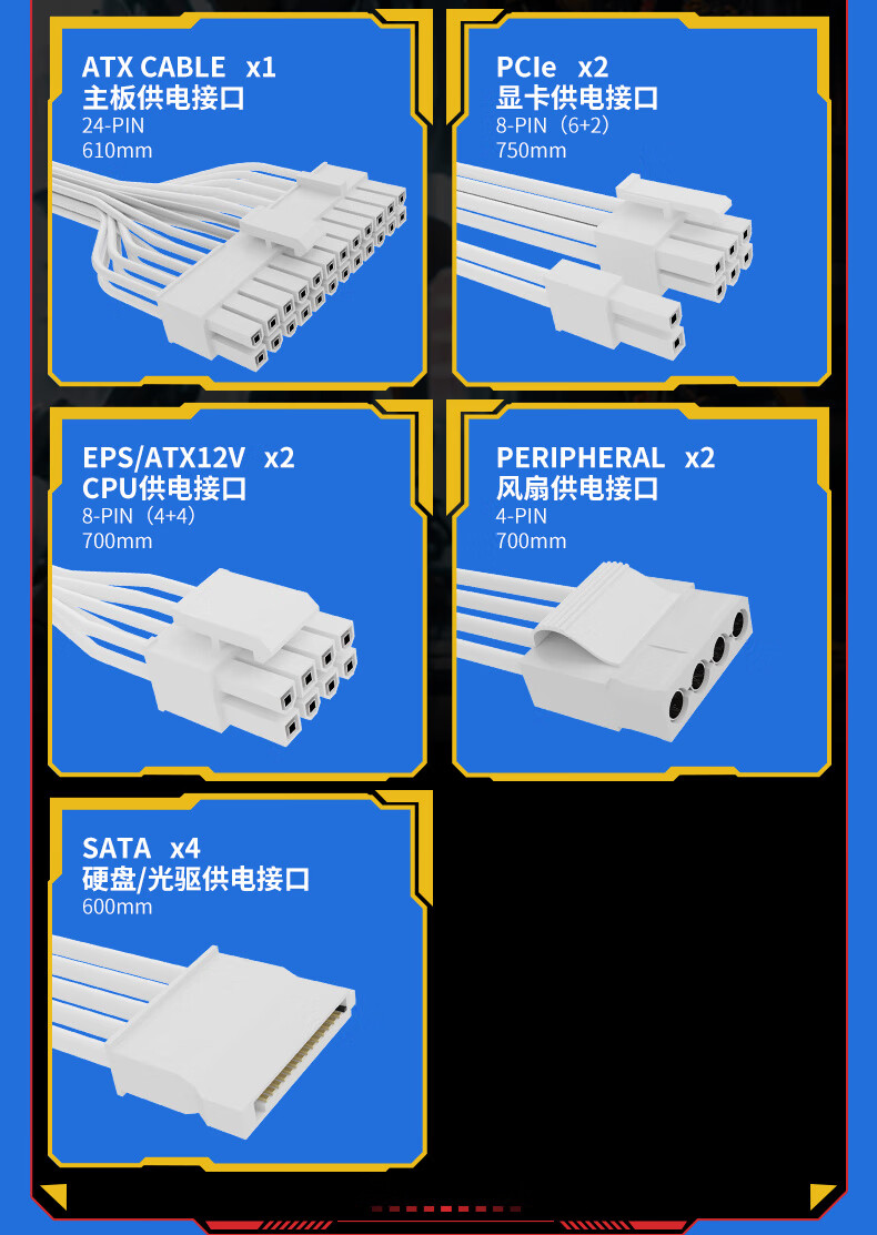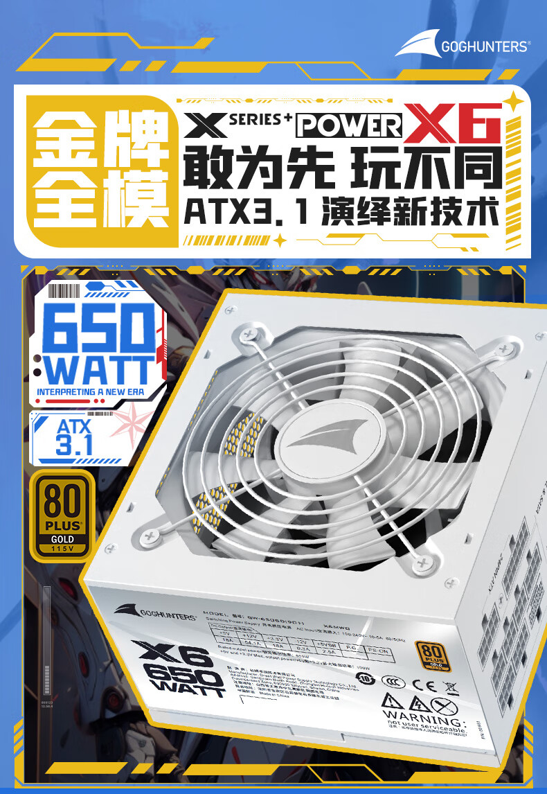 长城(Great Wall)额定650W X6白色金牌全模电脑电源(ATX3.1标准/漏电监测/全电压/温控风扇/长线材/支持5060显卡)