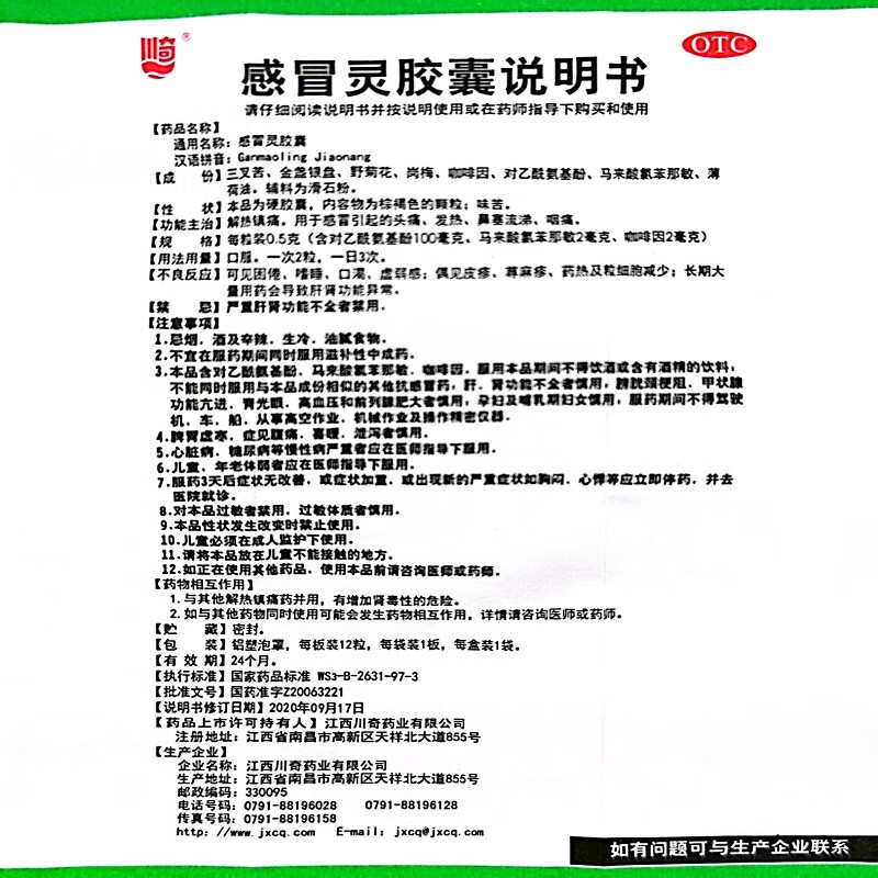 川奇 感冒灵胶囊 0.5g*12粒感冒药解热镇痛 头痛发热 鼻塞流涕 咽痛