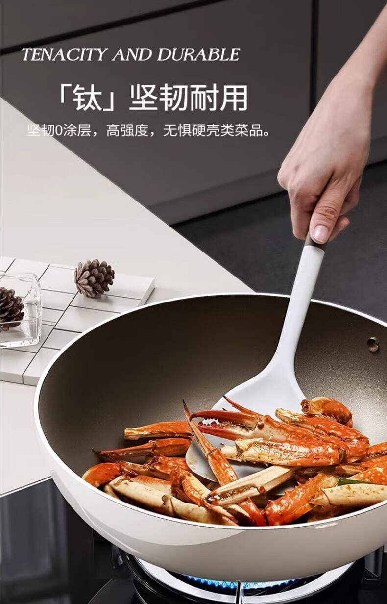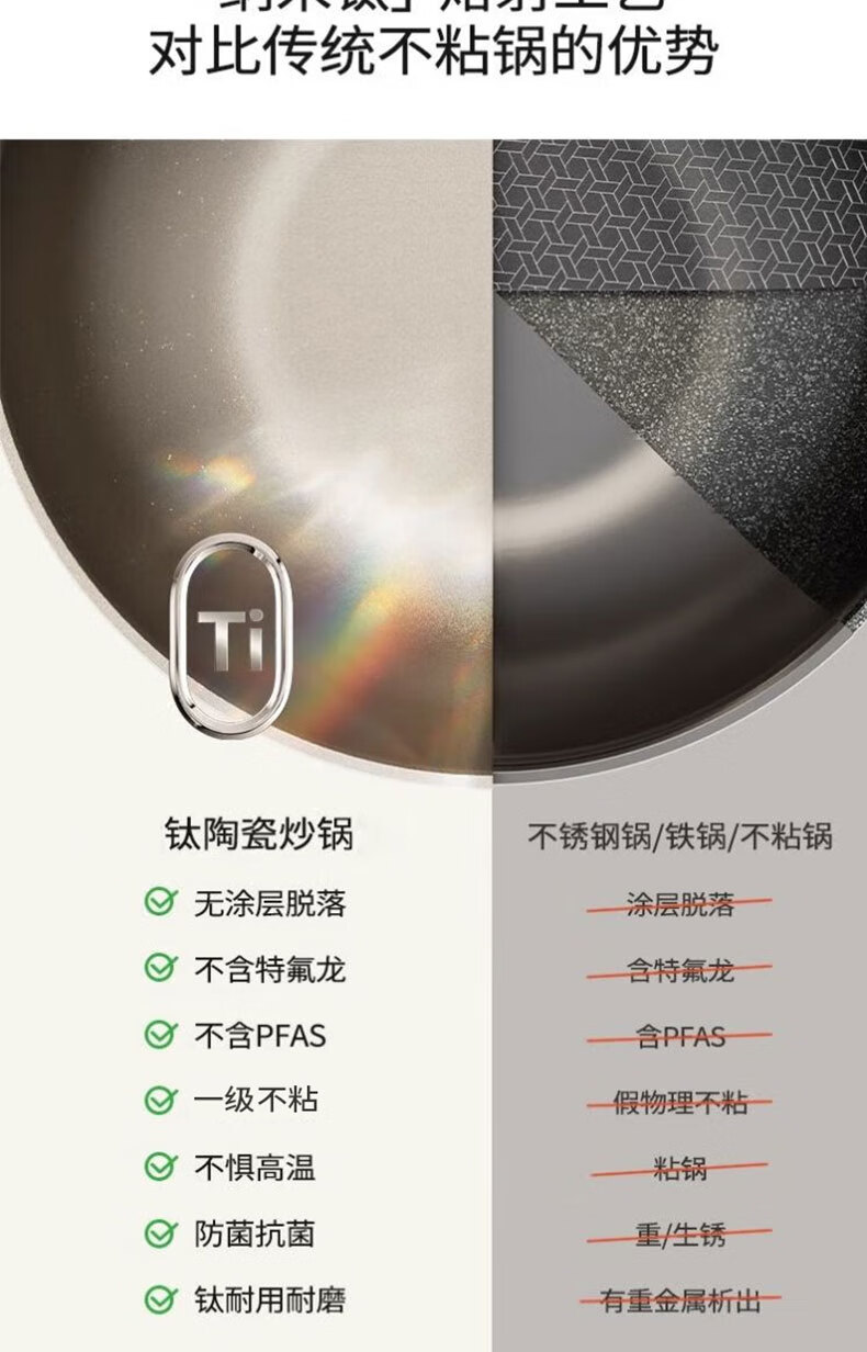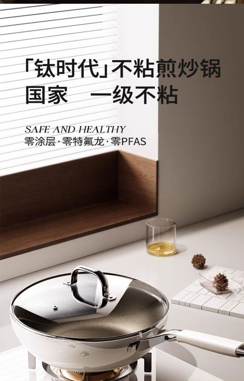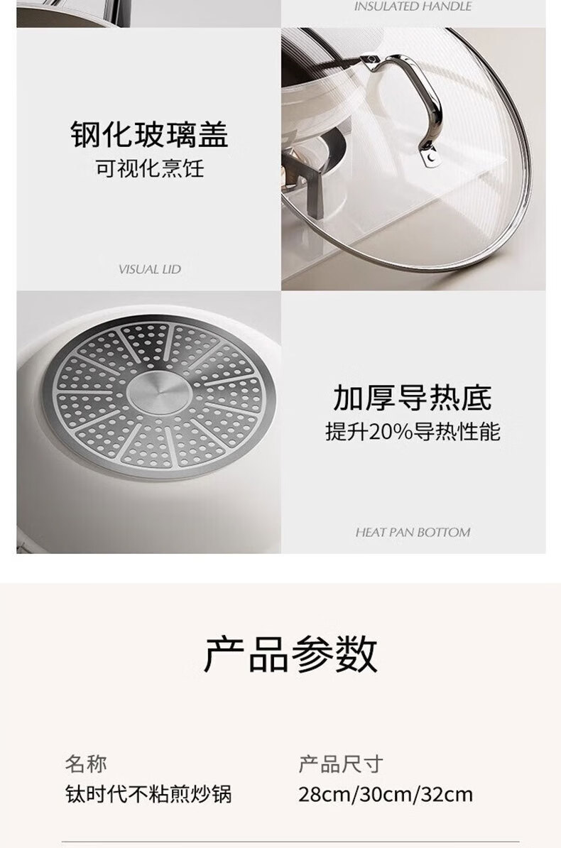 京严炒锅有钛陶瓷不粘锅家用炒菜锅具无烟不沾超轻煎锅电磁炉燃气专用 【德国工艺】煎炒不凸丨健康不粘 30cm 轻油烟丨 不挑灶丨导热快