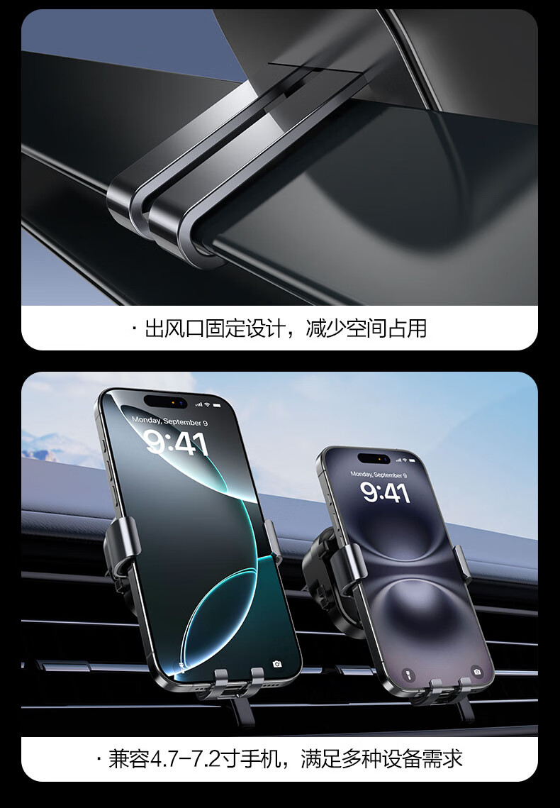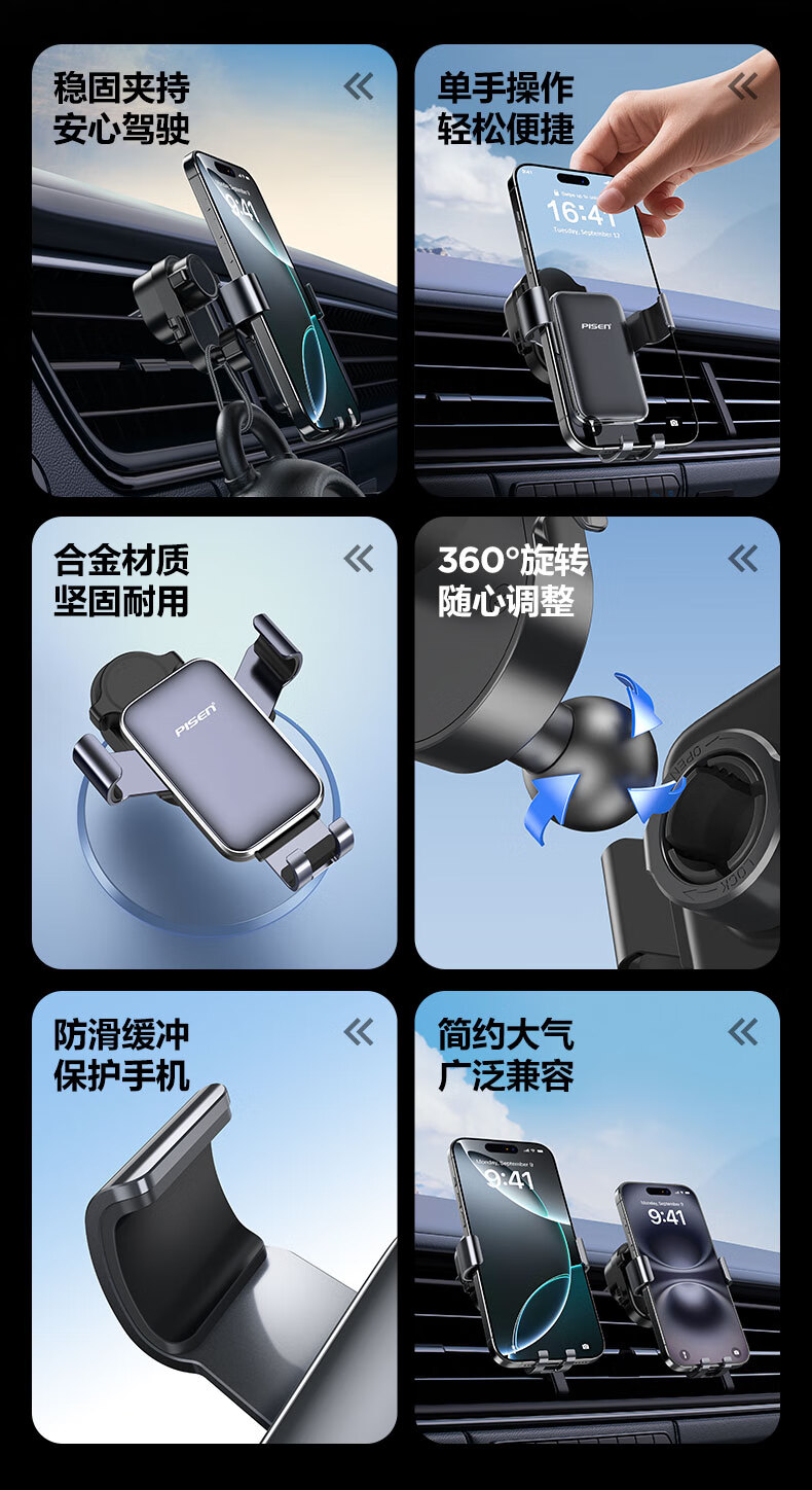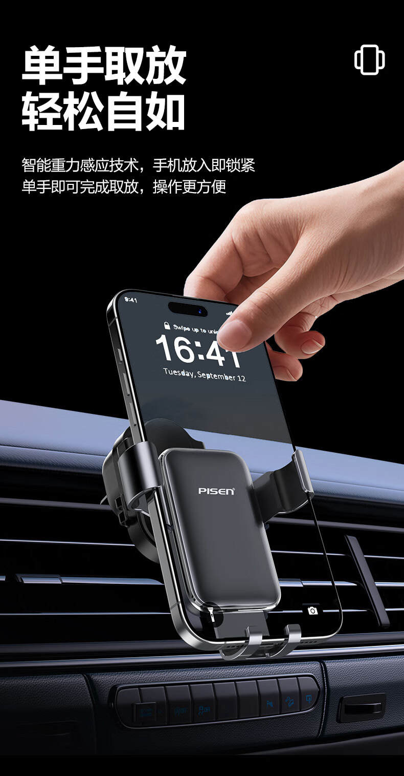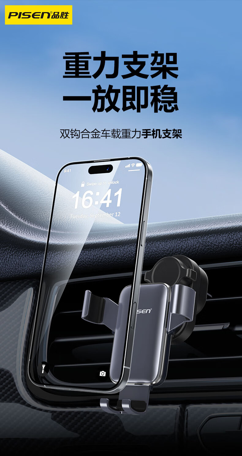 品胜车载手机支架汽车导航手机用车载金属重力支架出风口固定器