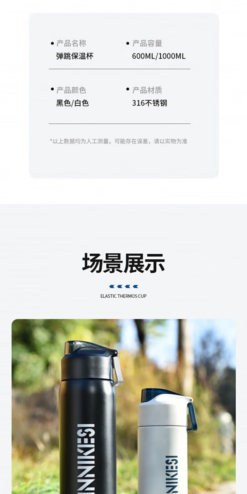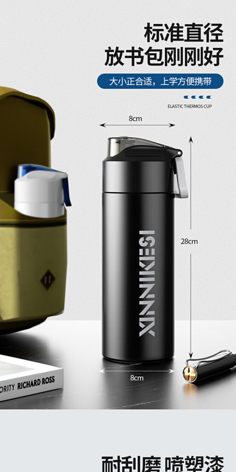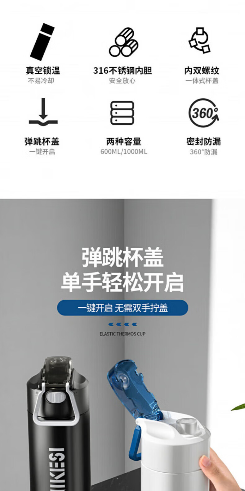 DEATKN德国316不锈钢保温杯学生上学专用大容量便携2025款直饮运动 黑色[真空锁温+健康0异味] 600ml