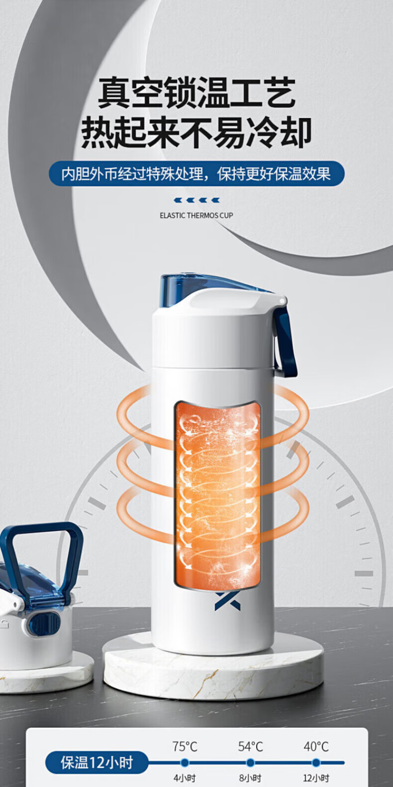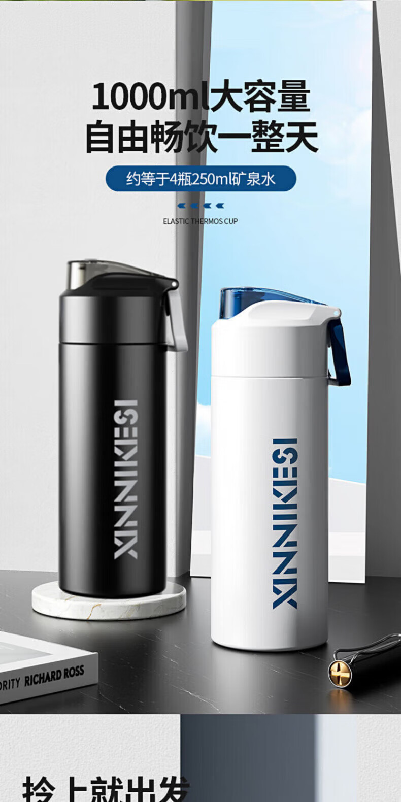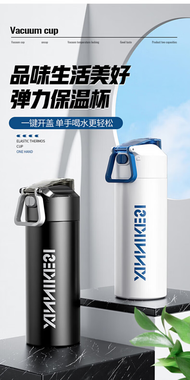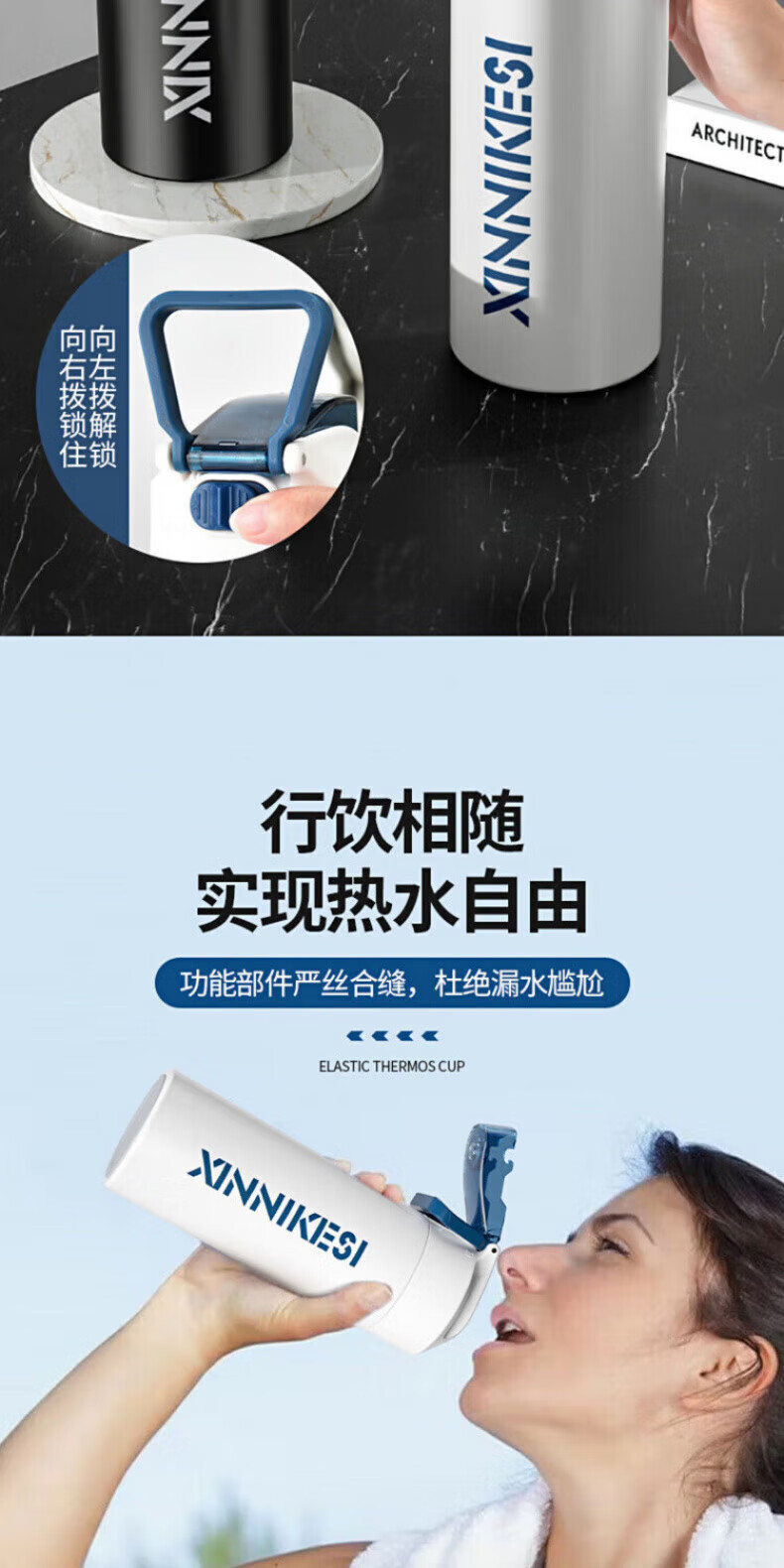 DEATKN德国316不锈钢保温杯学生上学专用大容量便携2025款直饮运动 黑色[真空锁温+健康0异味] 600ml