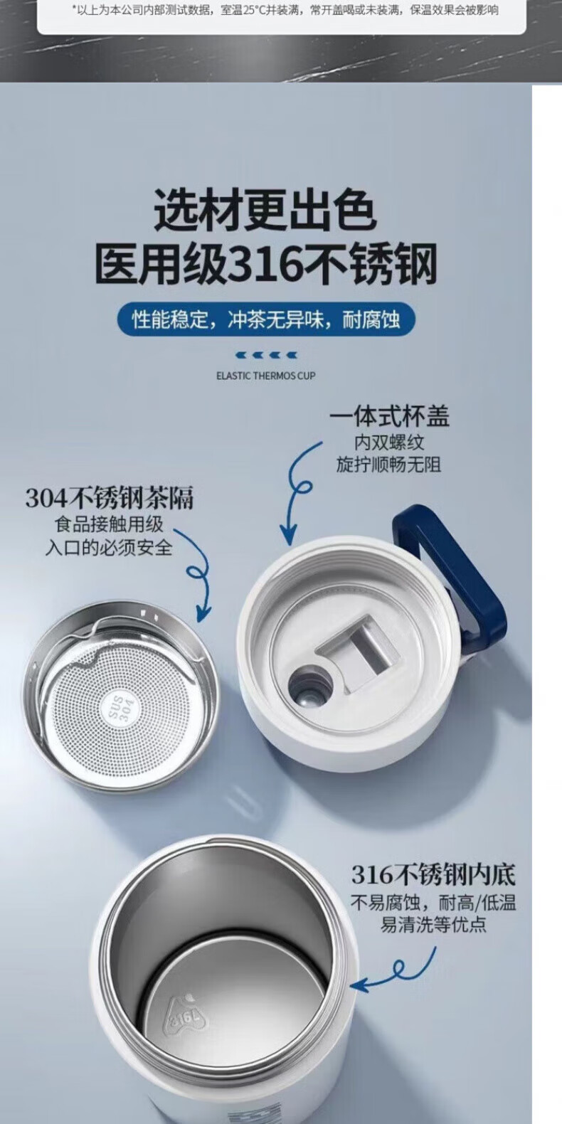 WCZ德国不锈钢保温壶大容量保温杯大号矮胖热水壶户外车载泡茶杯家用 象牙白1200ML(约2.4斤水) +滤网抱婴袋杯刷