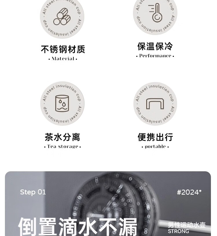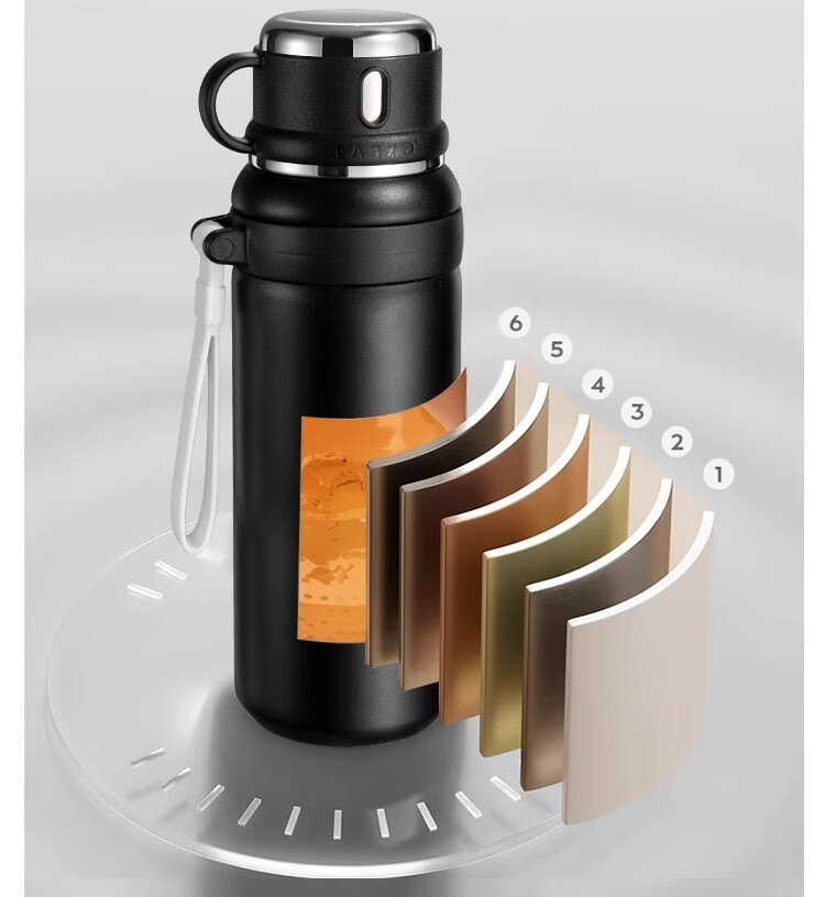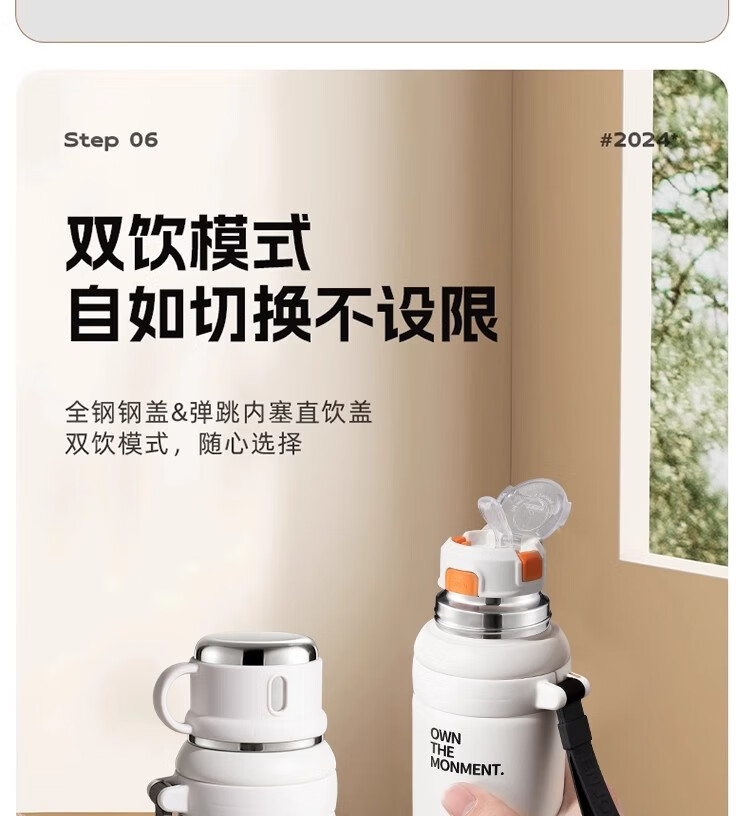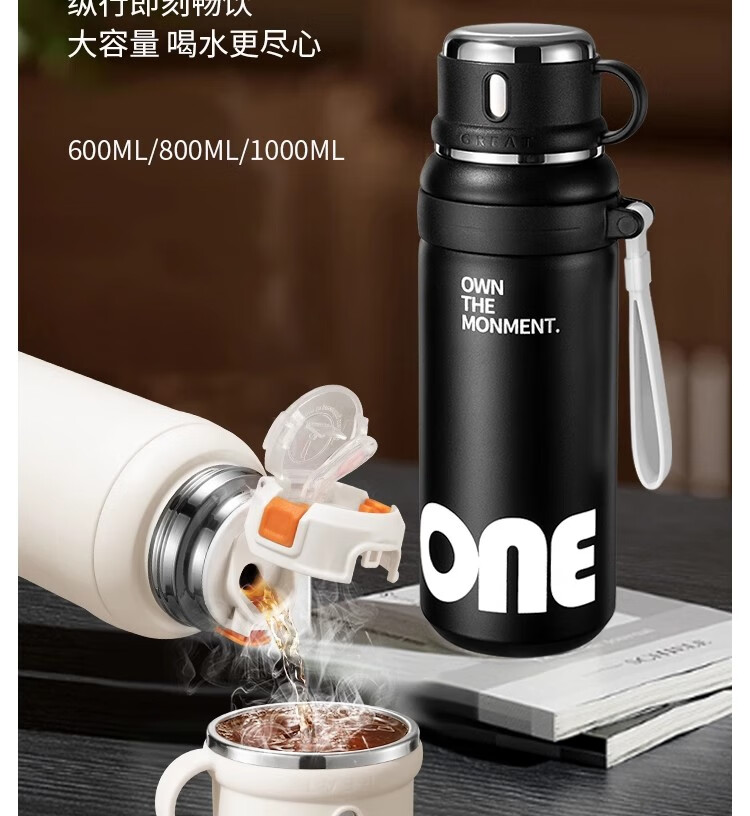 DEATKN德国保温杯双饮初高中男孩儿童上学专用学生高颜值运动水壶大容量 二代【抗菌316】黑600ML【保温保冷】 直饮+吸管双饮_全钢杯盖可喝水+升级提绳