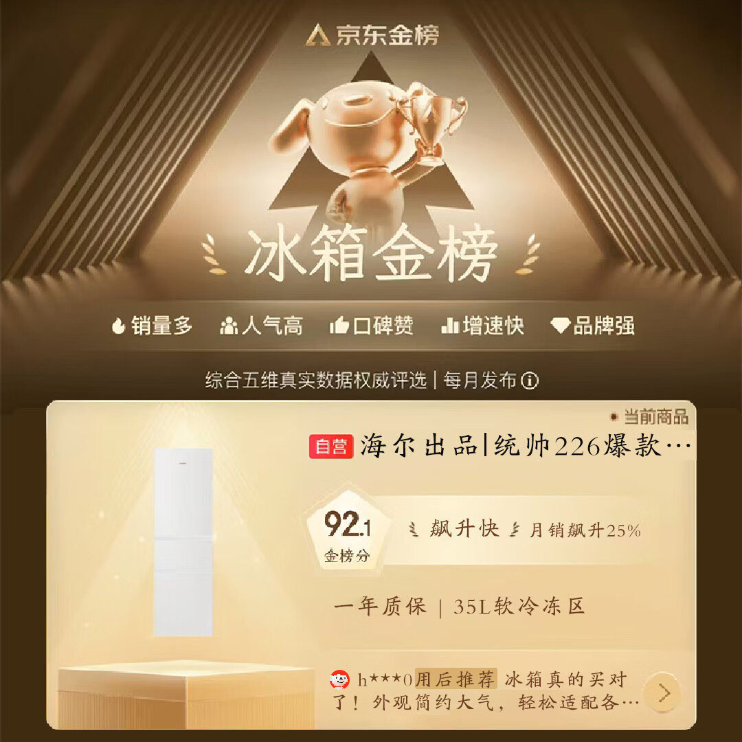 统帅(Leader)海尔出品218升三门出租房宿舍电冰箱小型不占地节能省电家用中门软冷冻LC3-226L9国家补贴15%