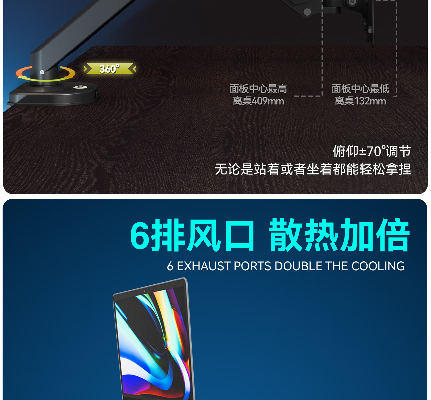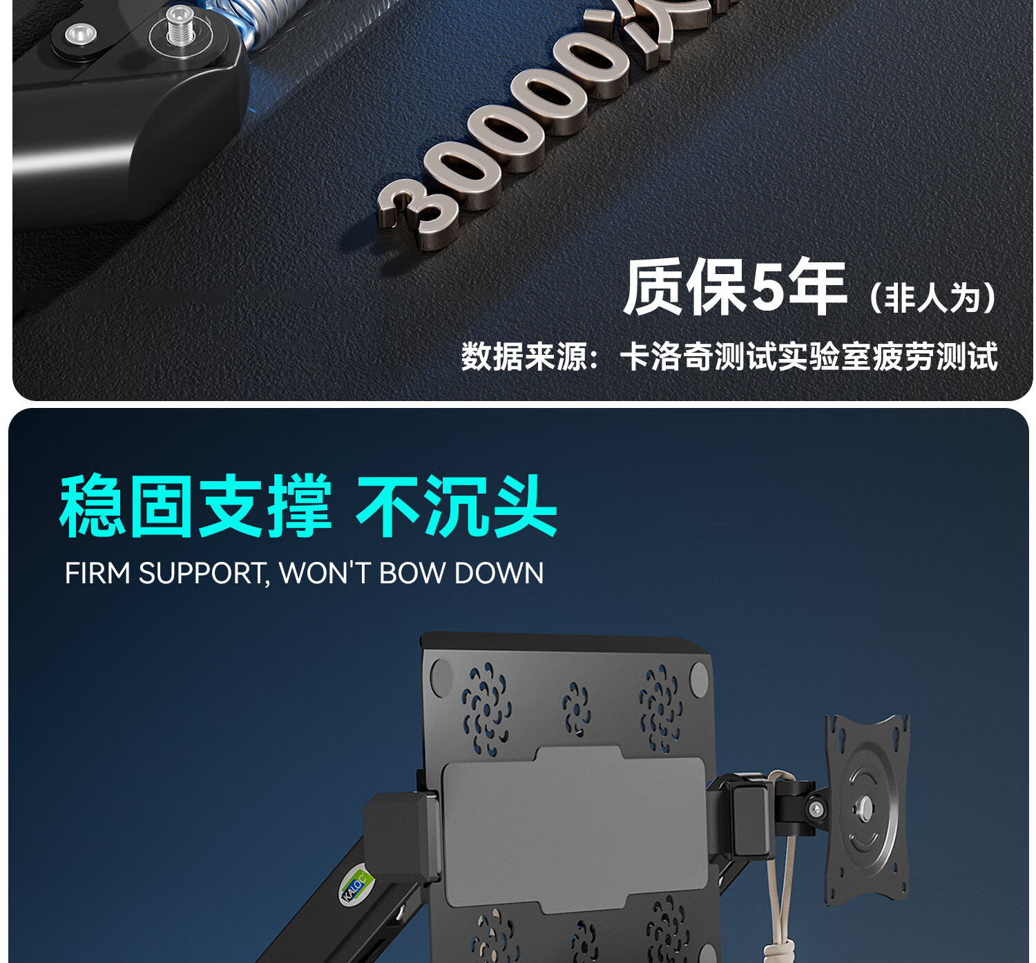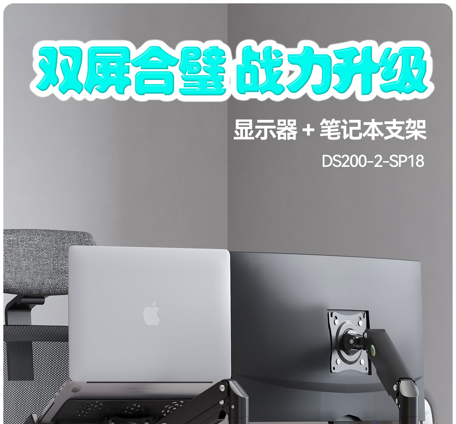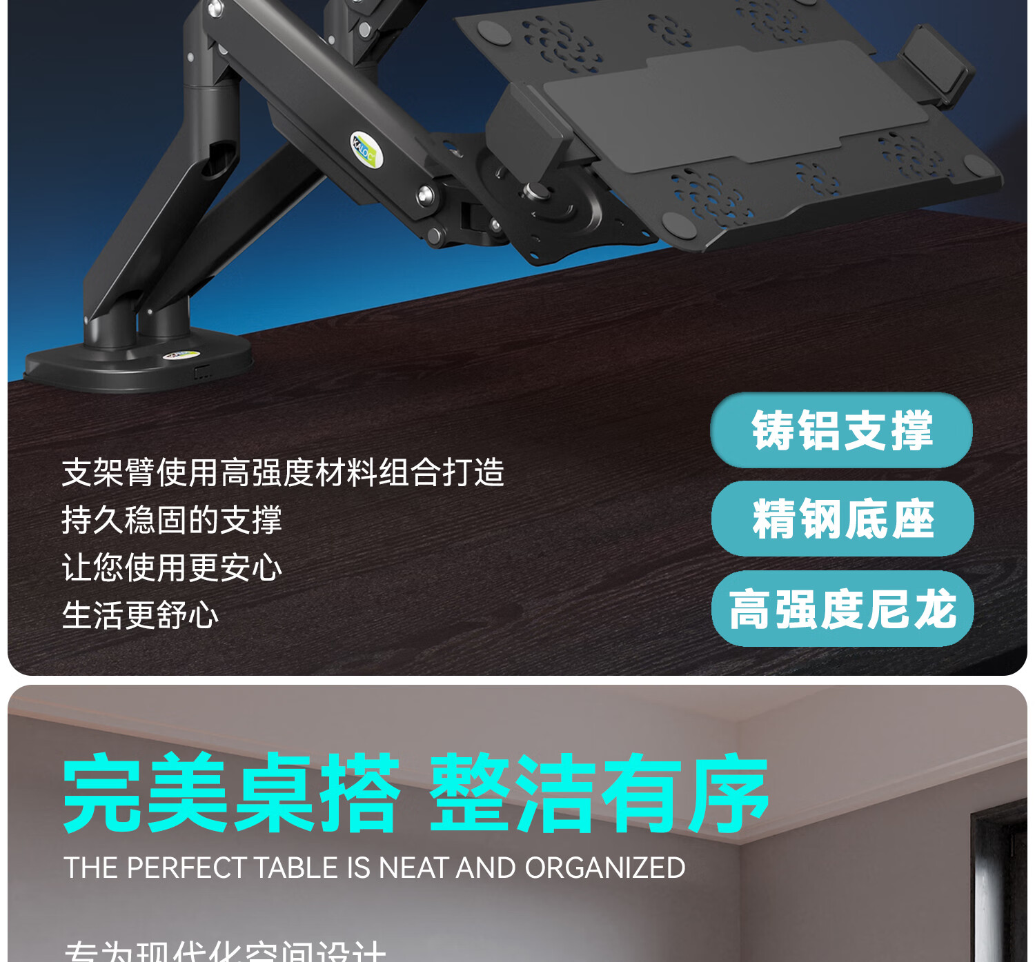 卡洛奇(kaloc)笔记本支架臂双屏 显示器支架 机械臂 电脑显示屏幕支架 笔记本电脑升降增高架 电脑支架散热器