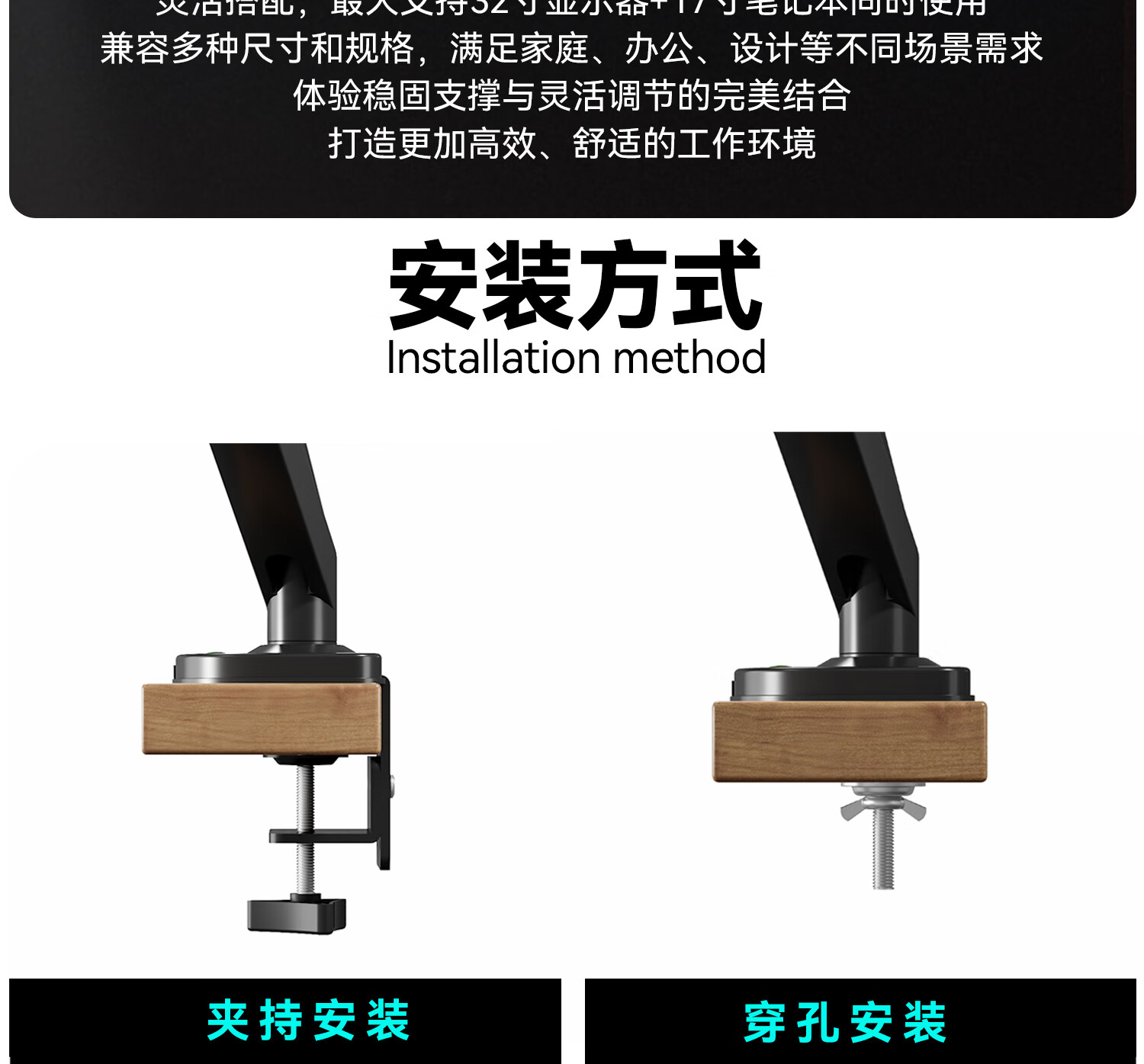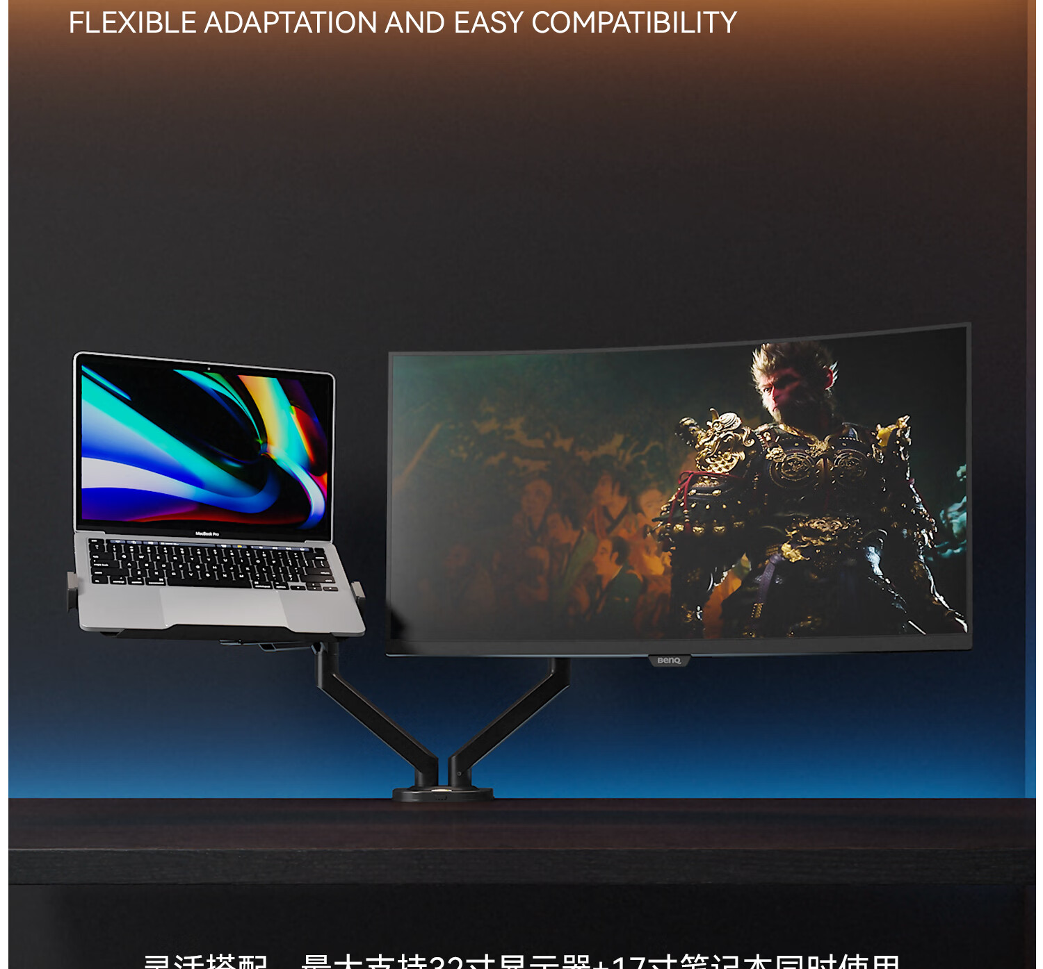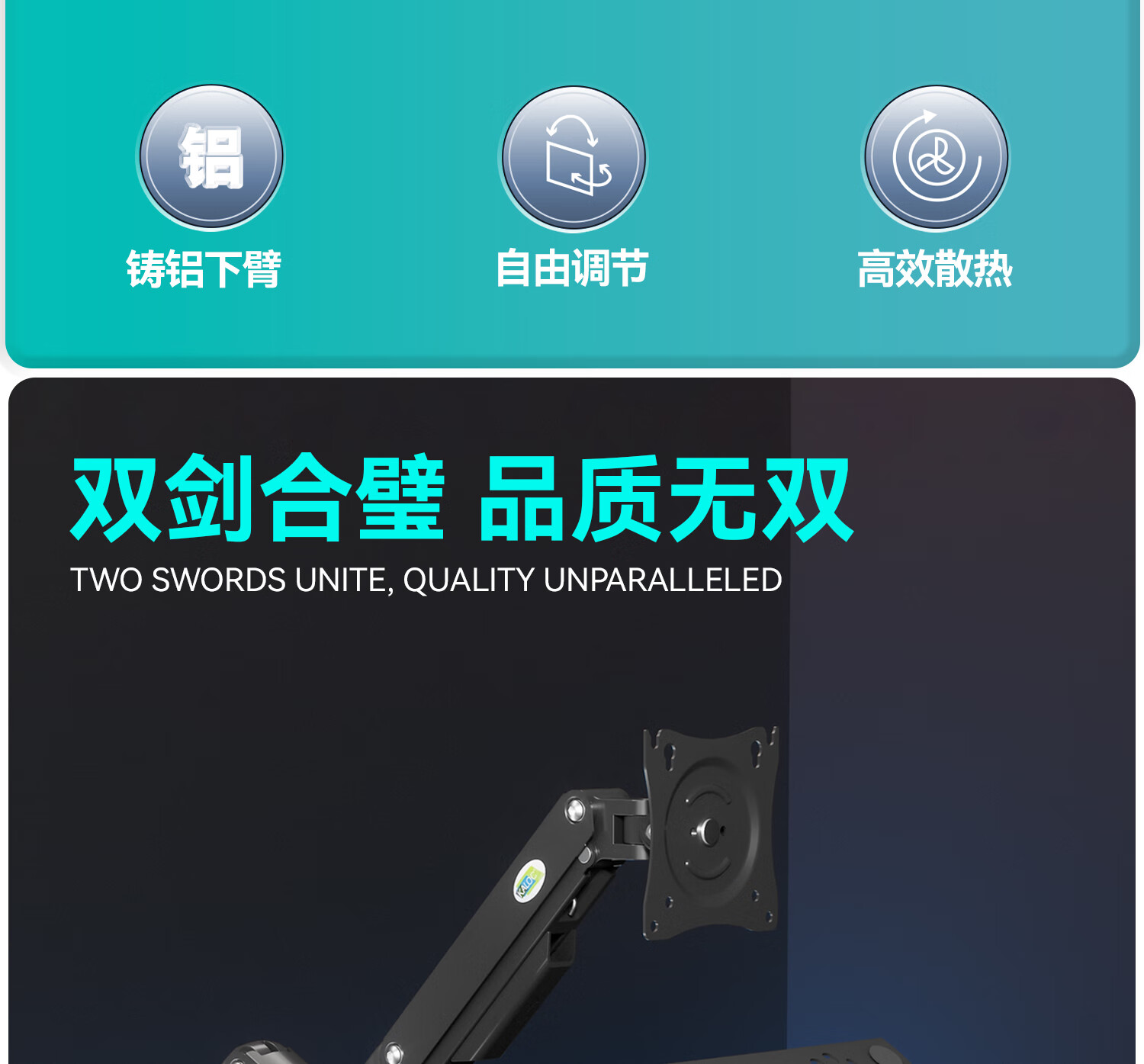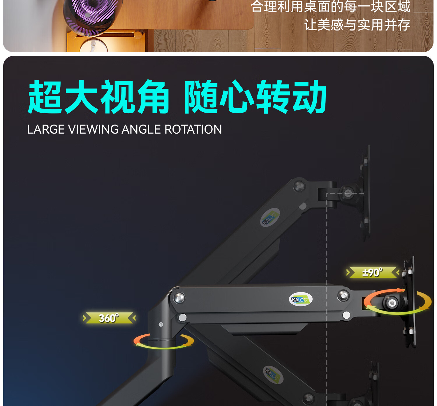 卡洛奇(kaloc)笔记本支架臂双屏 显示器支架 机械臂 电脑显示屏幕支架 笔记本电脑升降增高架 电脑支架散热器