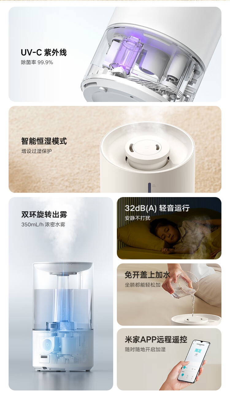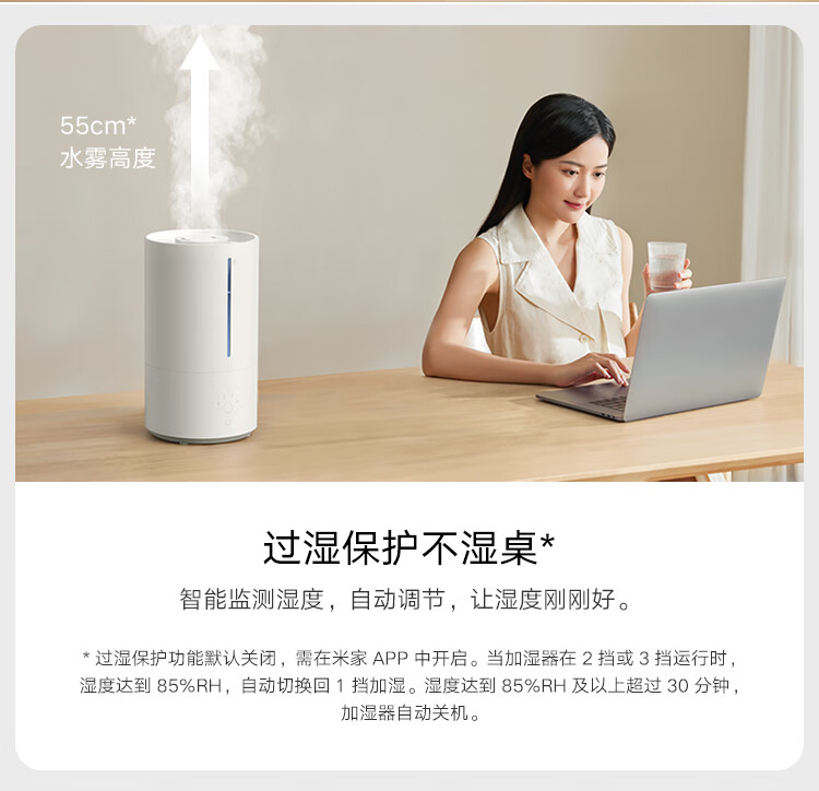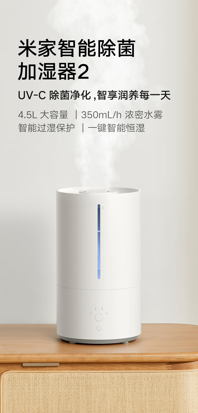 米家小米智能除菌加湿器2加湿器卧室轻音杀菌孕妇婴儿智能恒湿上加水 4.5L大容量MJJSQ05DY