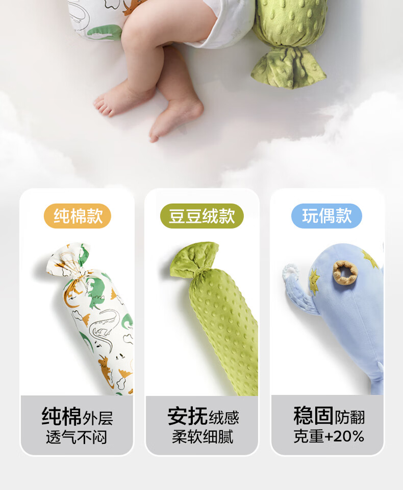 babycare婴儿糖果安抚枕宝宝多功能哄睡抱枕侧睡靠背档枕 绿茶椰果12*40CM