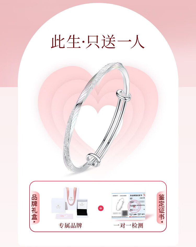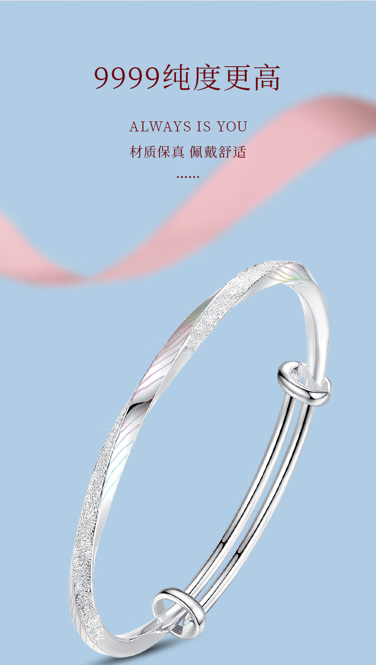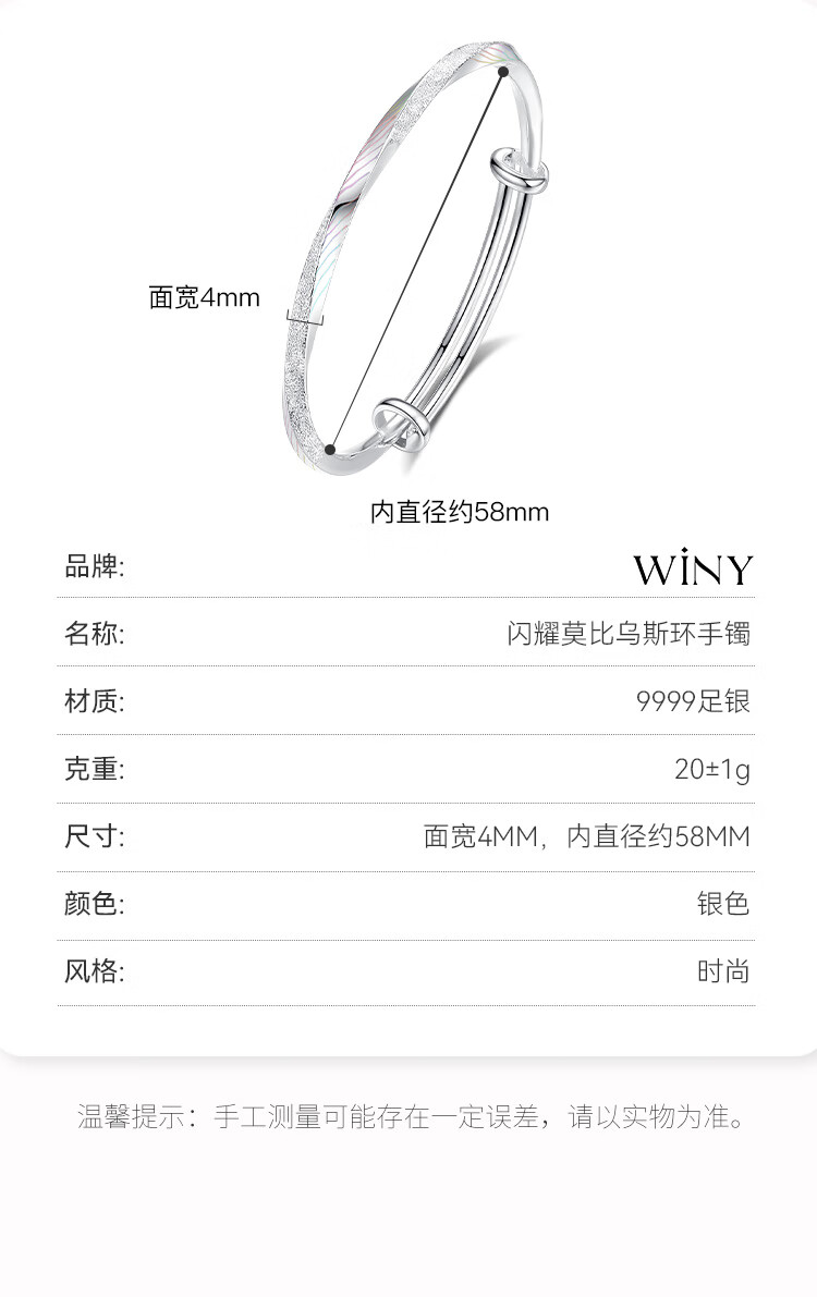 唯一(Winy)银手镯足银9999莫比乌斯镯子纯银饰品妈妈生日礼物送女友老婆款