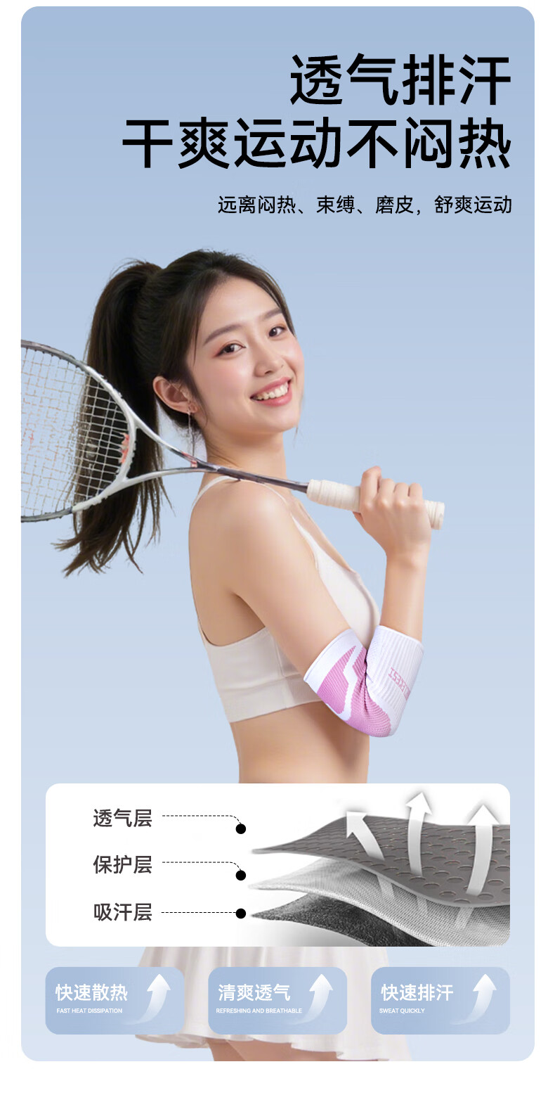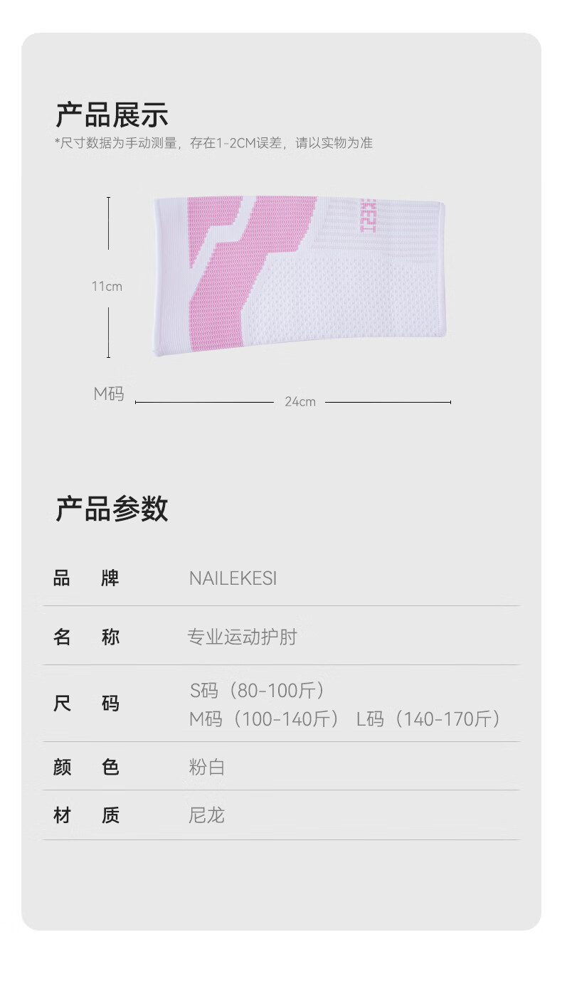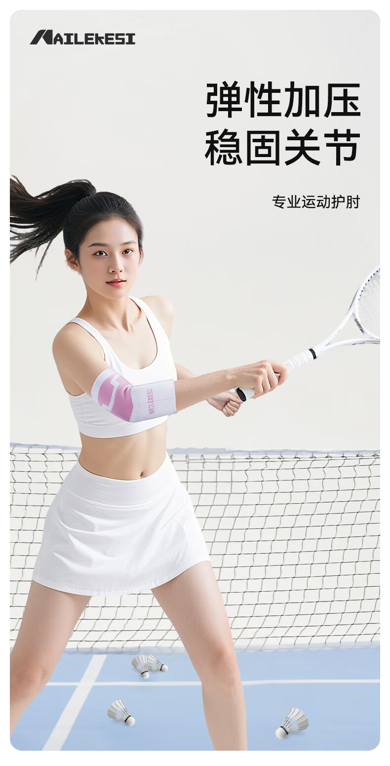 耐力克斯(NAILEKESI N)运动护肘关节保护套女健身卧推篮球羽毛球透气护臂网球肘薄护具S