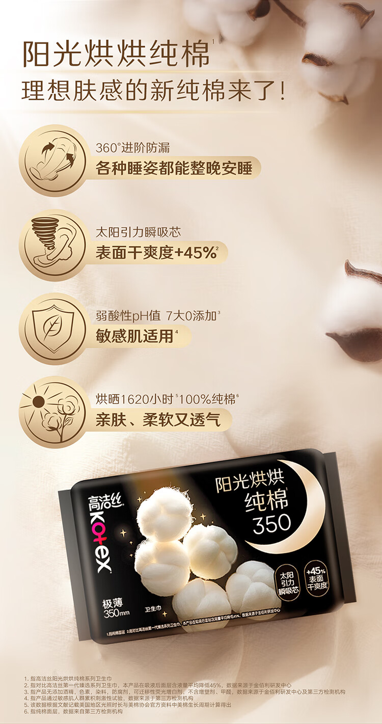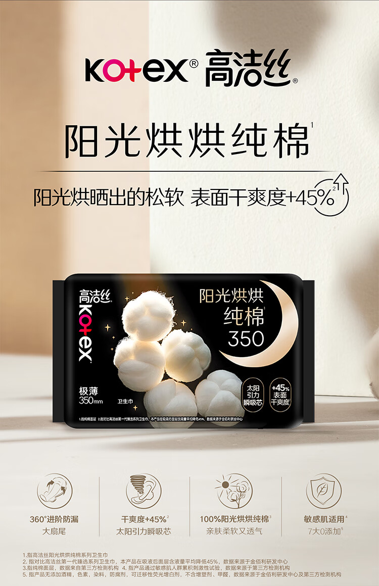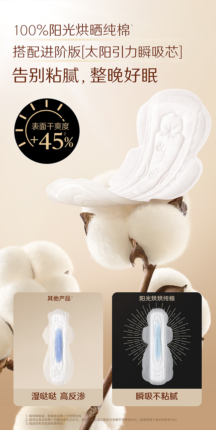 高洁丝【纯棉NO.1】阳光烘烘卫生巾350mm10片夜用姨妈巾京东自营旗舰