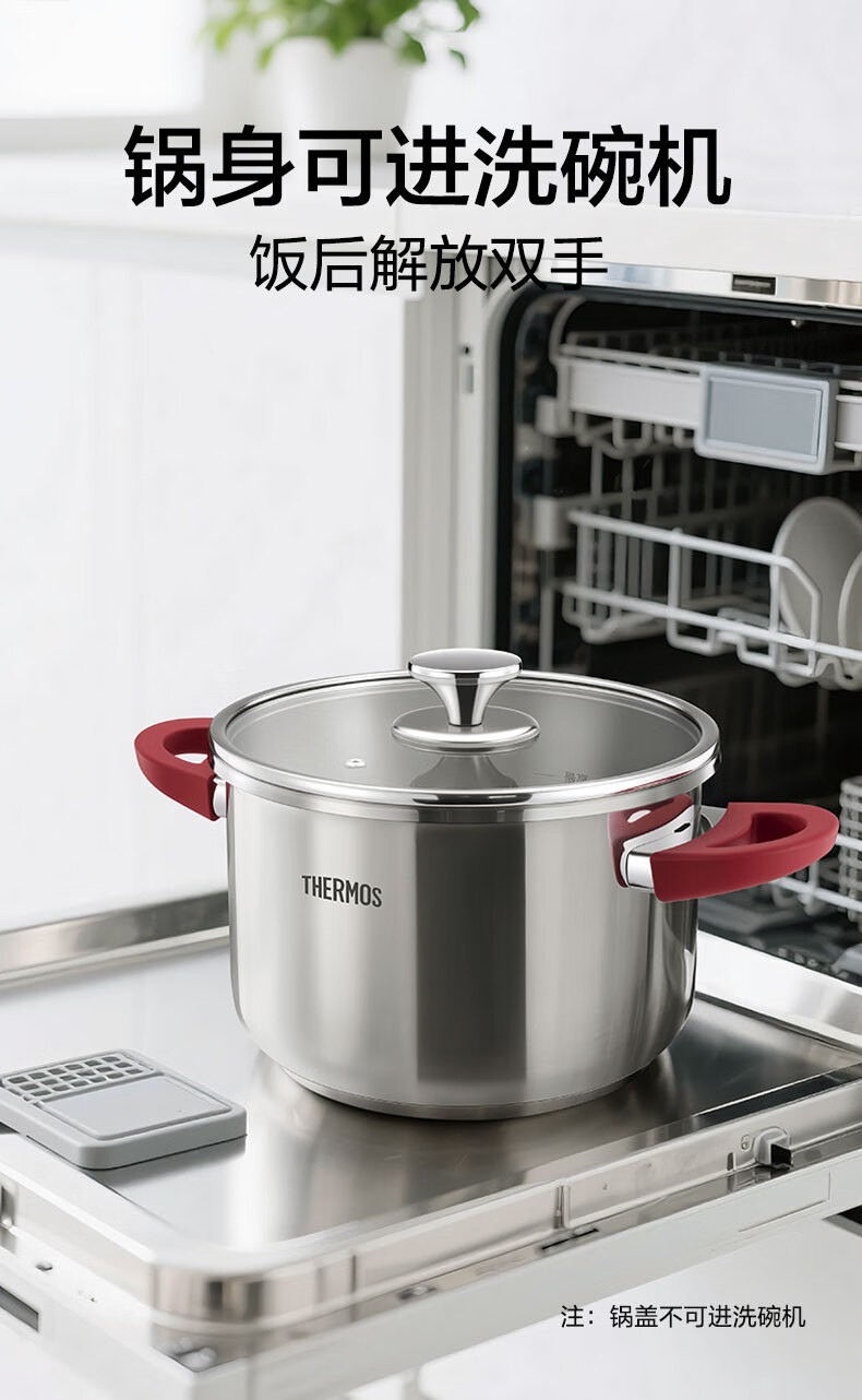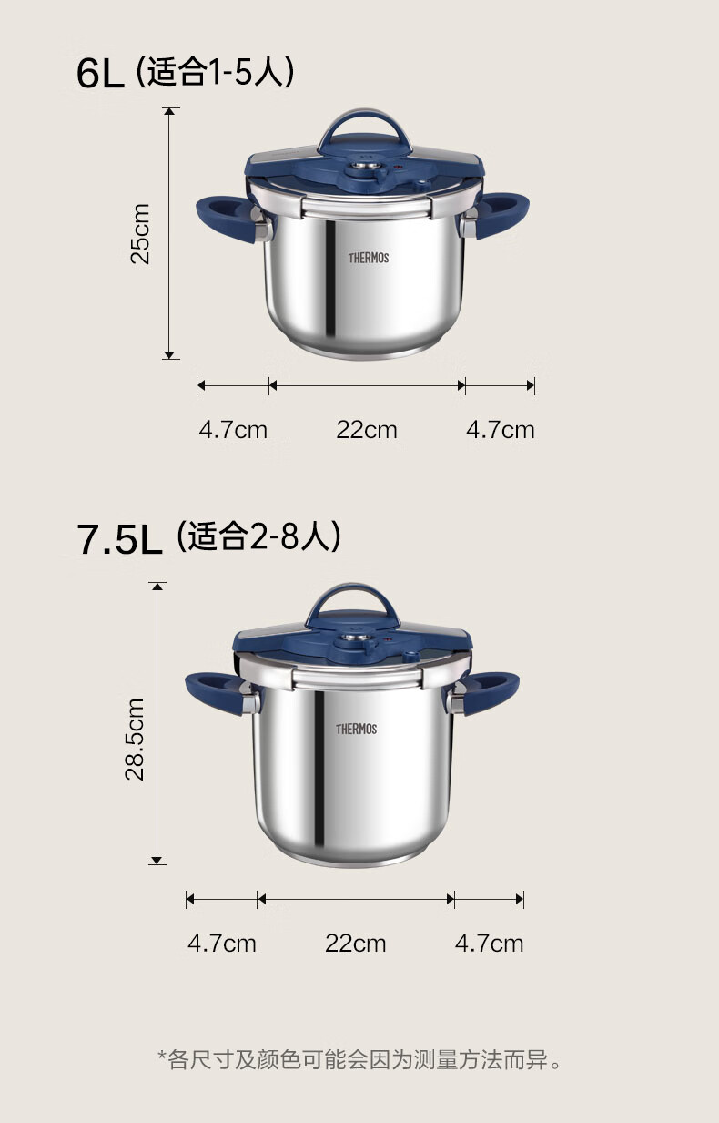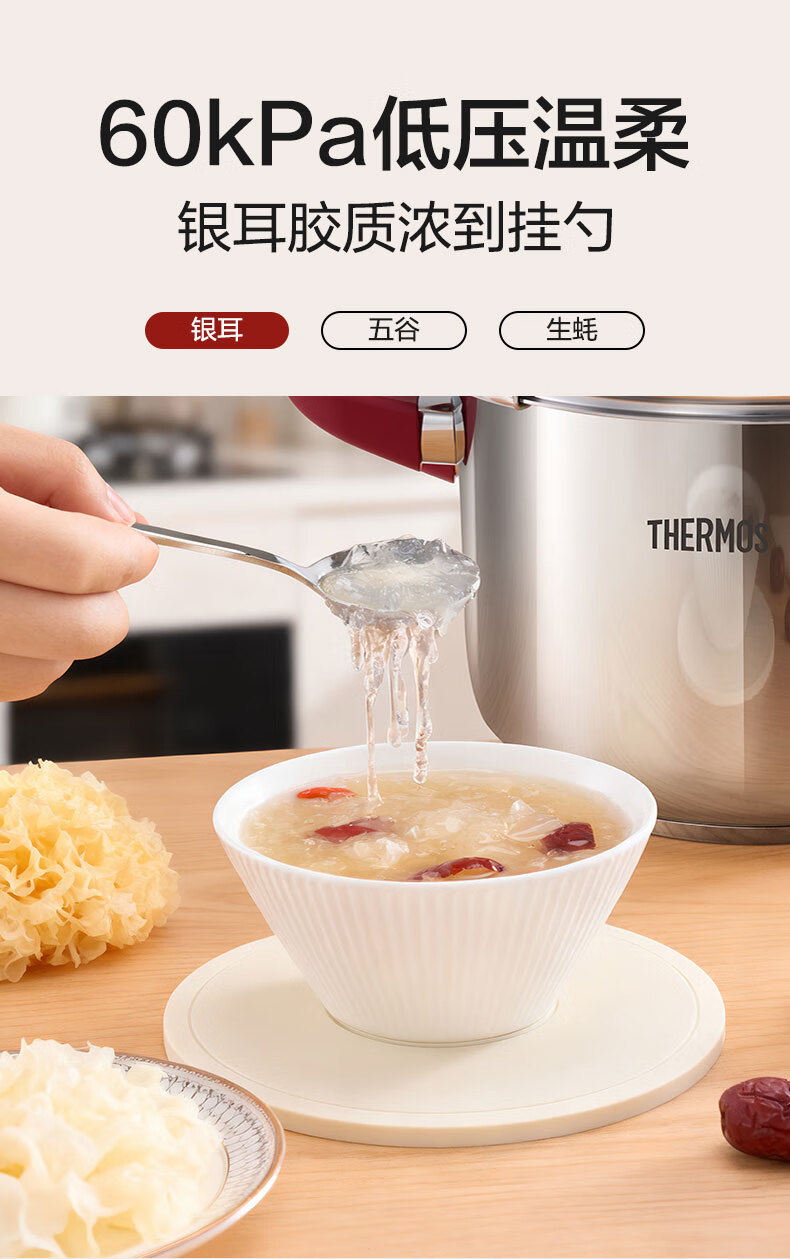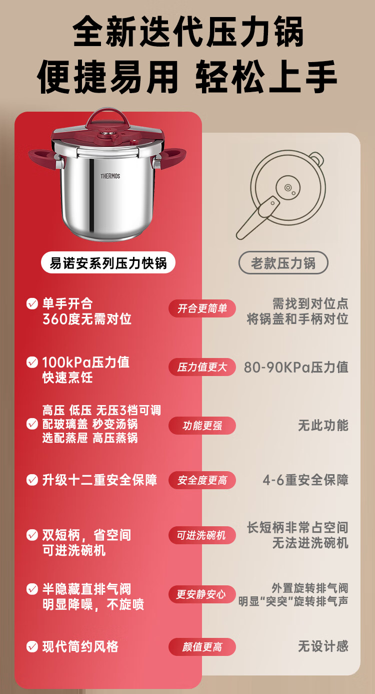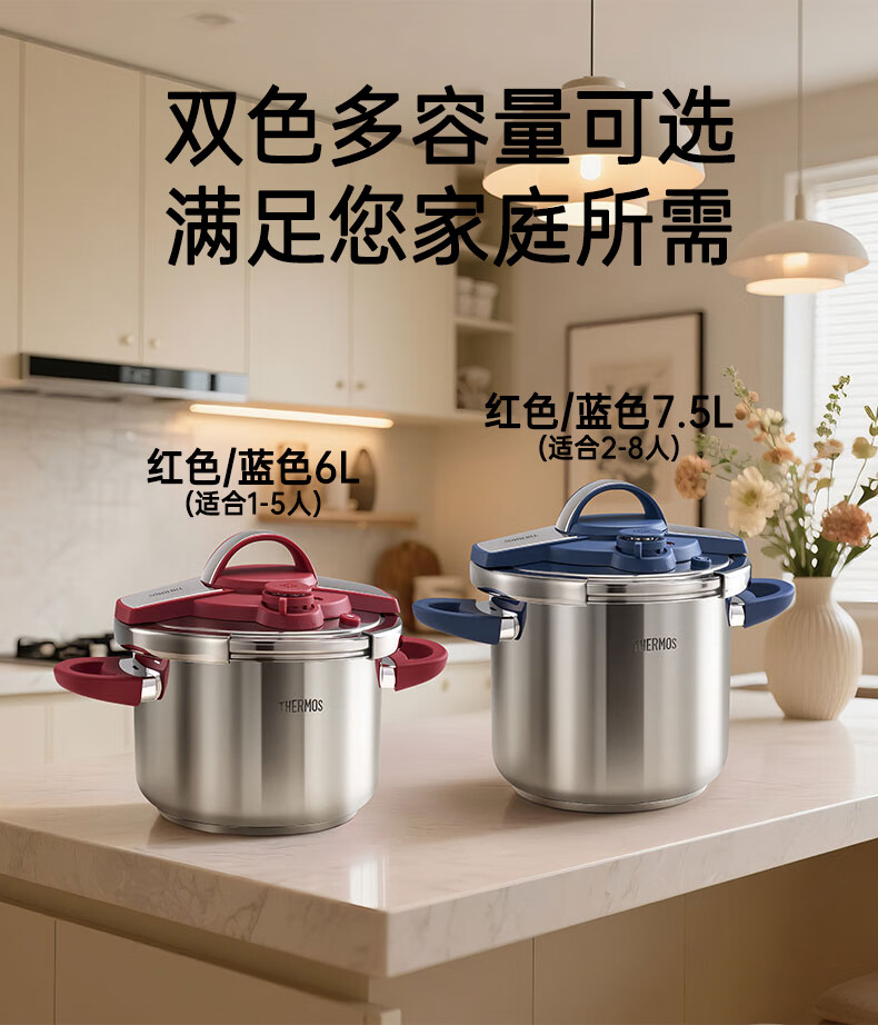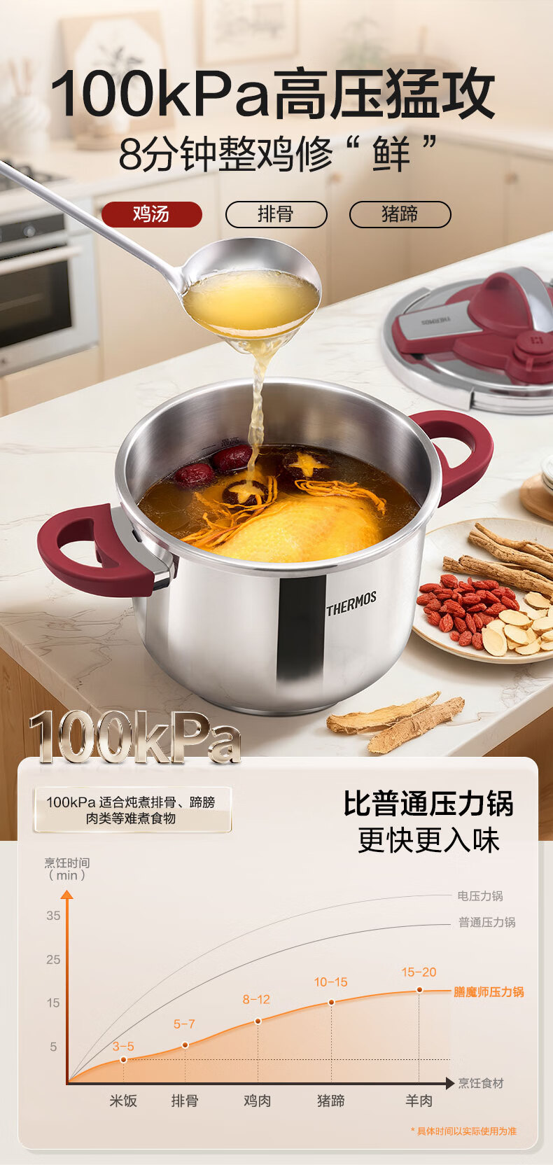 膳魔师高压锅100KPa不锈钢炖煮压力快锅单手开合大汤锅防爆电磁炉燃气灶 勃艮第红-1-5人 22cm 6L