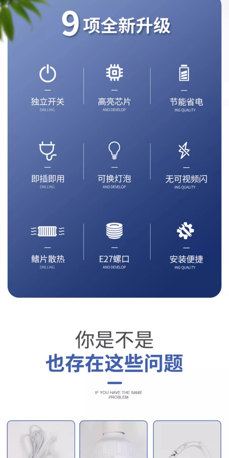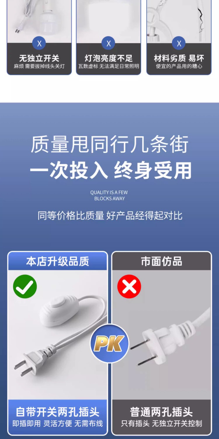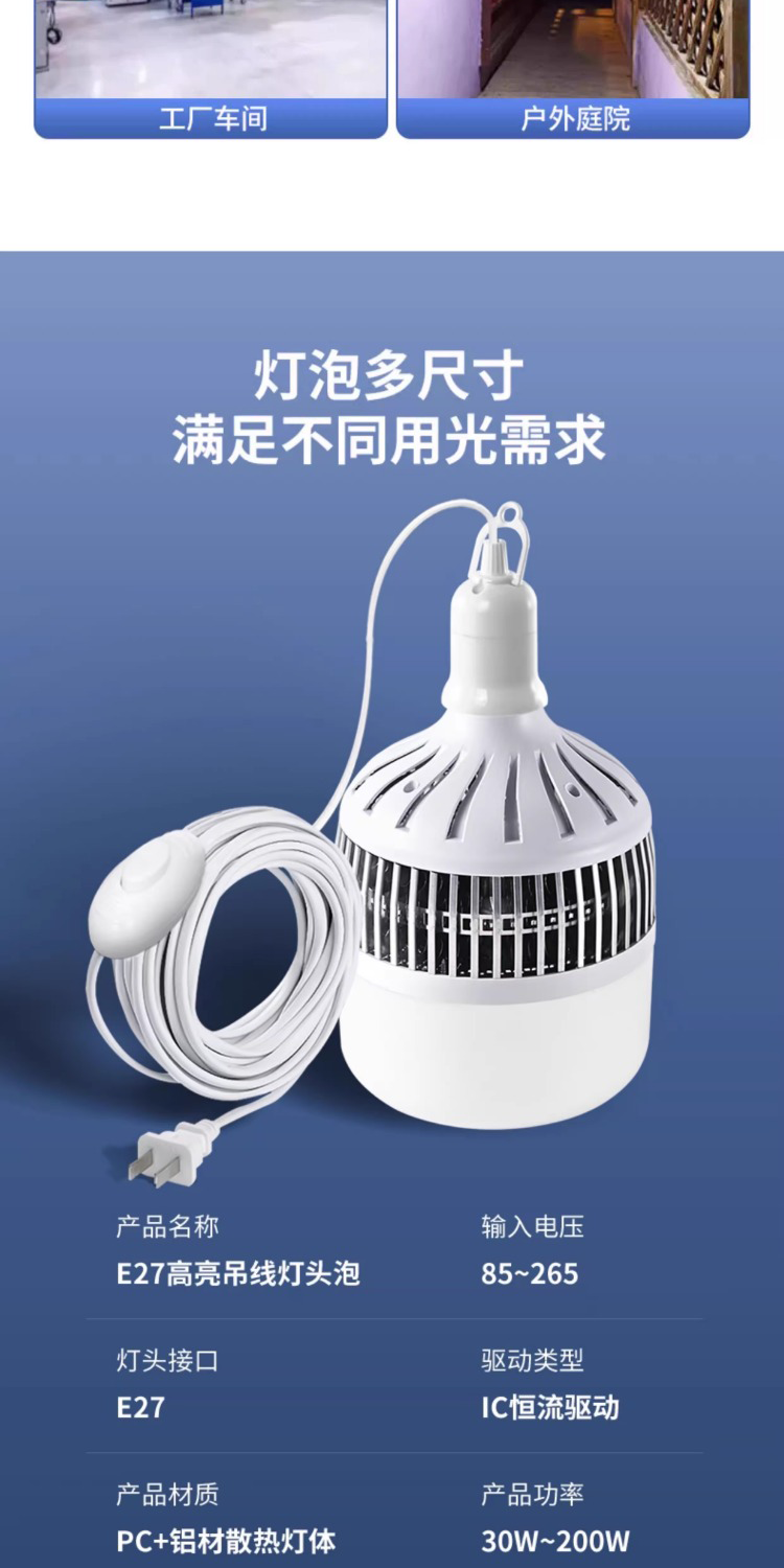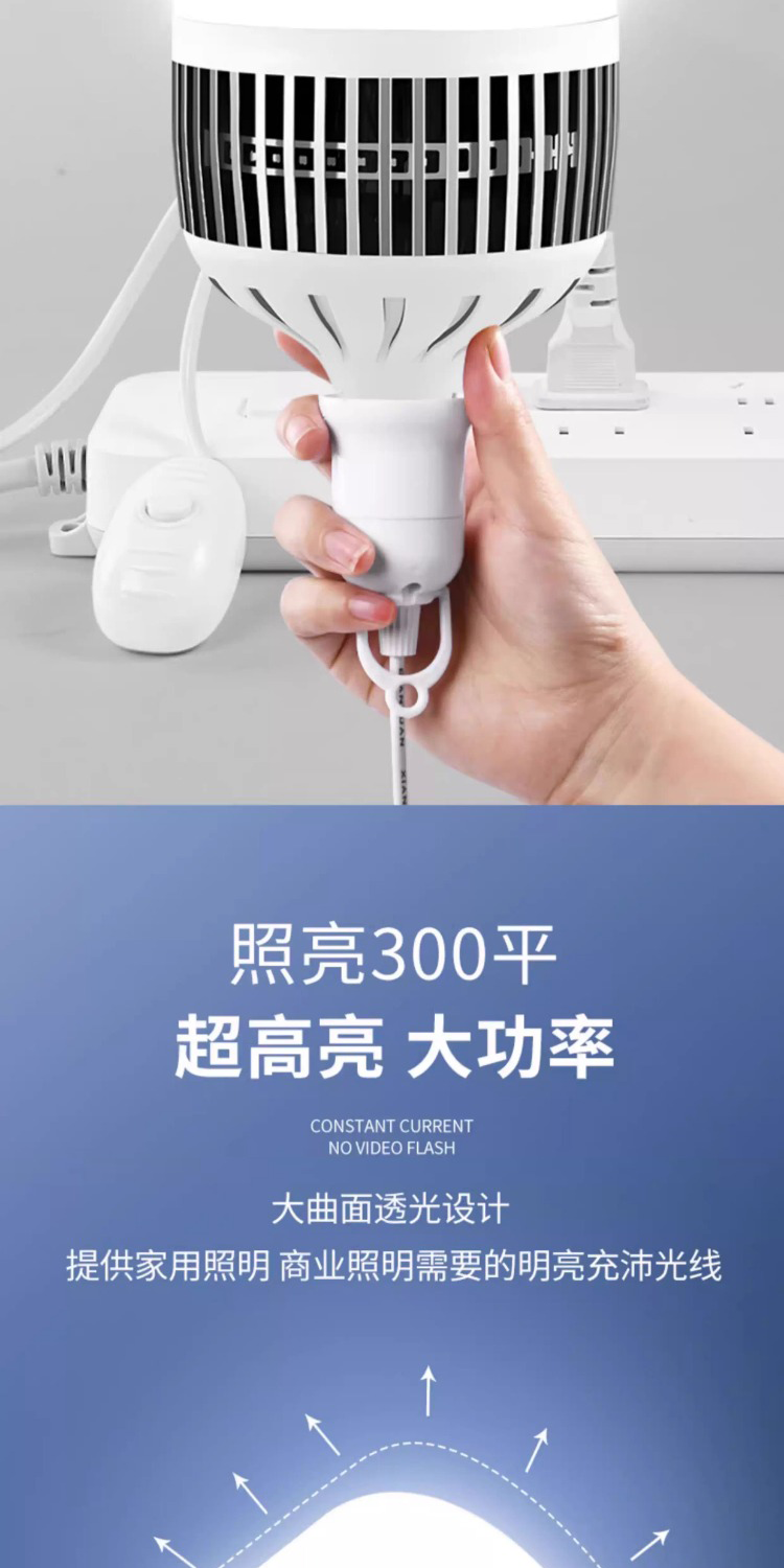 振牛家用led带线灯泡e27螺口插电式节能超亮户外照明灯插头插座带开关 200W大功率灯泡+8m线 E27螺口+送挂钩