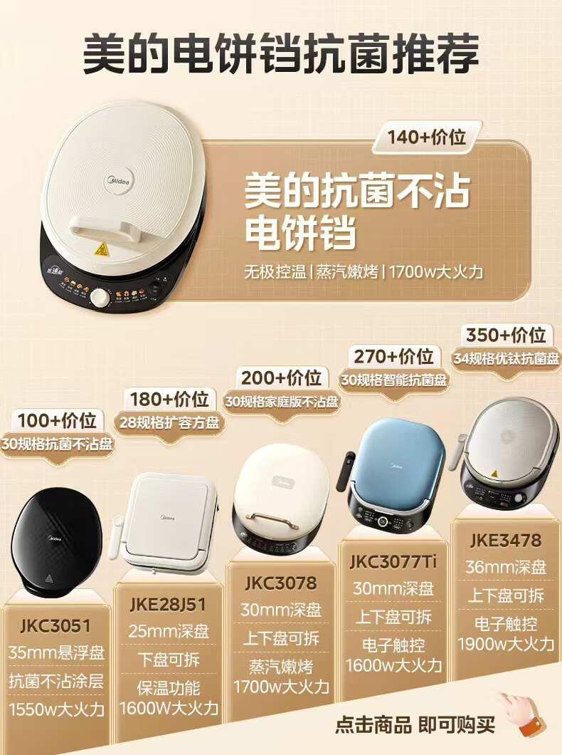 美的(Midea)电饼铛 电饼档 家用双面加热煎烤机烙饼专用锅 加大加深三明治机早餐机大尺寸烤肉抗菌电煎锅30J58