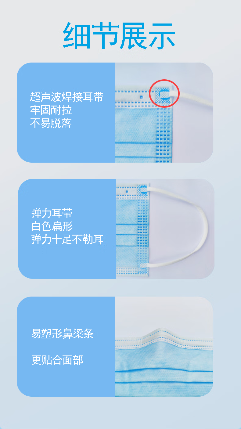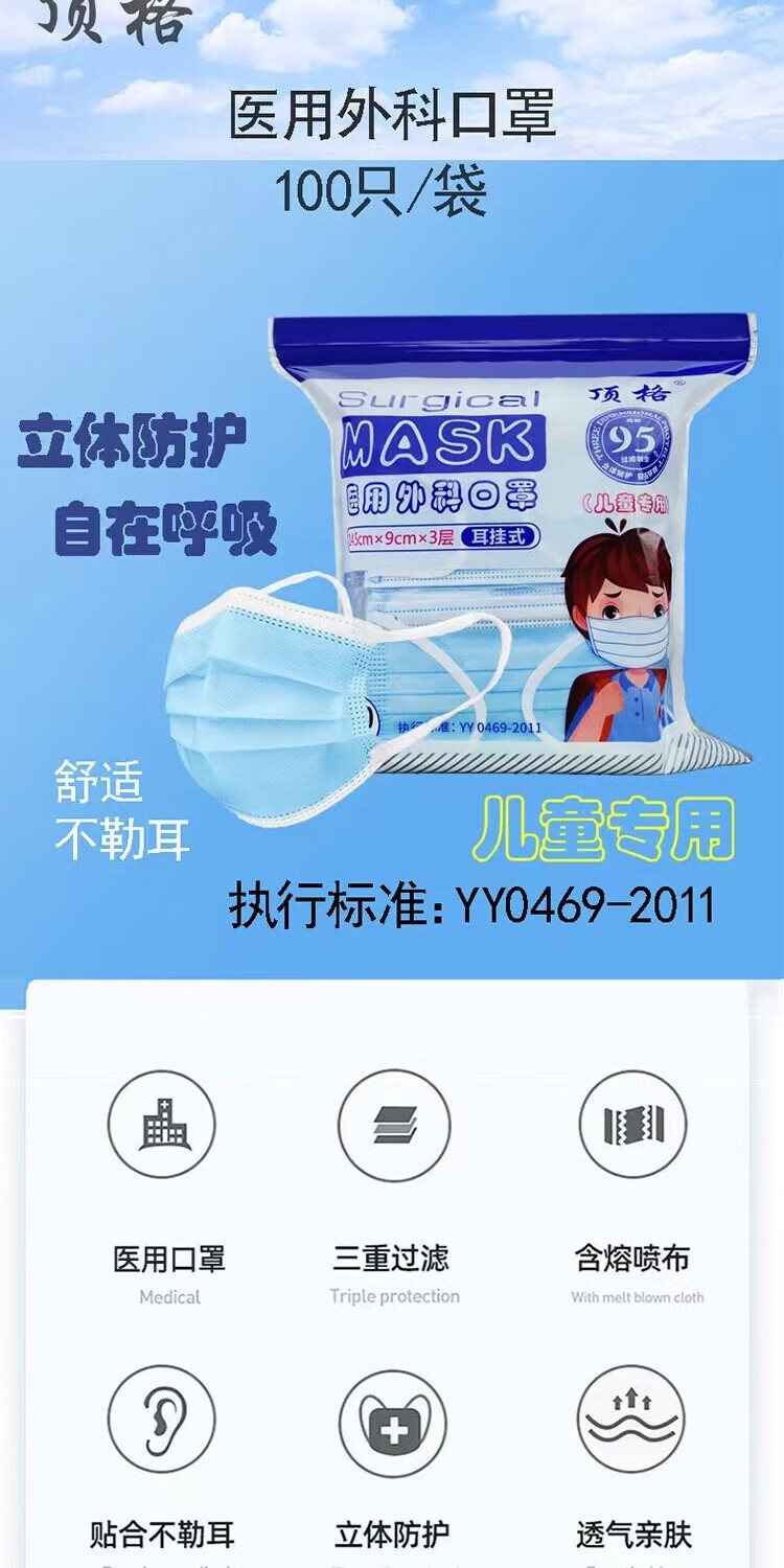顶格医用外科儿童口罩一次性独立包装医用口罩三层过滤亲肤透气不勒耳 蓝色 儿童款100只【独立包装】