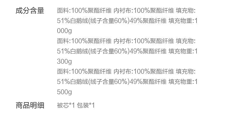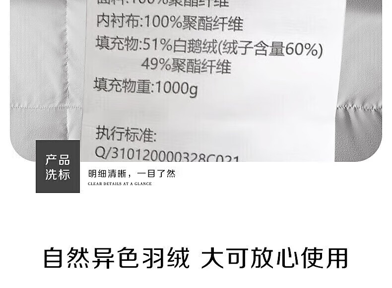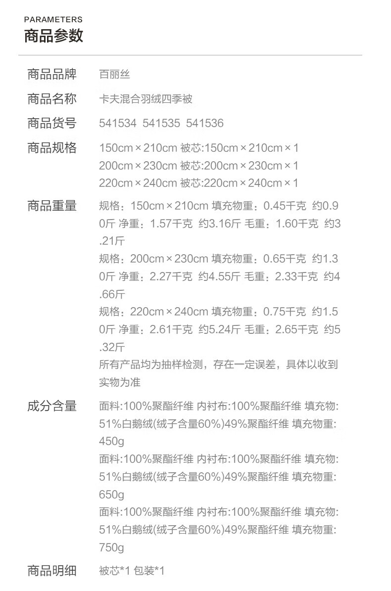 百丽丝被子混合羽绒鹅绒蓬松保暖四季被家用冬季被子加厚 混合羽绒四季被 200cm×230cm