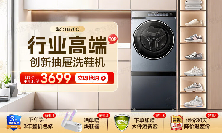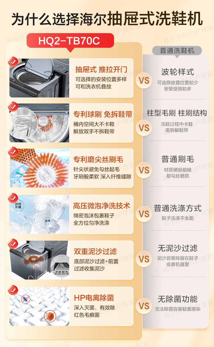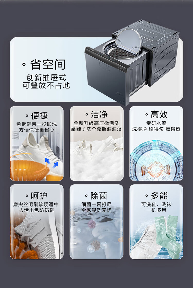 海尔(Haier)洗鞋机全自动家用抽屉式球刷洗鞋机嵌入高端智能护理机磨尖丝可拆卸毛刷新品洗鞋护鞋面电离除菌 【创新抽屉式球刷洗鞋机】极夜灰TB70C