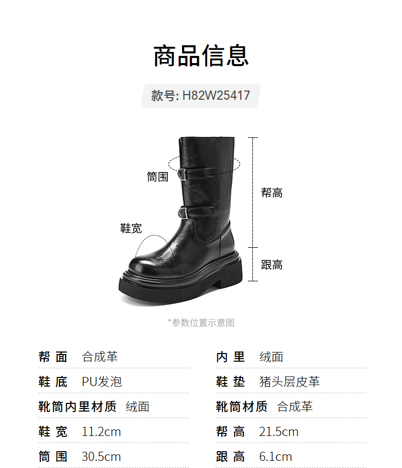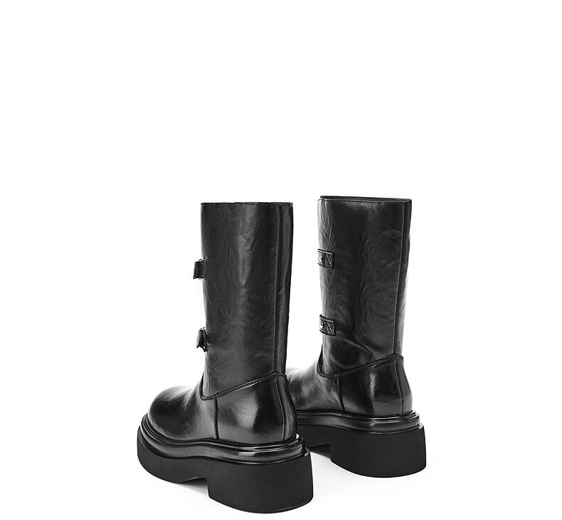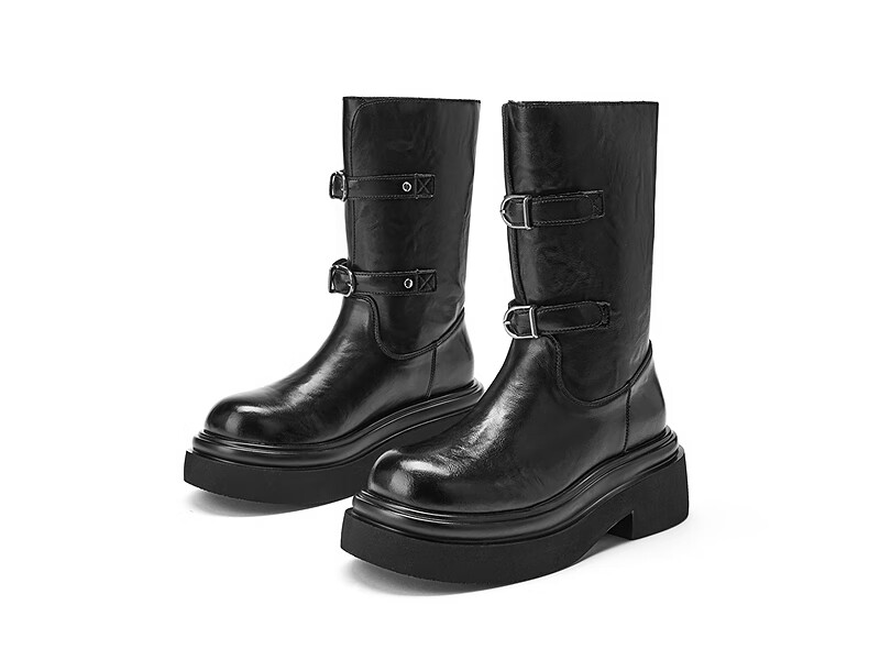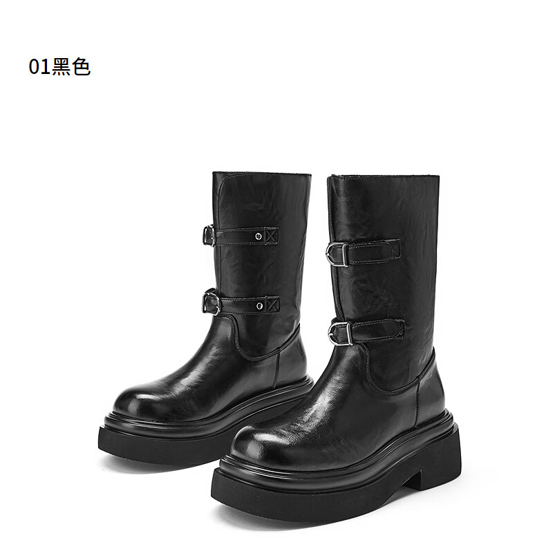 热风厚底时装靴女2025年冬季新款增高中筒骑士靴黑色马丁靴子女鞋 01黑色 39