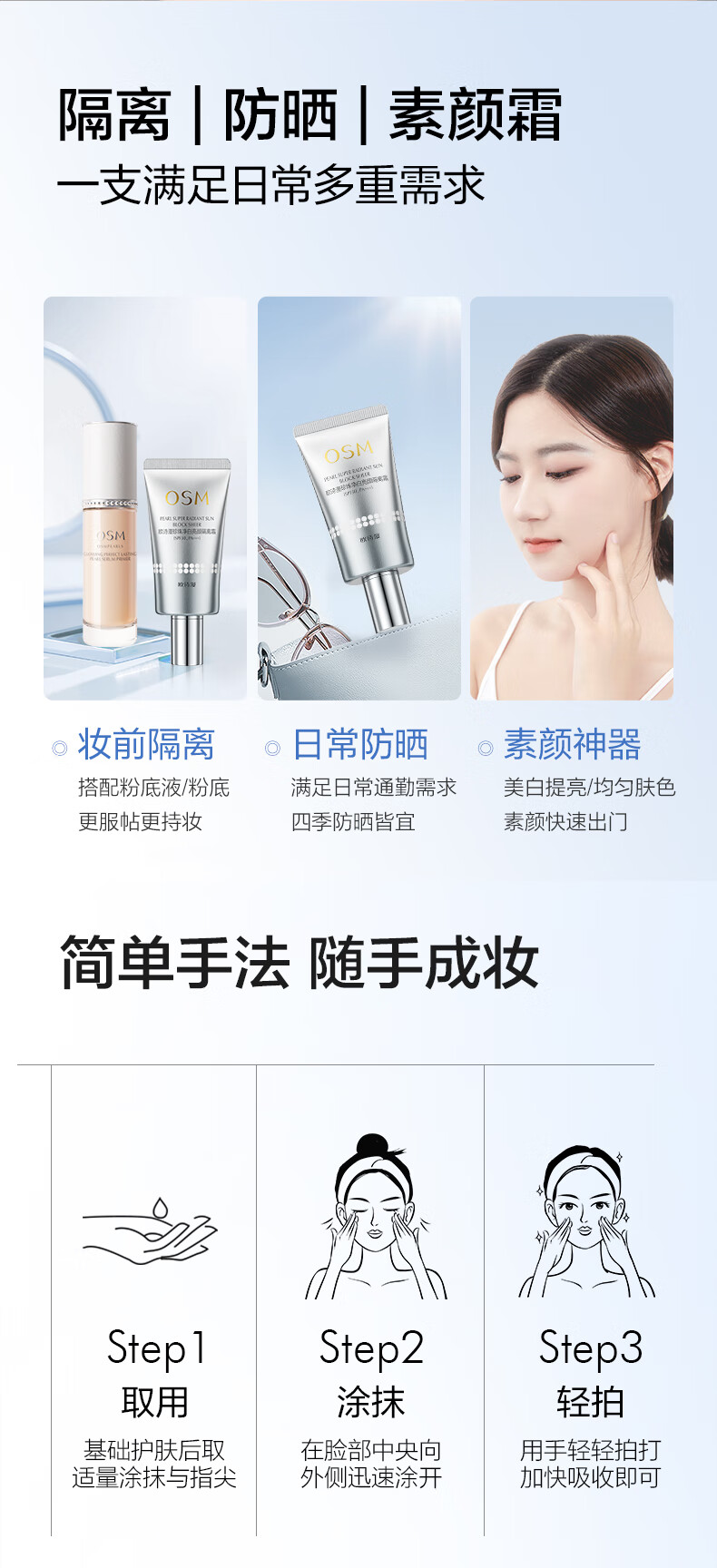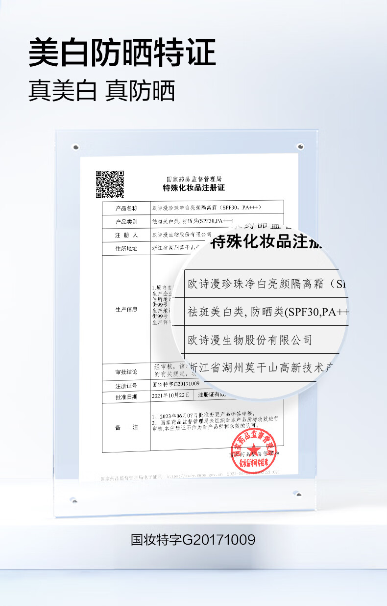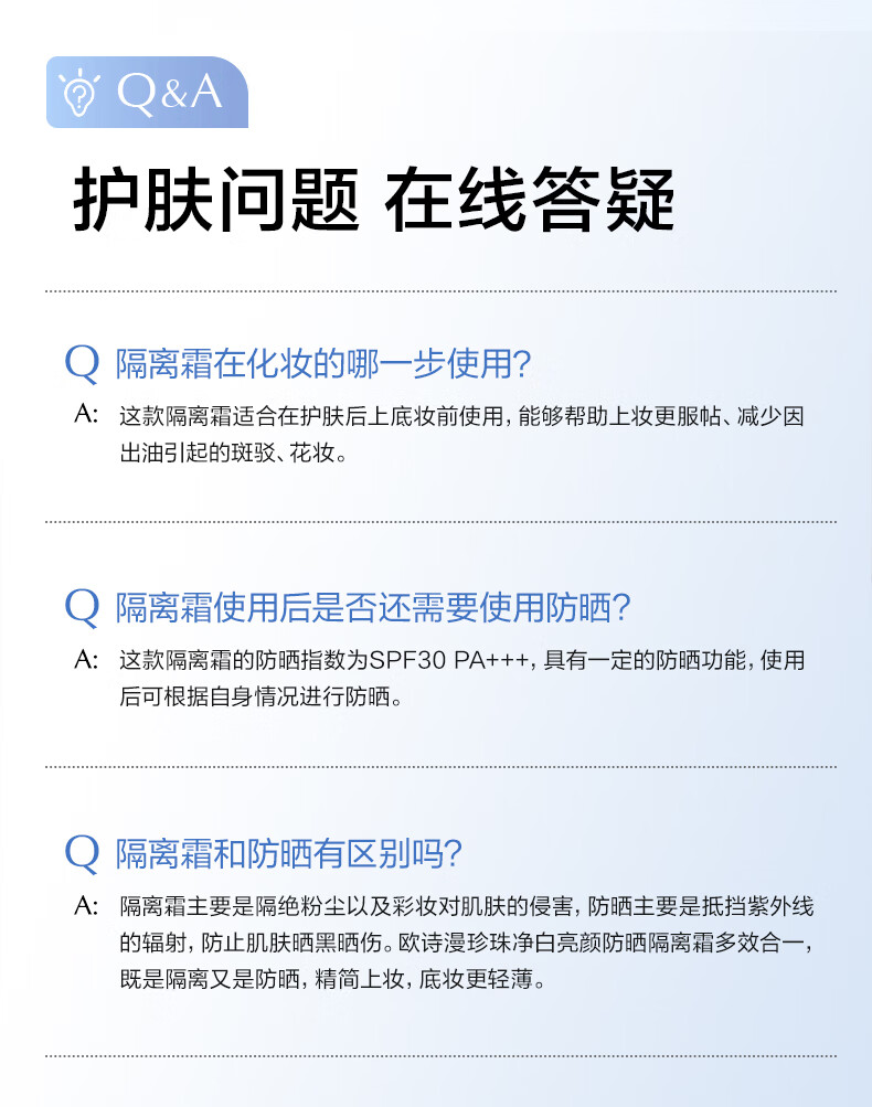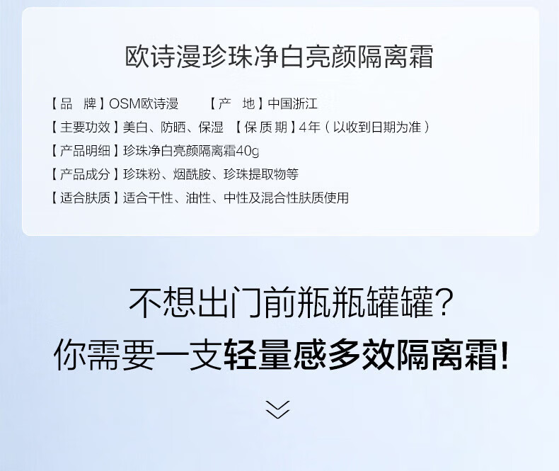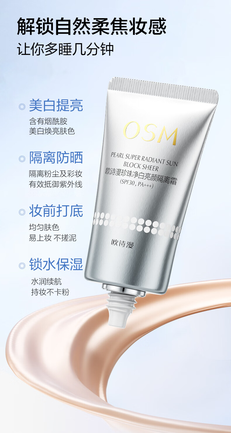 欧诗漫(OSM)亮颜隔离霜提亮肤色遮瑕持久女40g(SPF30,PA+++) 中秋礼物