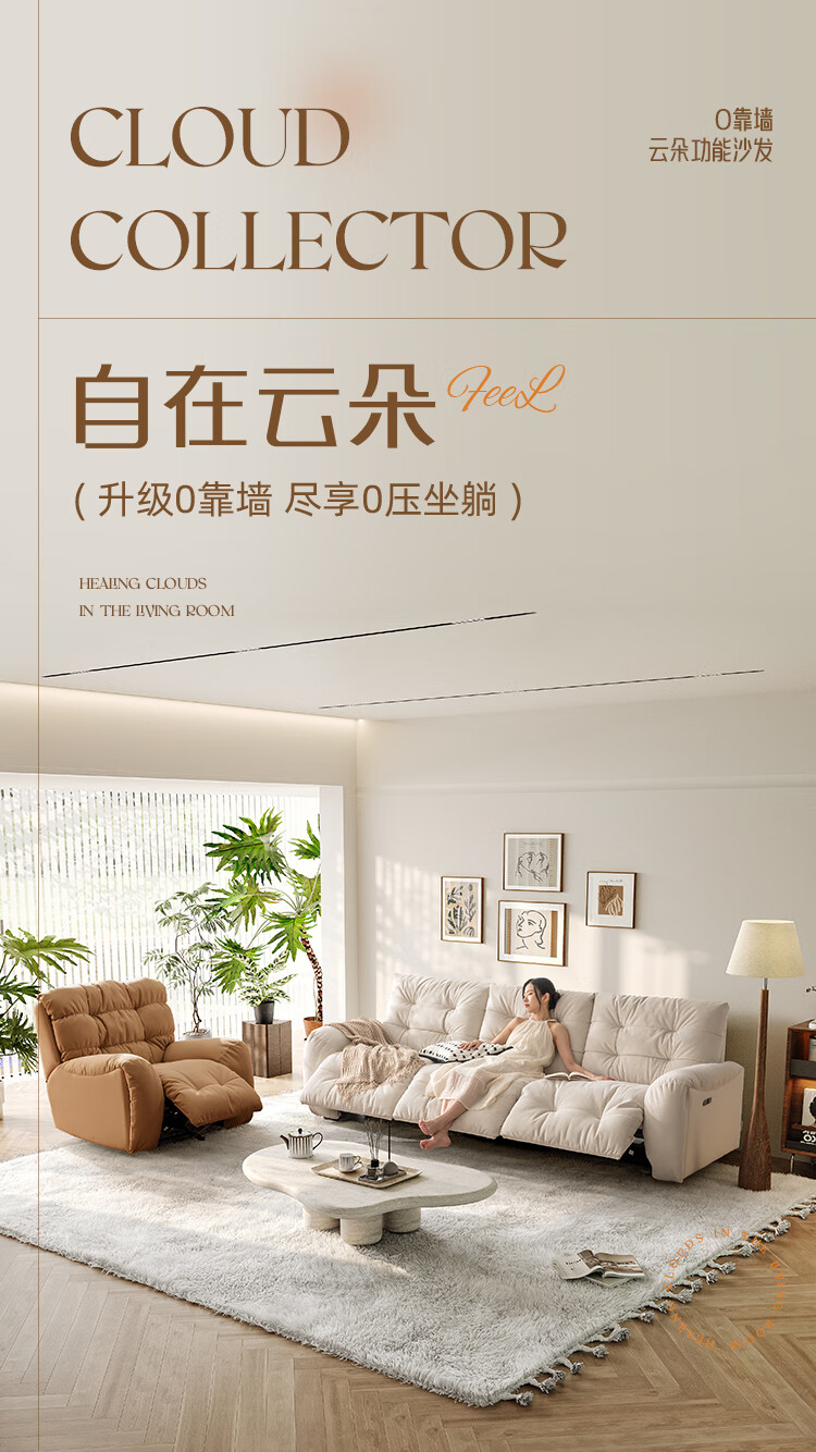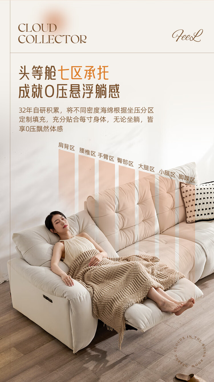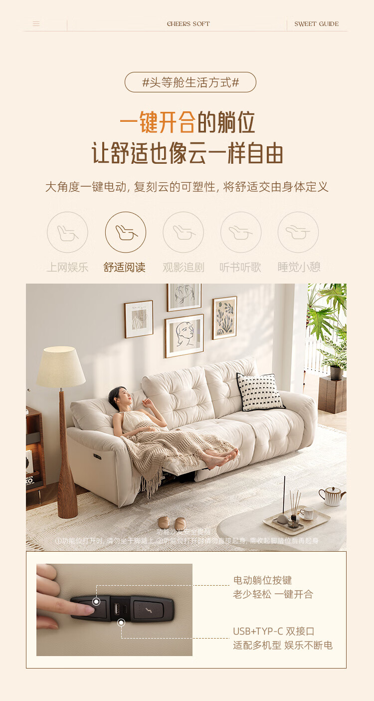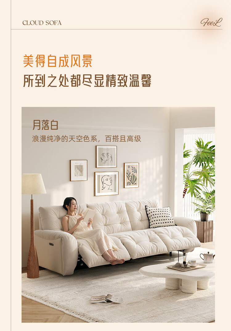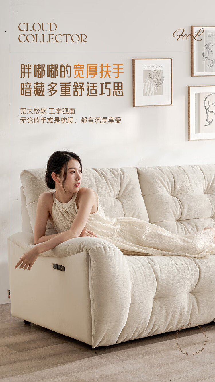 芝华仕(CHEERS)头等舱电动功能沙发客厅布艺小户型沙发云朵奶油风芝华士30202