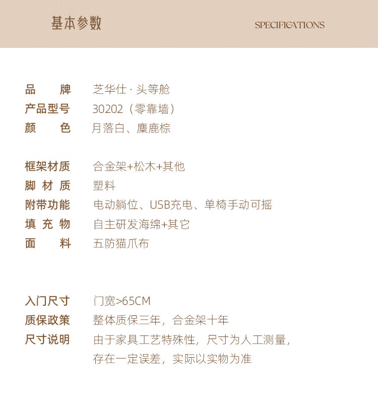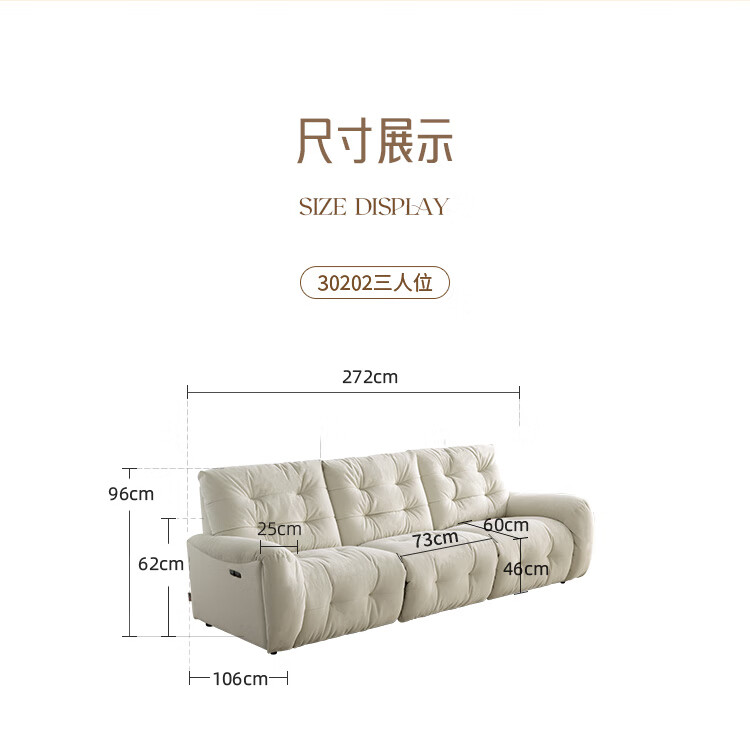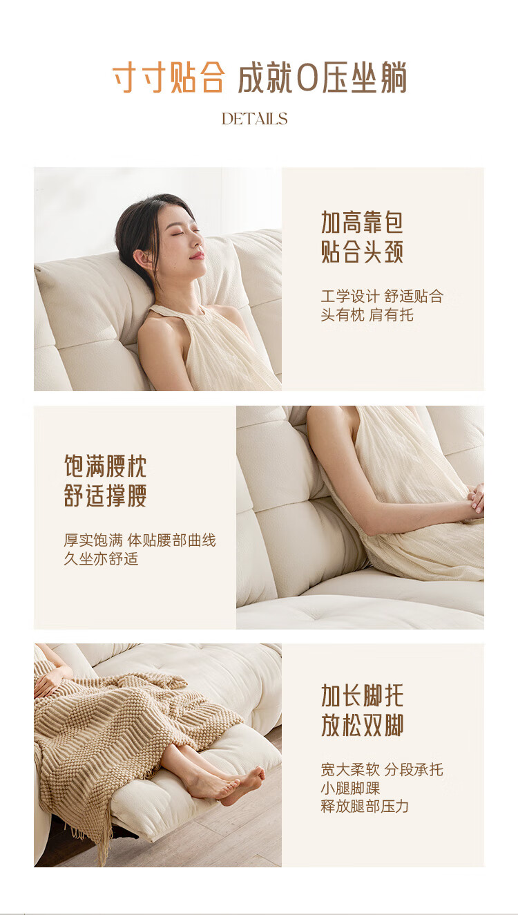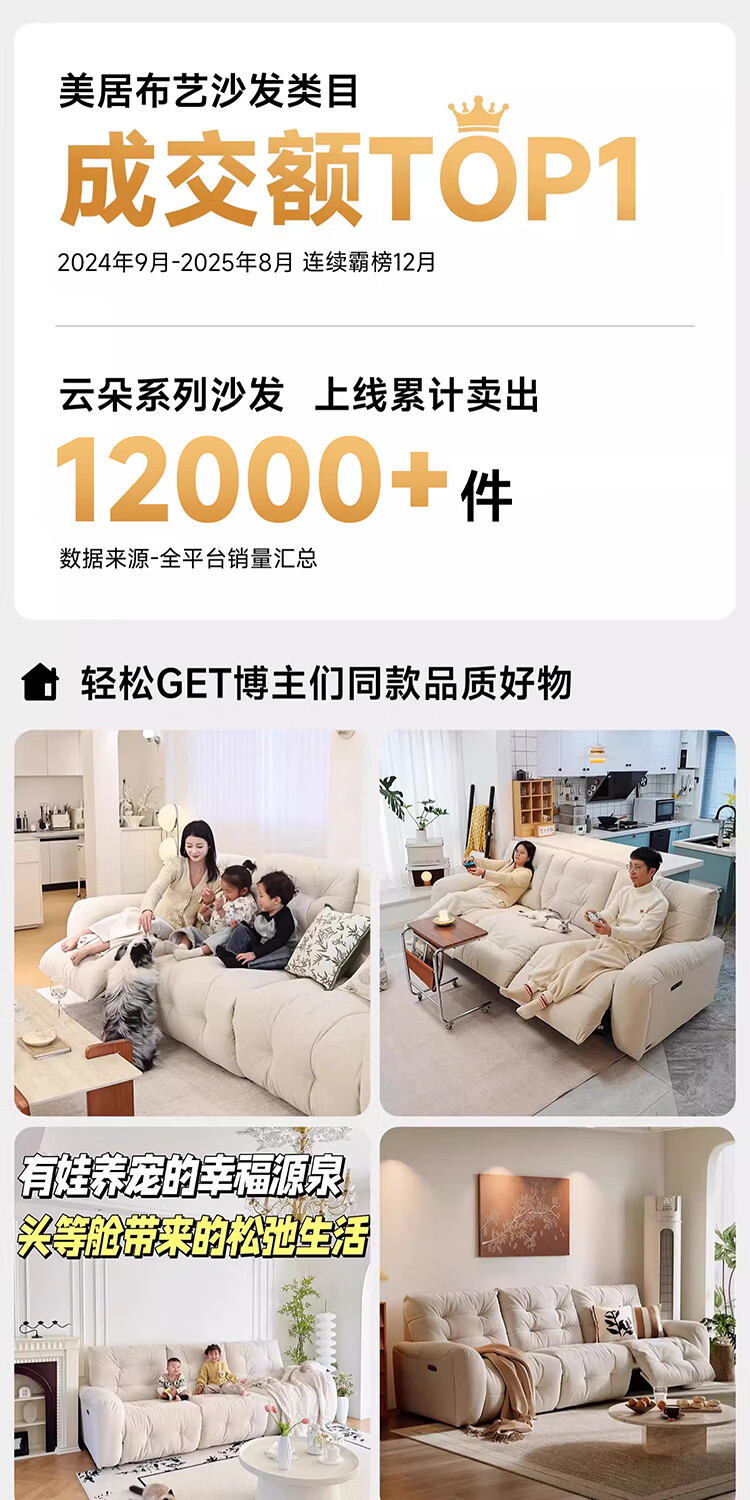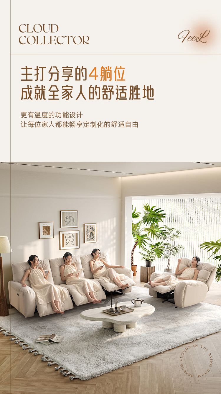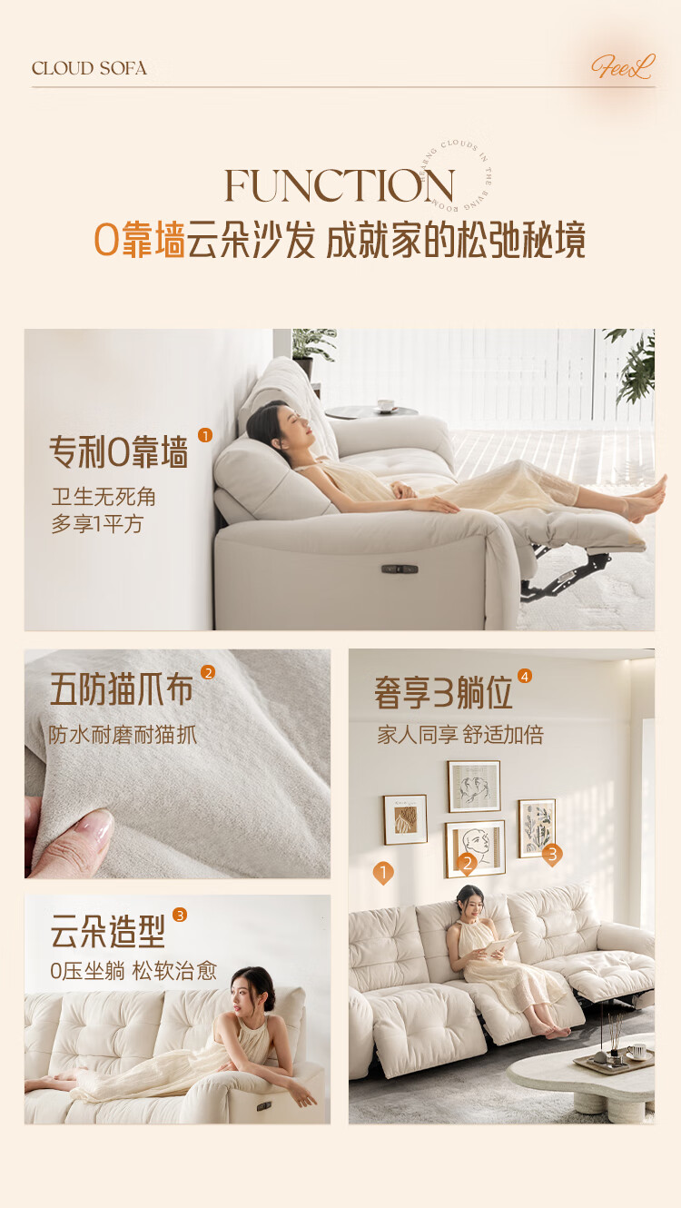 芝华仕(CHEERS)头等舱电动功能沙发客厅布艺小户型沙发云朵奶油风芝华士30202
