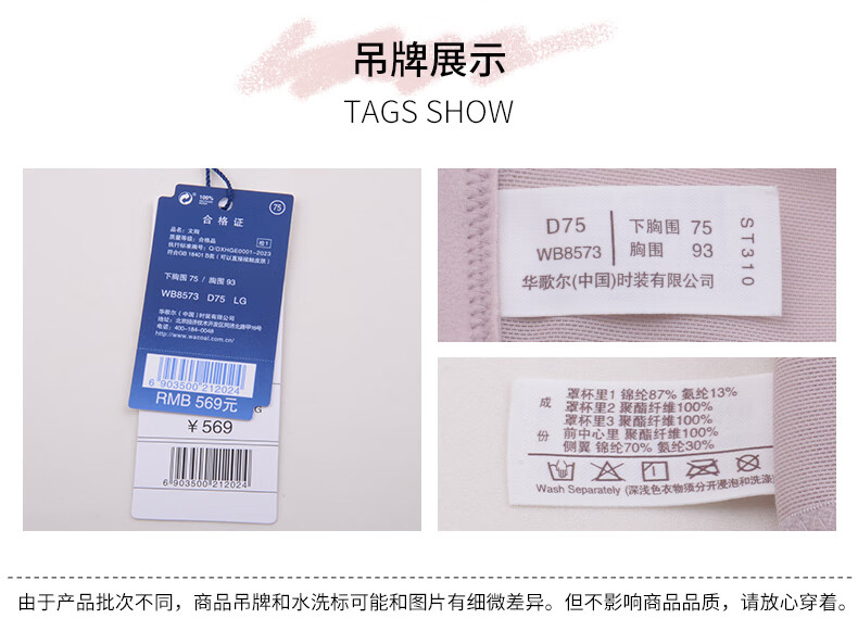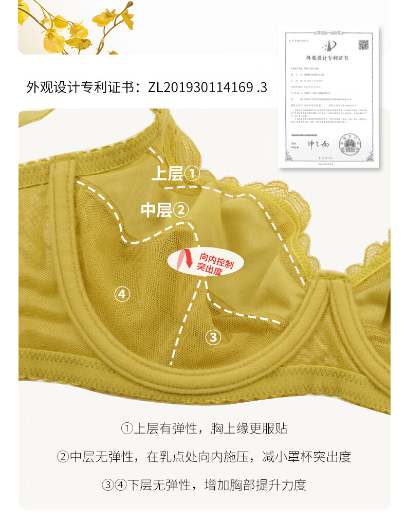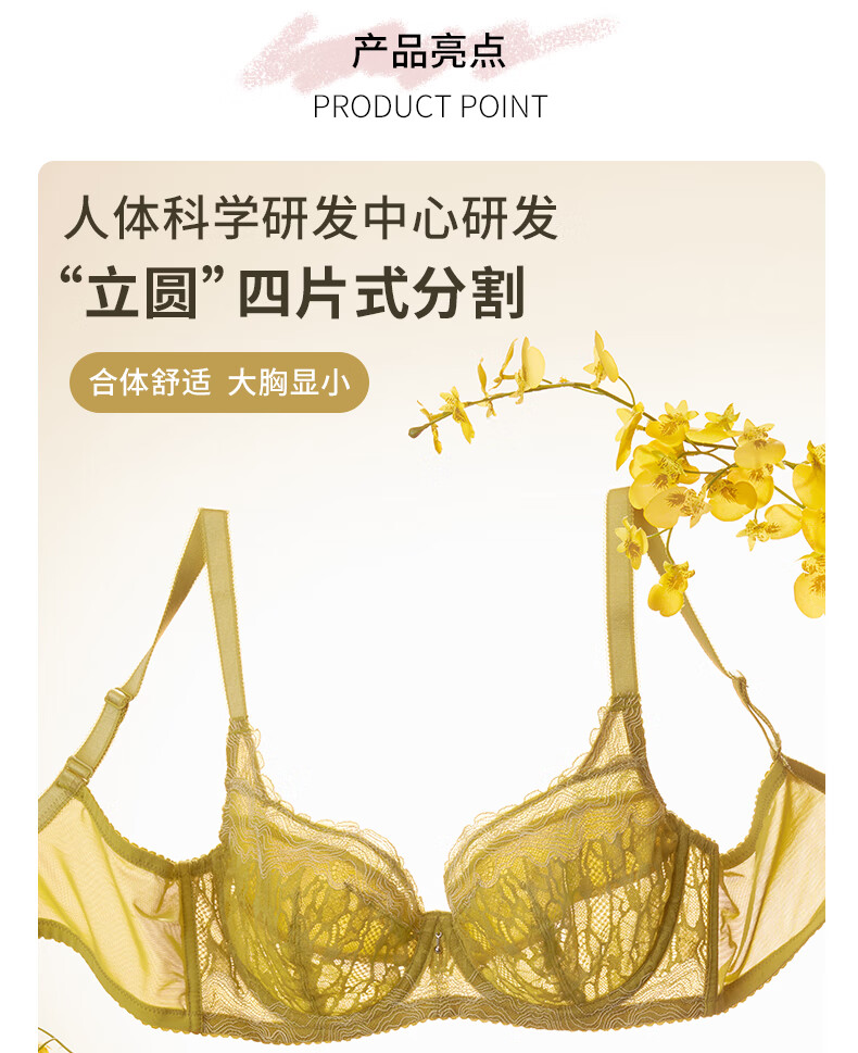 华歌尔薄款蕾丝包容稳定内衣女大胸显小大码文胸WB8573