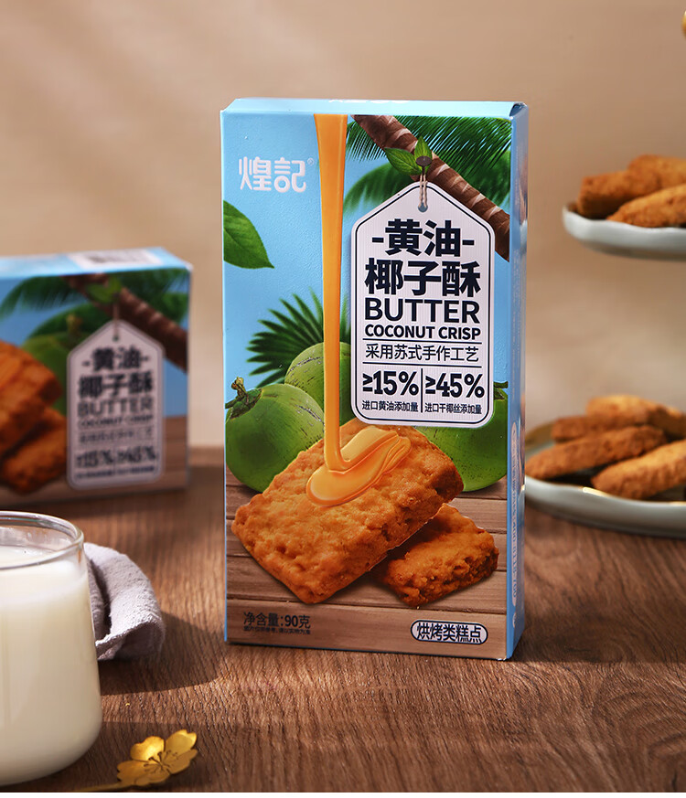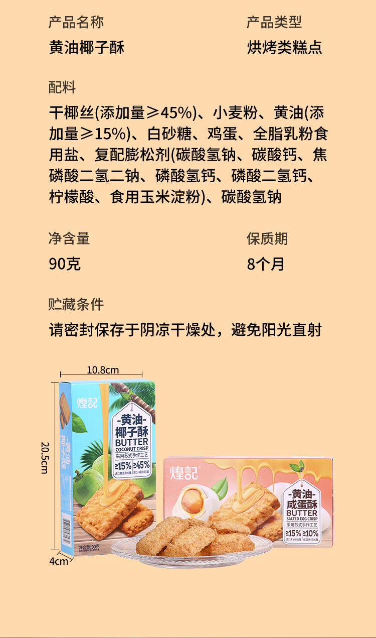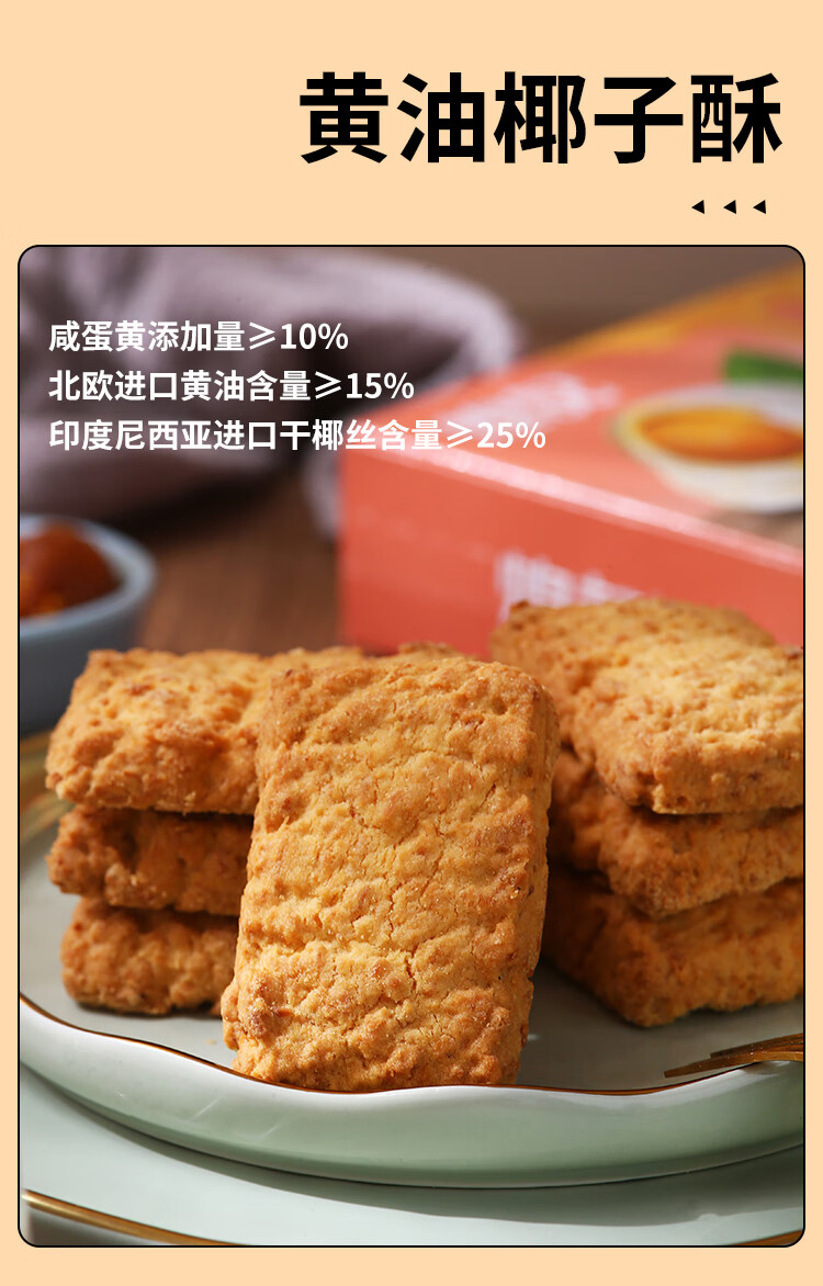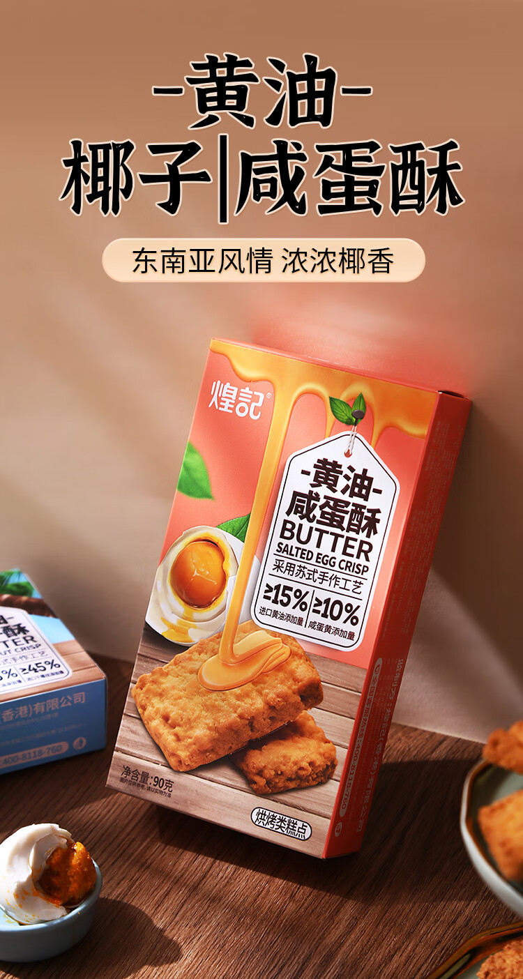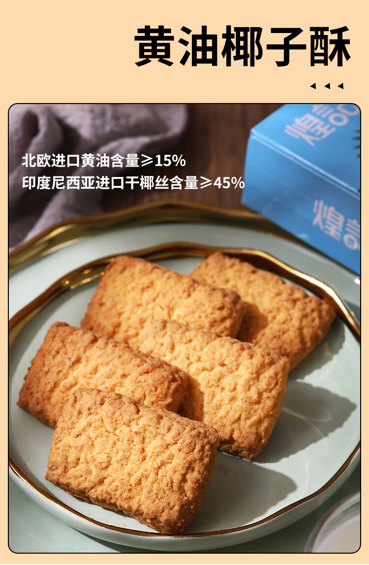煌记黄油酥椰蓉酥椰子孕妇零食咸蛋黄曲奇饼干早餐下午茶糕点心休闲 椰子酥+咸蛋酥+咖啡酥各1盒(270g)