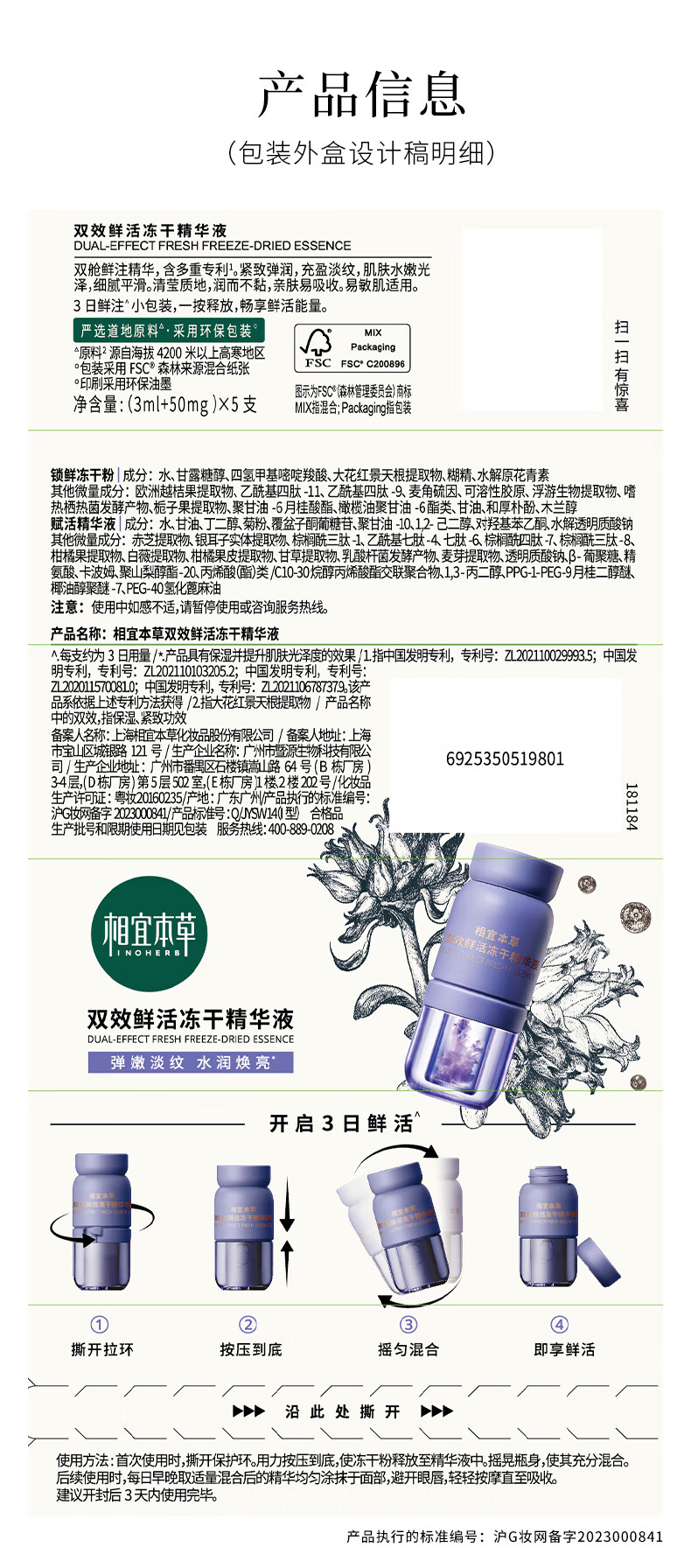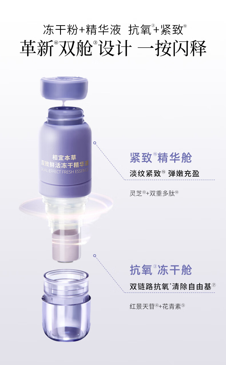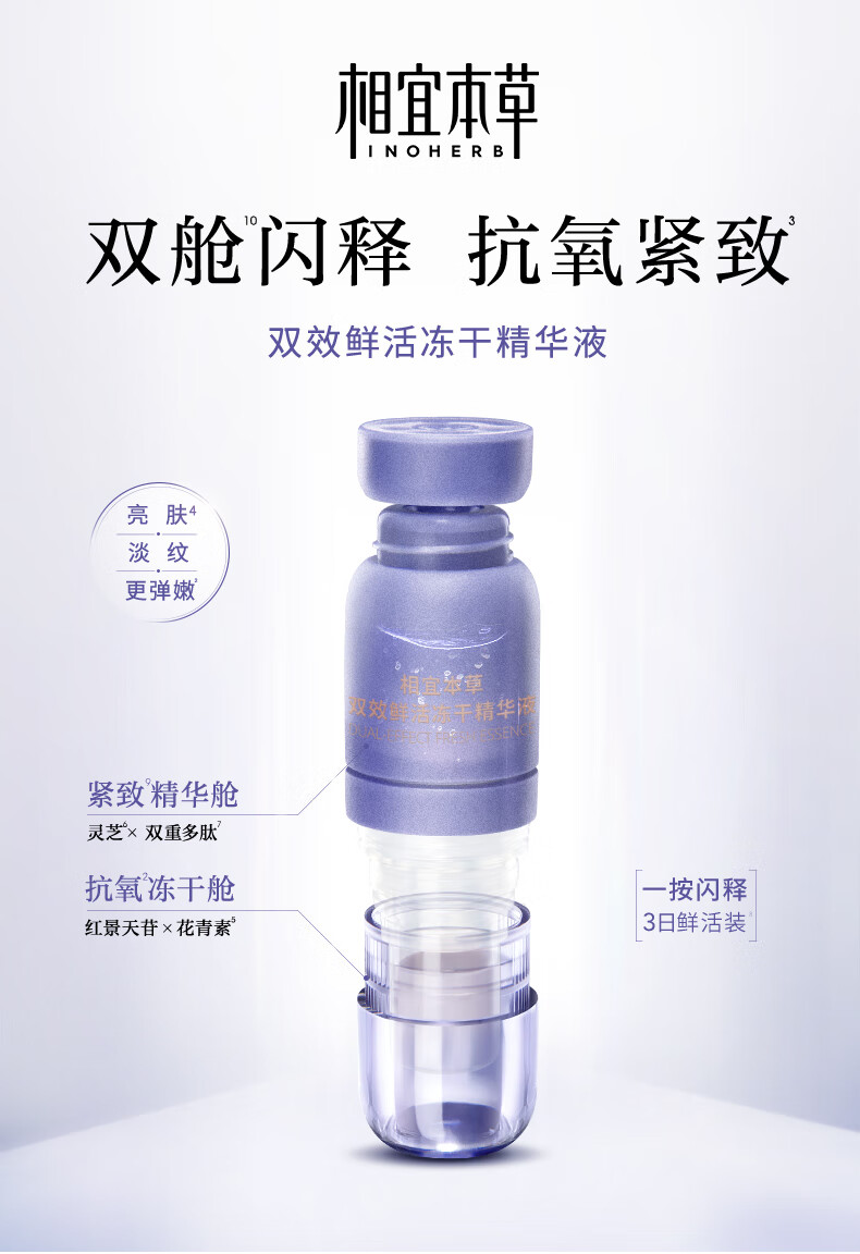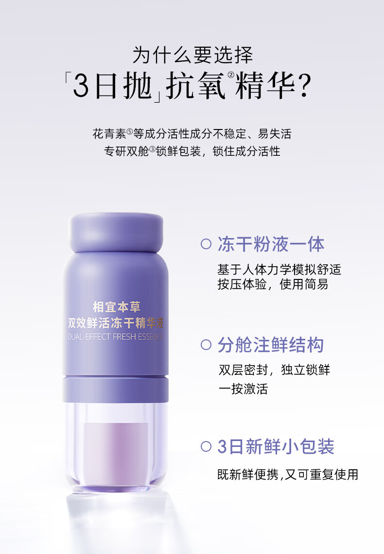 相宜本草红景天花青素红花双效鲜活冻干精华液5支护肤品面部护肤