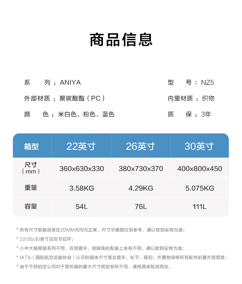 新秀丽(Samsonite)行李箱26英寸拉杆箱ANIYA trunk箱密码箱米白色NZ5