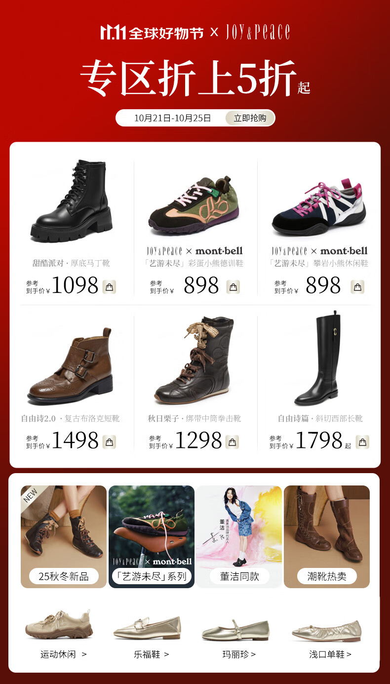 真美诗(Joy&peace)董洁同款秋日栗子25冬季羊皮系带马丁靴运动拳击靴短靴女 啡色 38