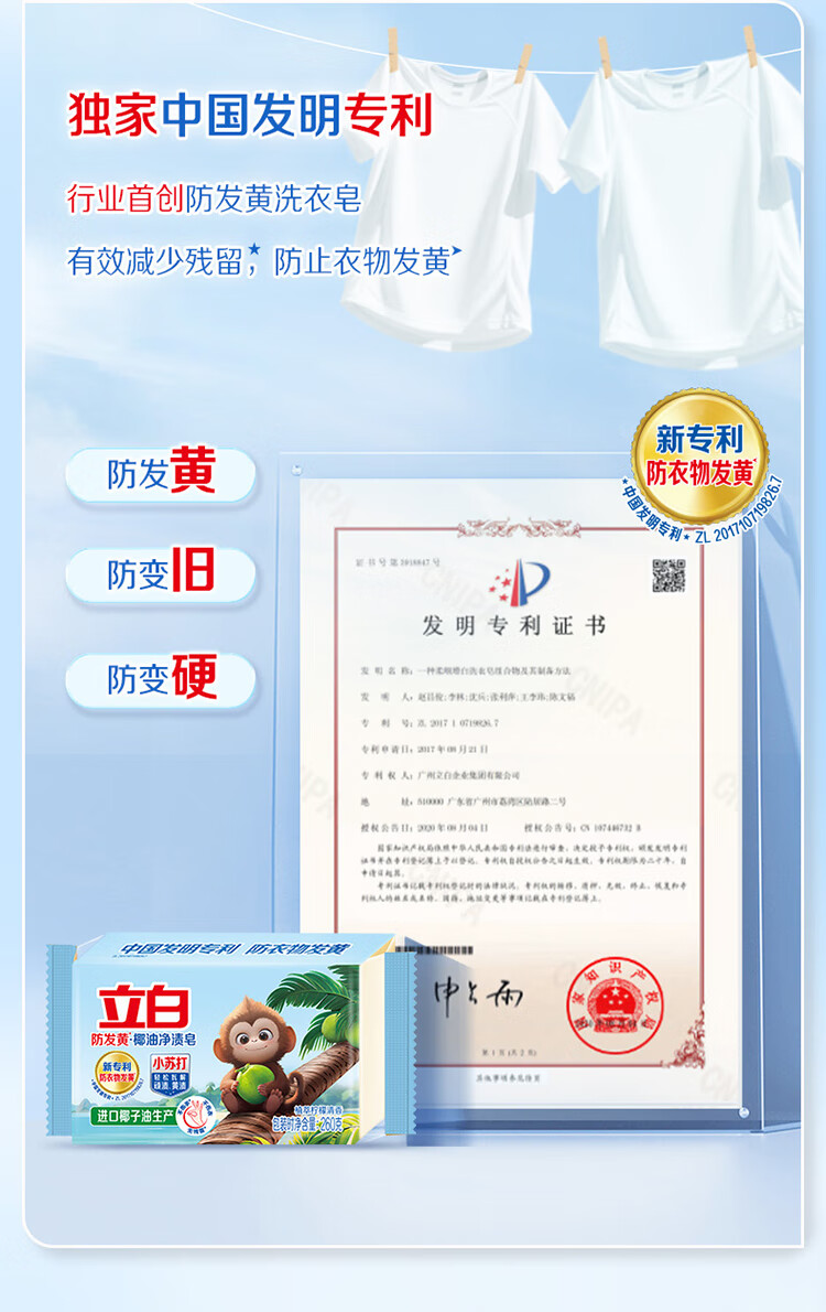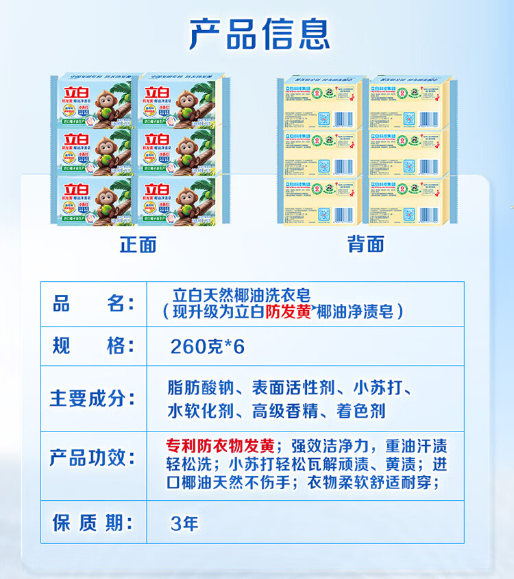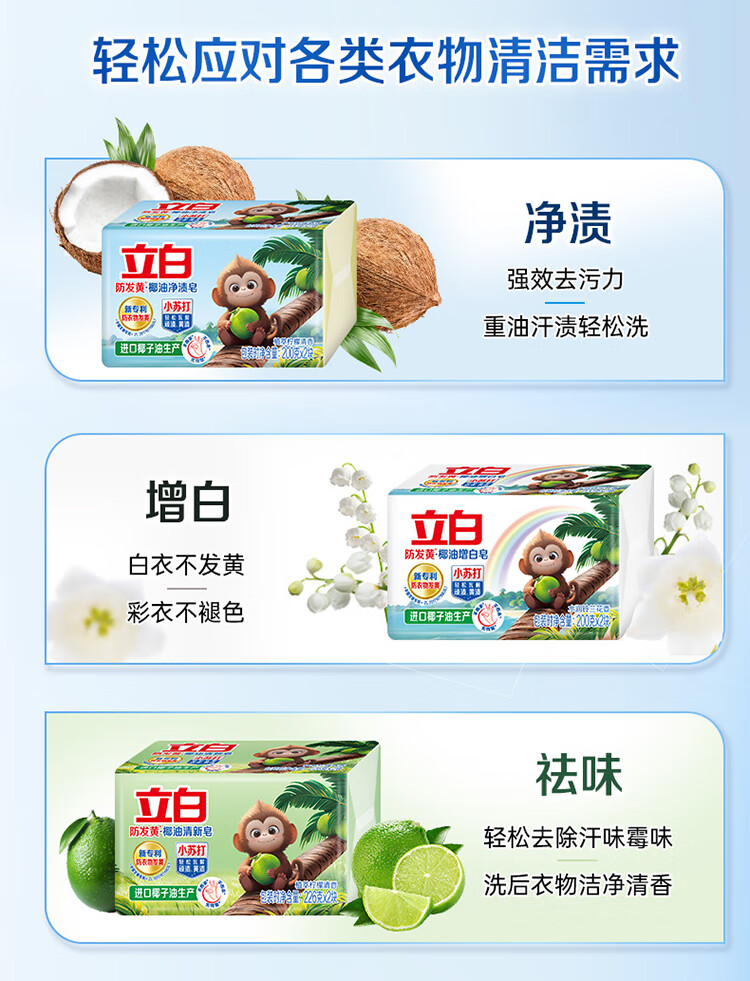 立白天然小苏打洗衣皂肥皂260g*6块 植萃柠檬清香 专效去渍祛味