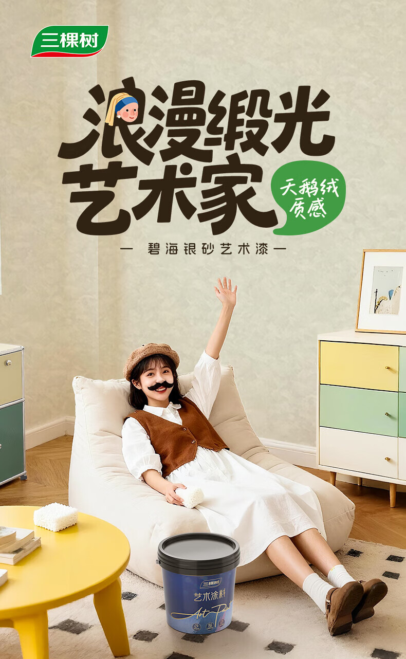 三棵树漆(SKSHU)碧海银砂艺术漆天鹅绒质感防霉抗菌抗甲醛食品接触级调色墙面套装 P92102-3 银月光 1L(中涂+面漆套装)