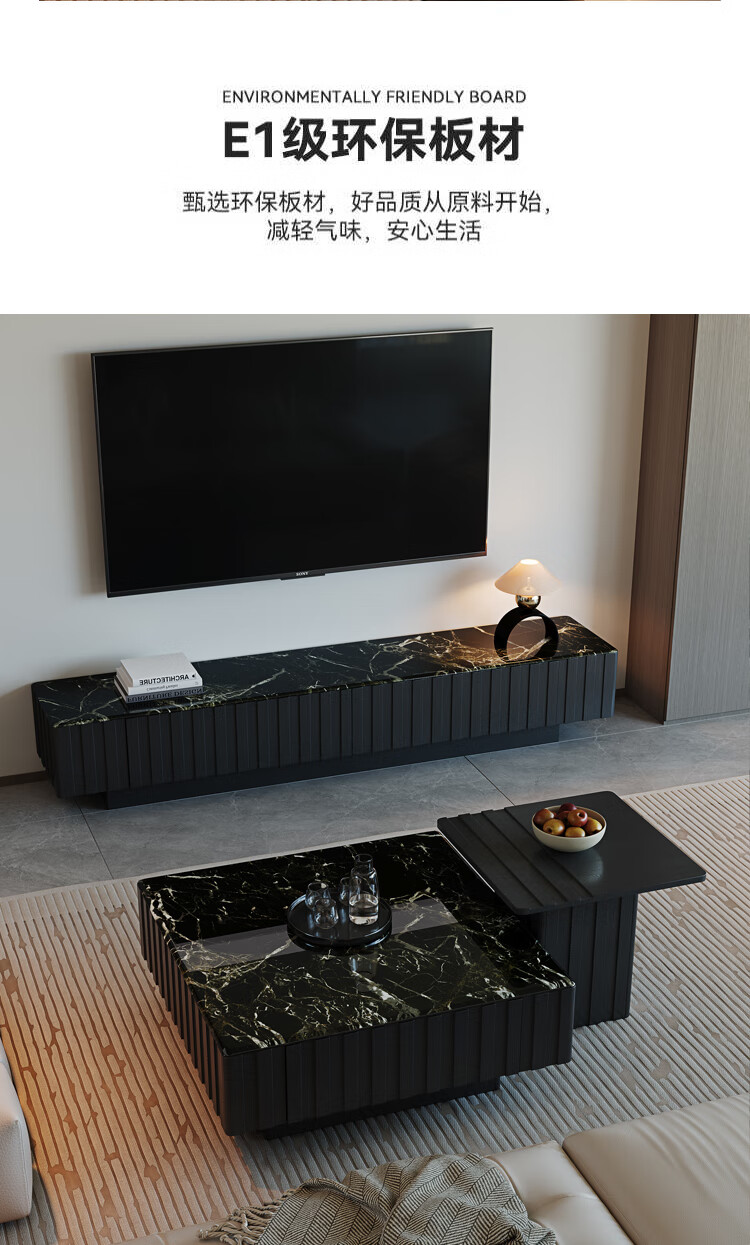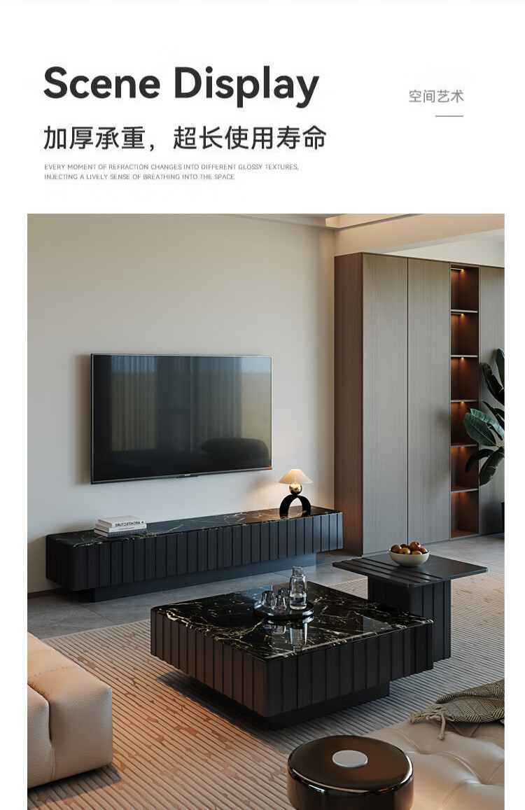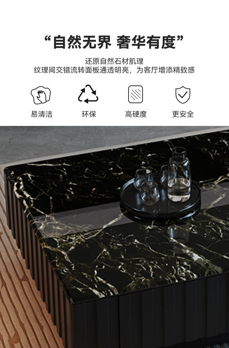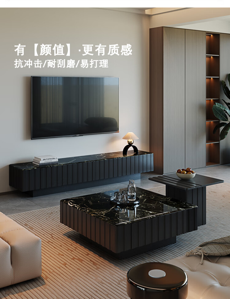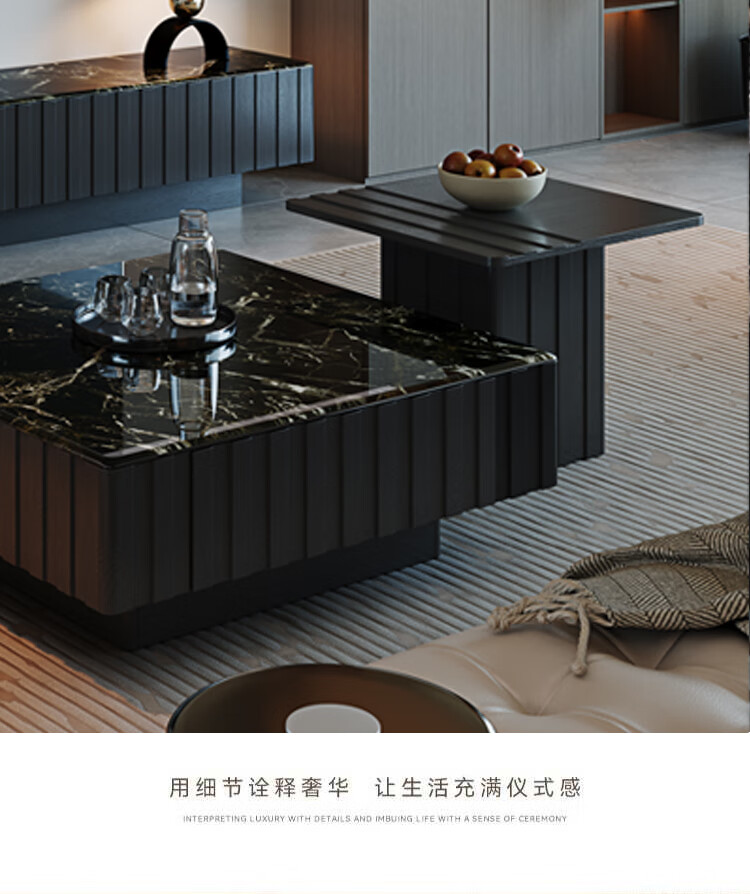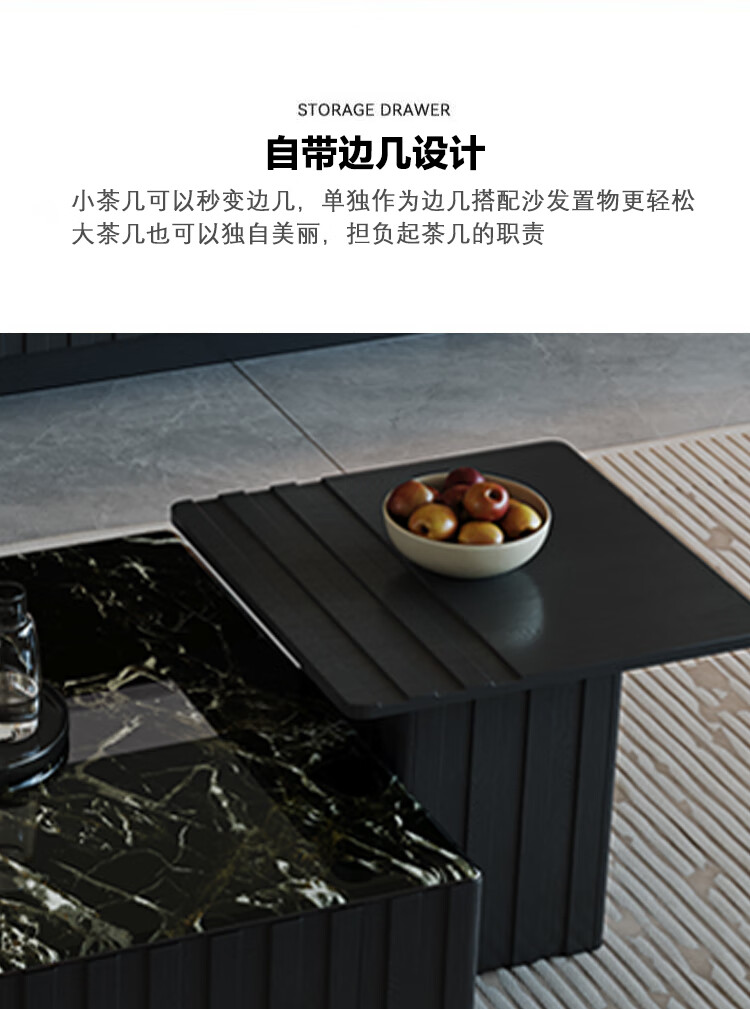 布特莱顿现代意式简约微晶石方形茶几边几组合客厅高级设计师家用落地柜 0.85M方茶几