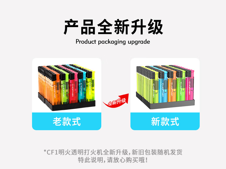 超凡打火机透明明火一次性打火机50支整盒 塑料打火机批发家用 CF1
