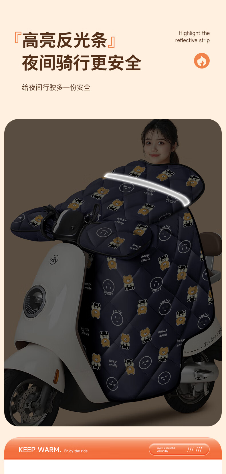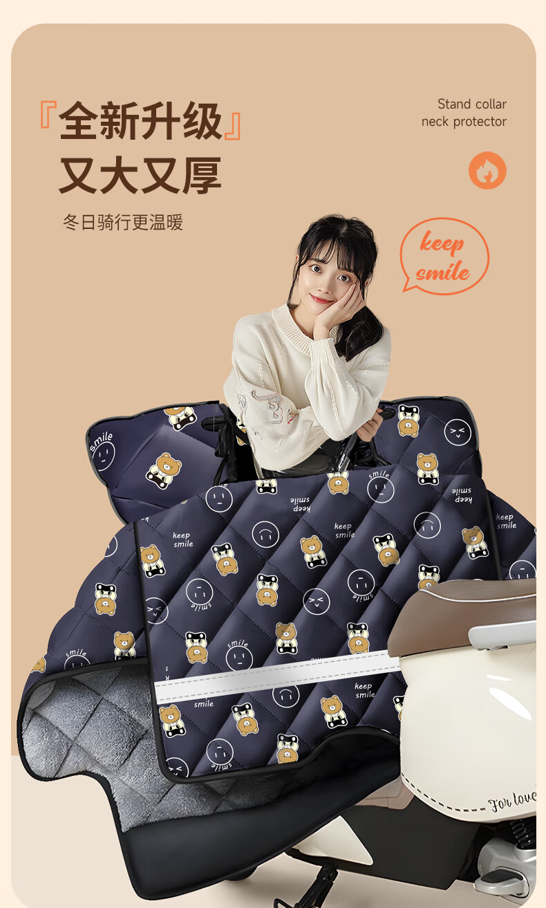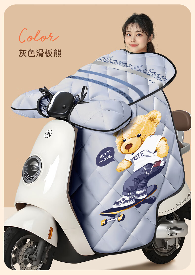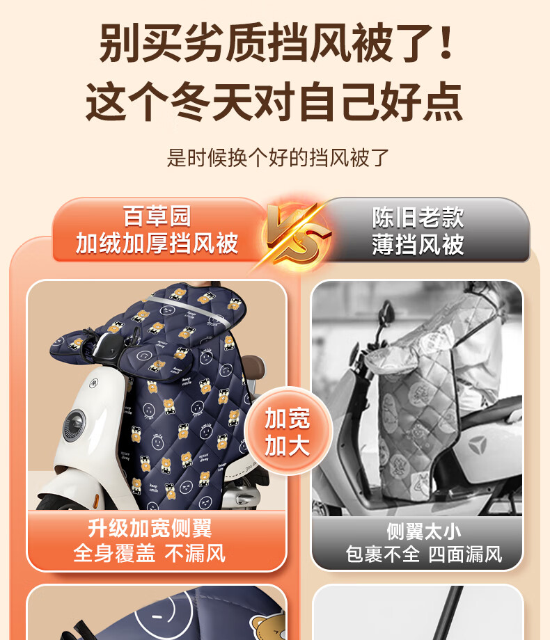 百草园电动车挡风被冬季加大加厚加宽电瓶车挡风罩加绒摩托车挡风篷小熊